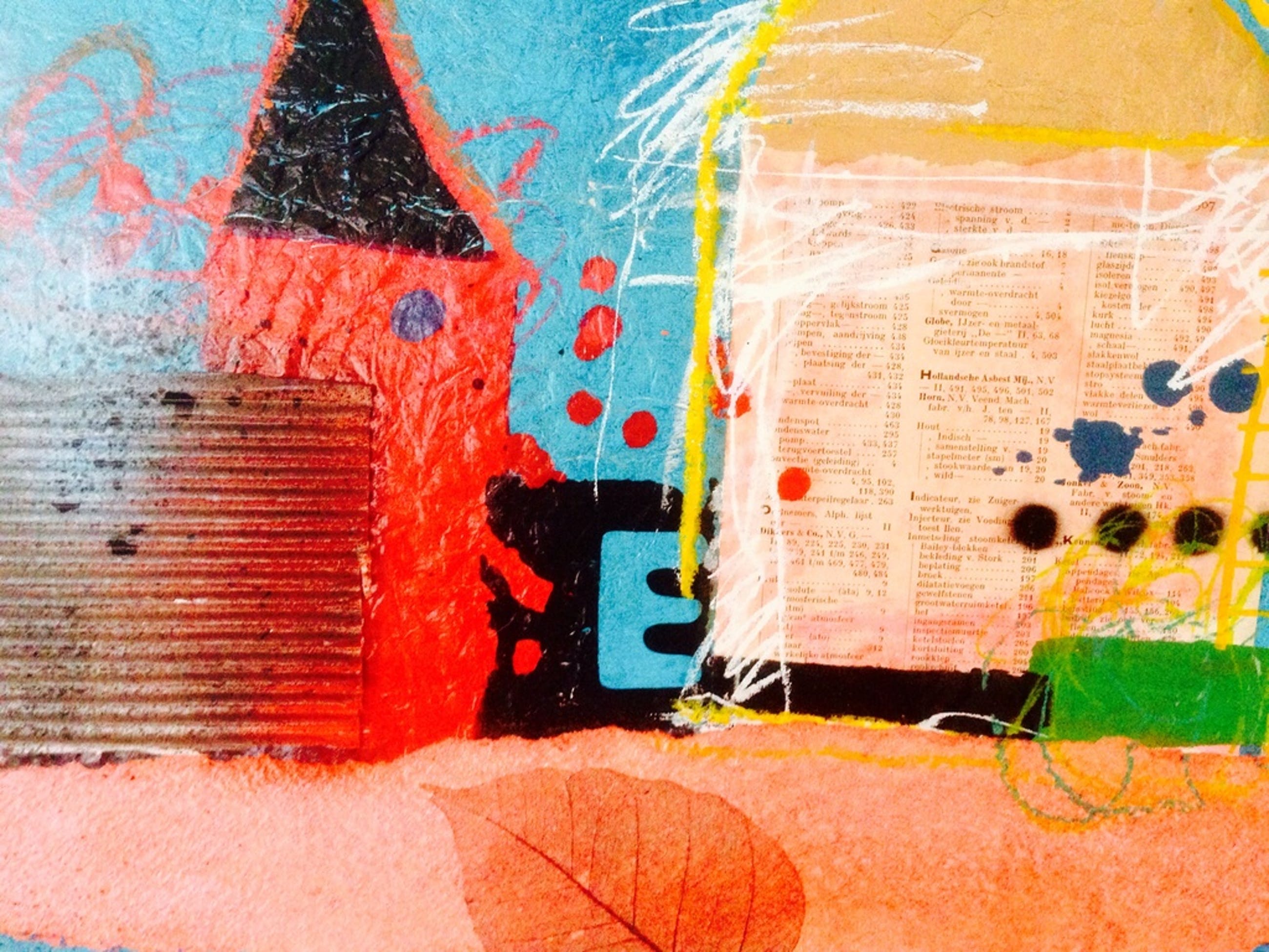 Werk in gemengde techniek op paneel van de kunstenaar theo koster afmeting 66x49x4 cm