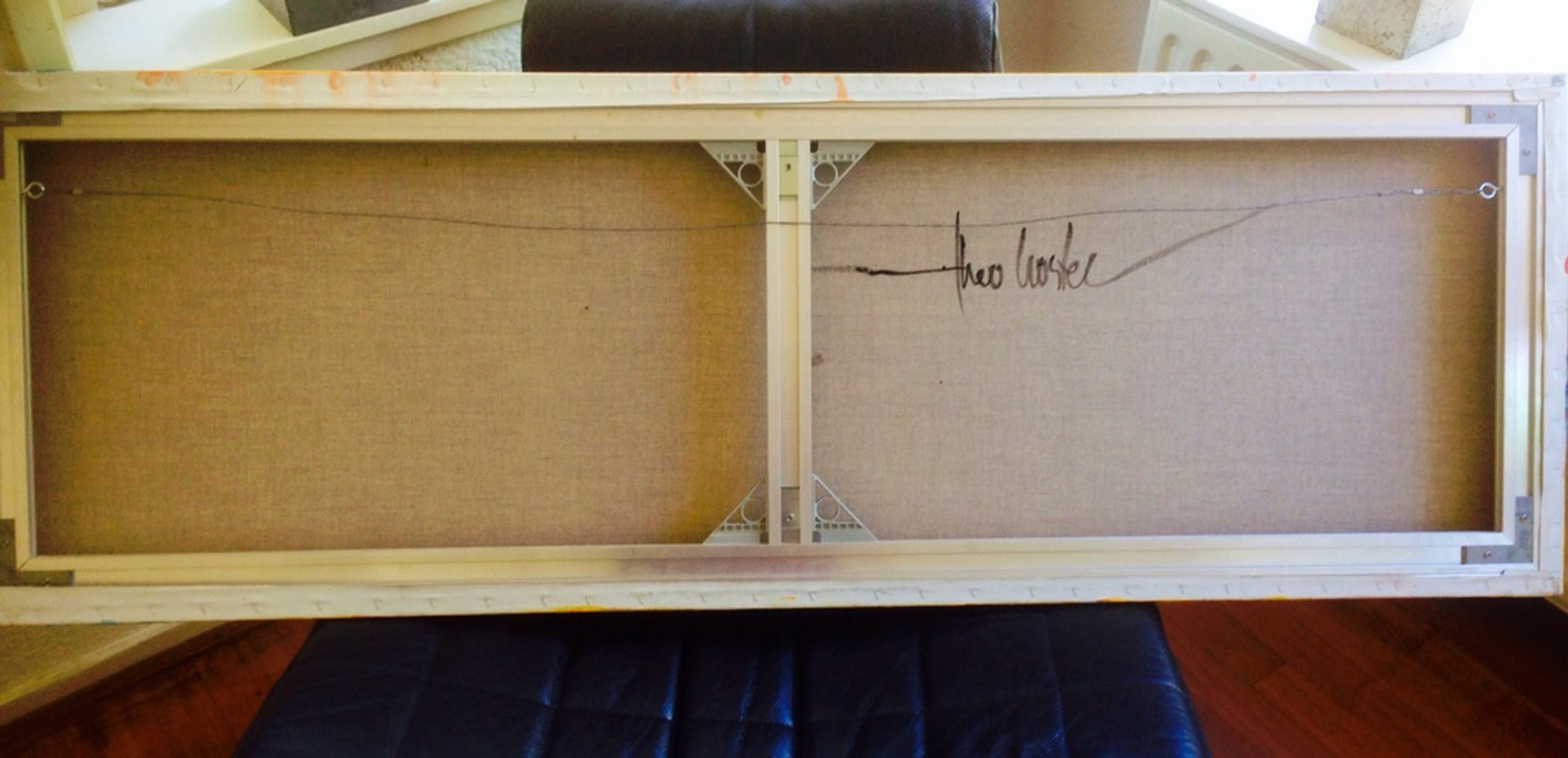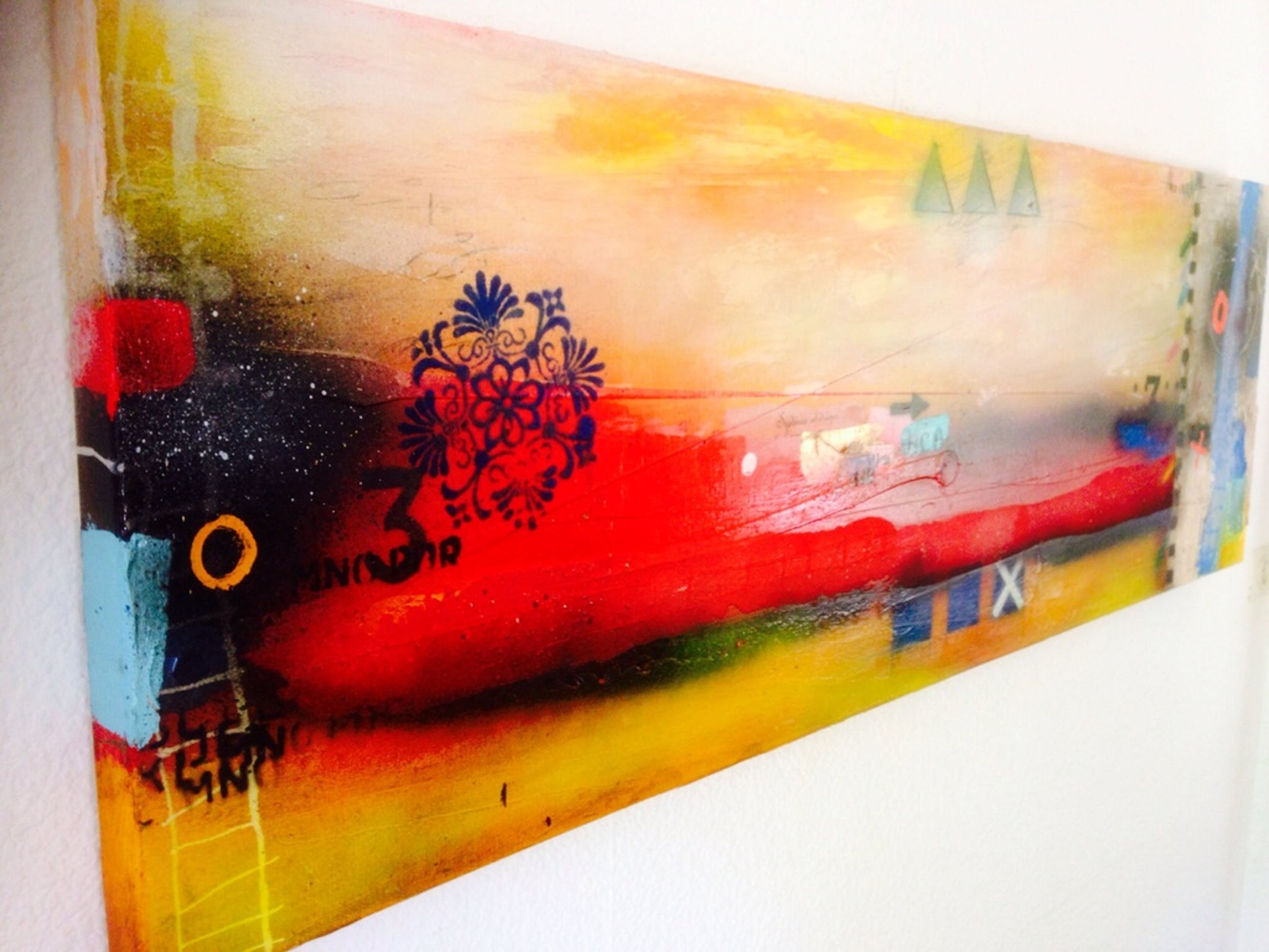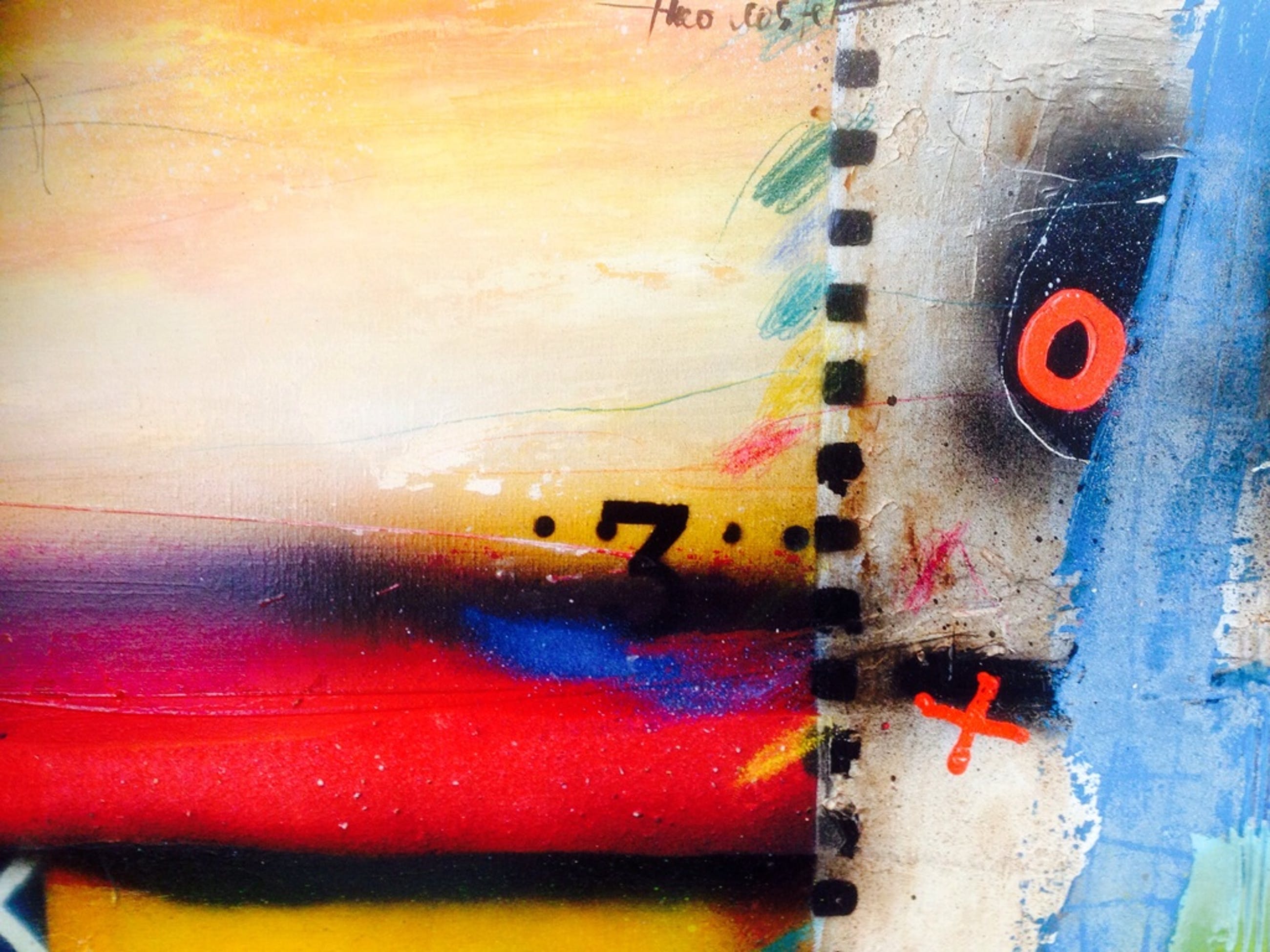 Mooi schilderij van de kunstenaar theo koster titel : stairway to heaven , gemengde techniek op doek op aluminium spieraam, afmetingen 150x50x4 cm . handgesigneerd, galerie verkoopwaarde : 2500 €