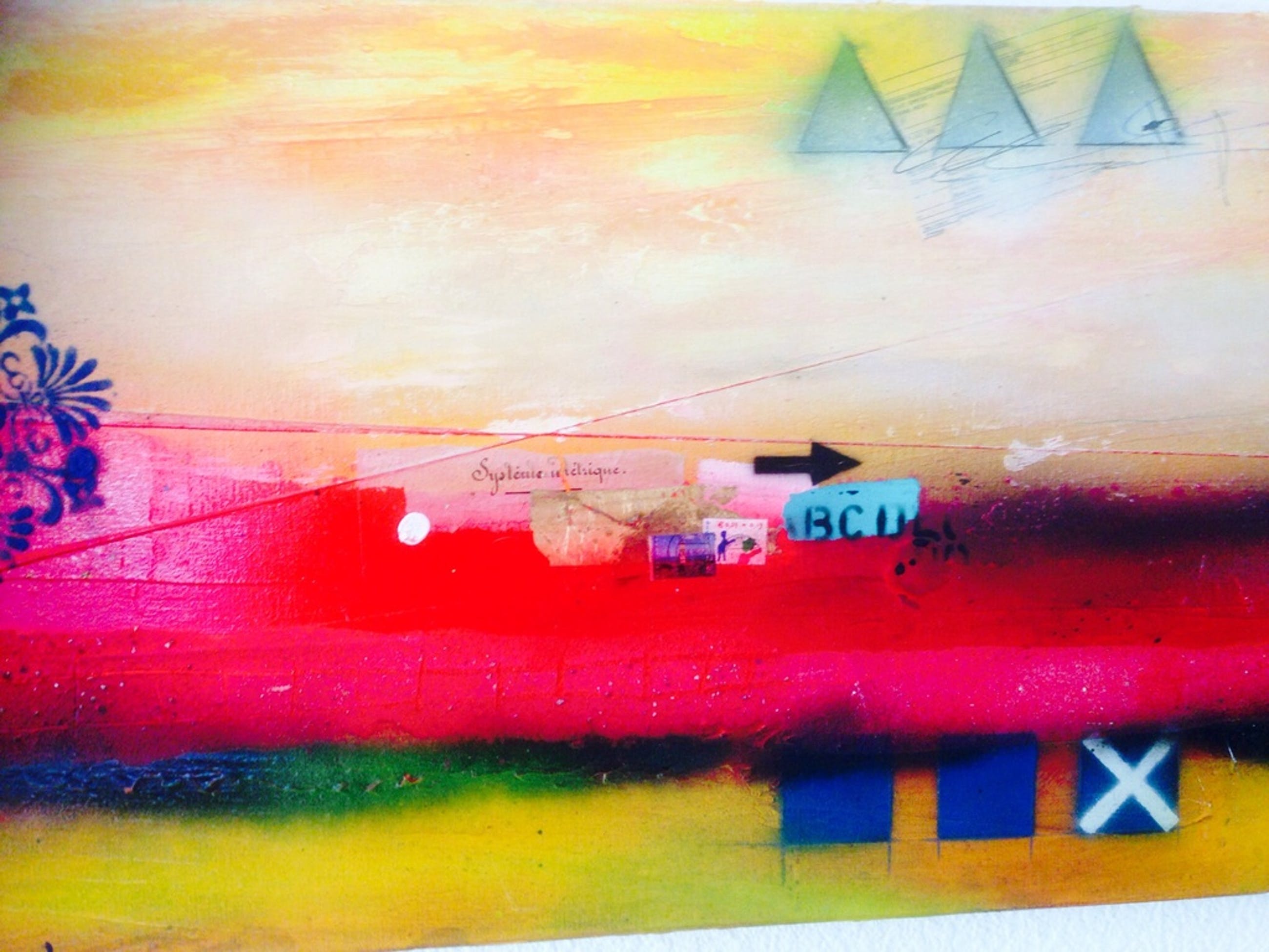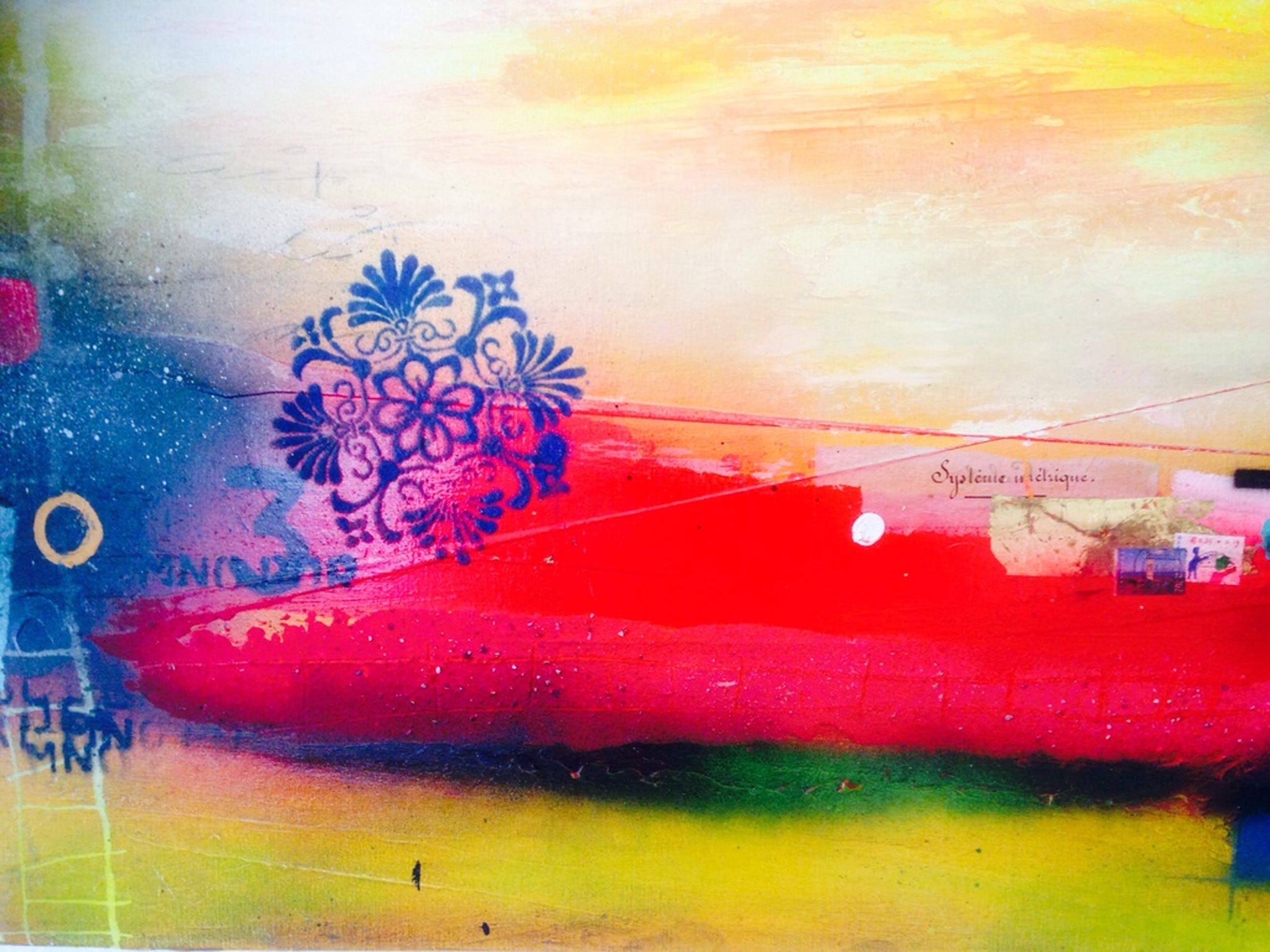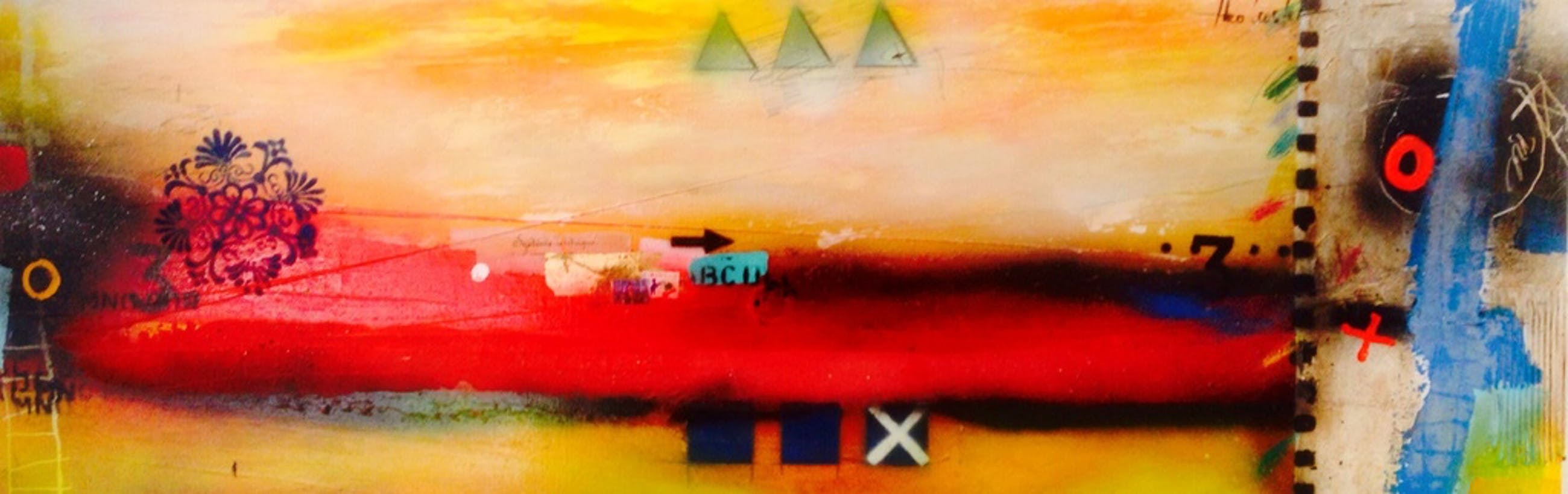 Mooi schilderij van de kunstenaar theo koster titel : stairway to heaven , gemengde techniek op doek op aluminium spieraam, afmetingen 150x50x4 cm . handgesigneerd, galerie verkoopwaarde : 2500 €