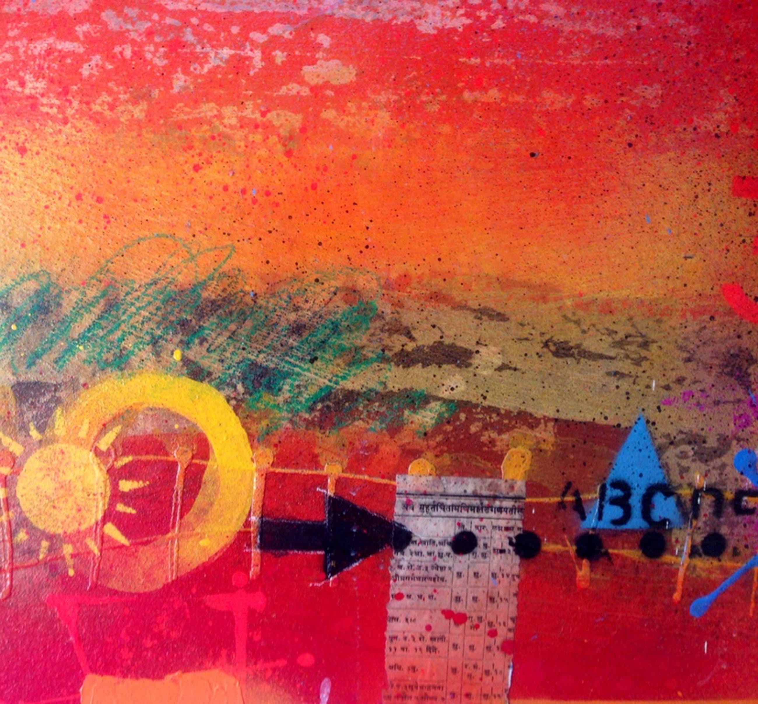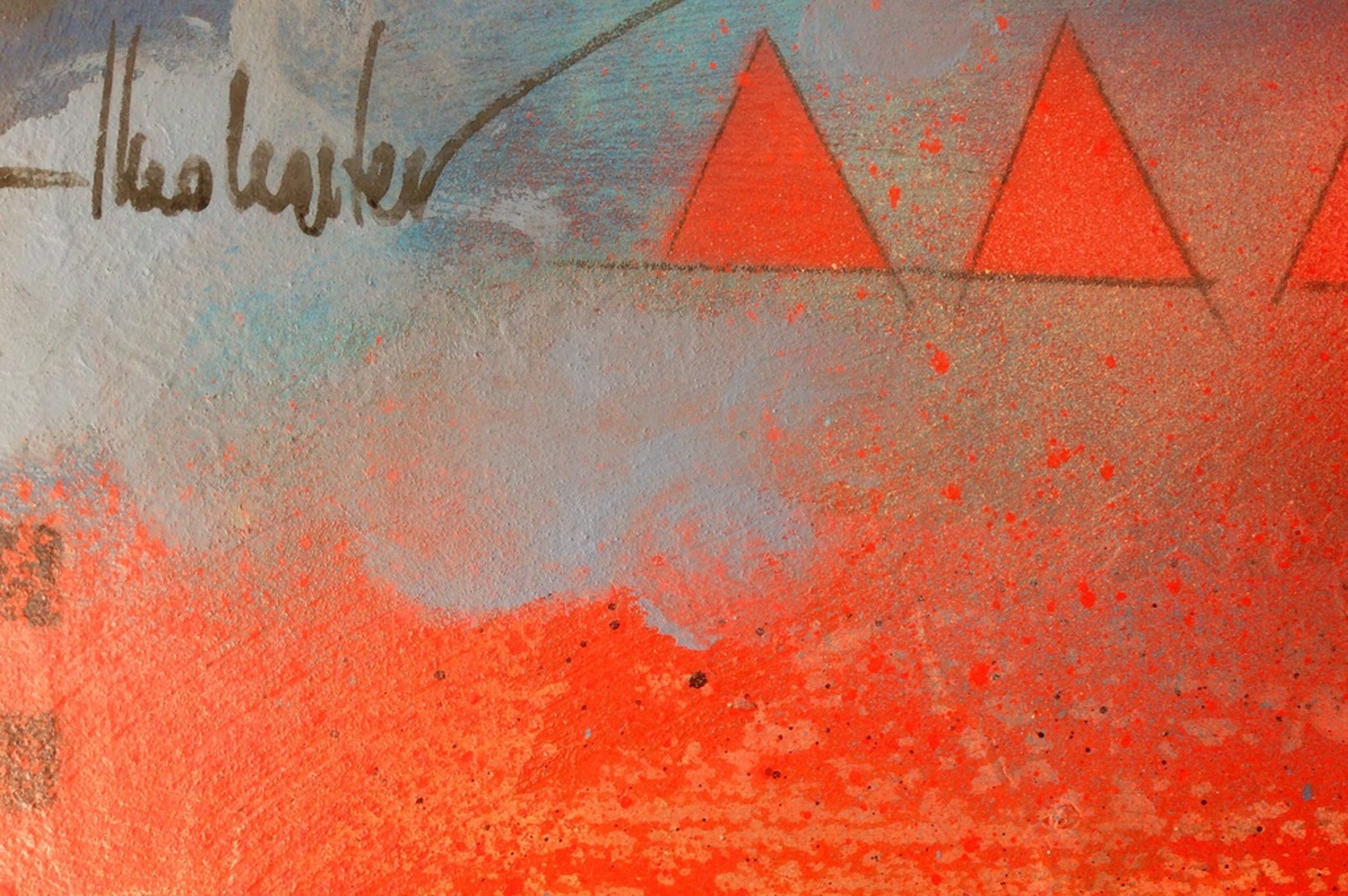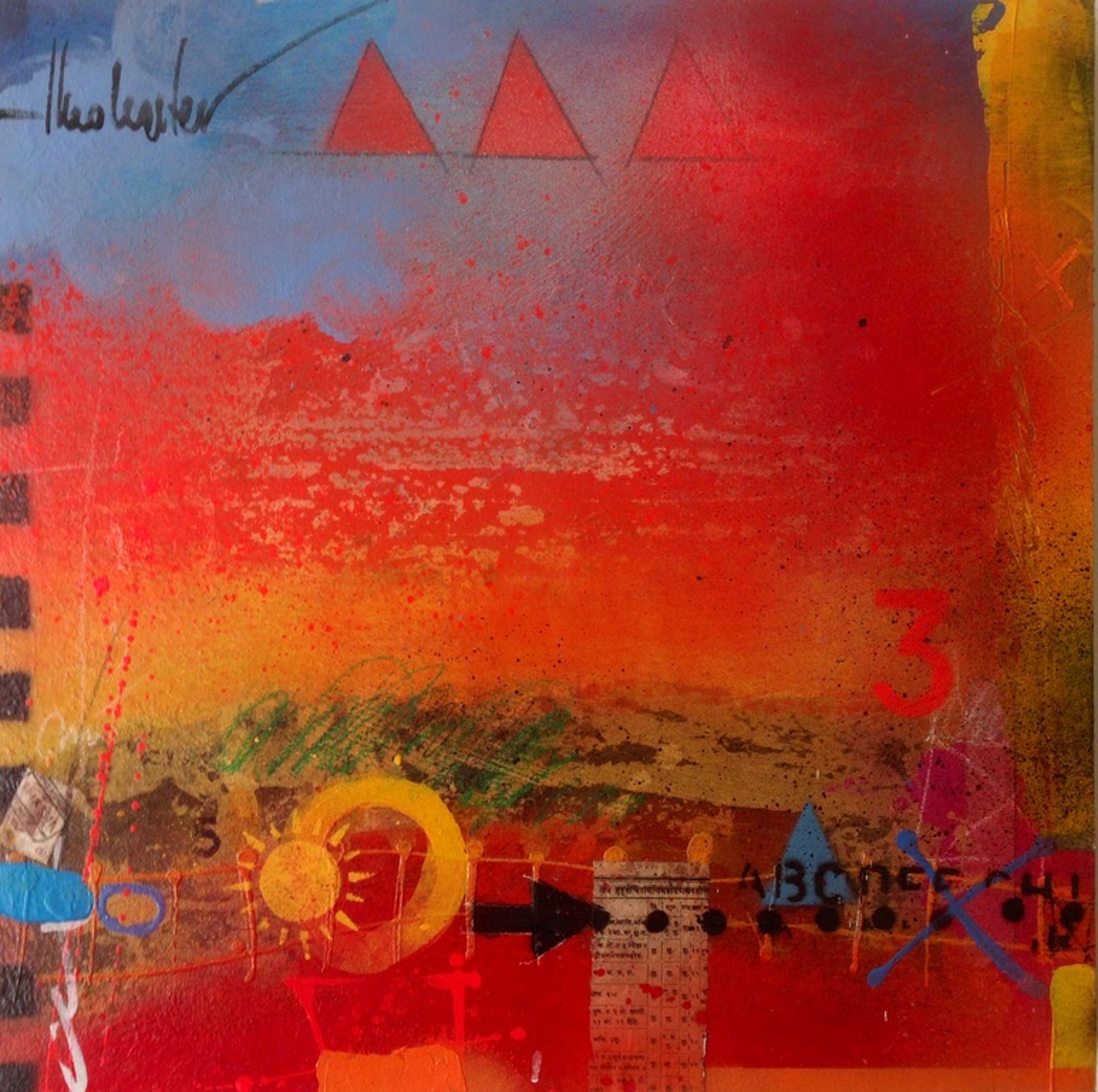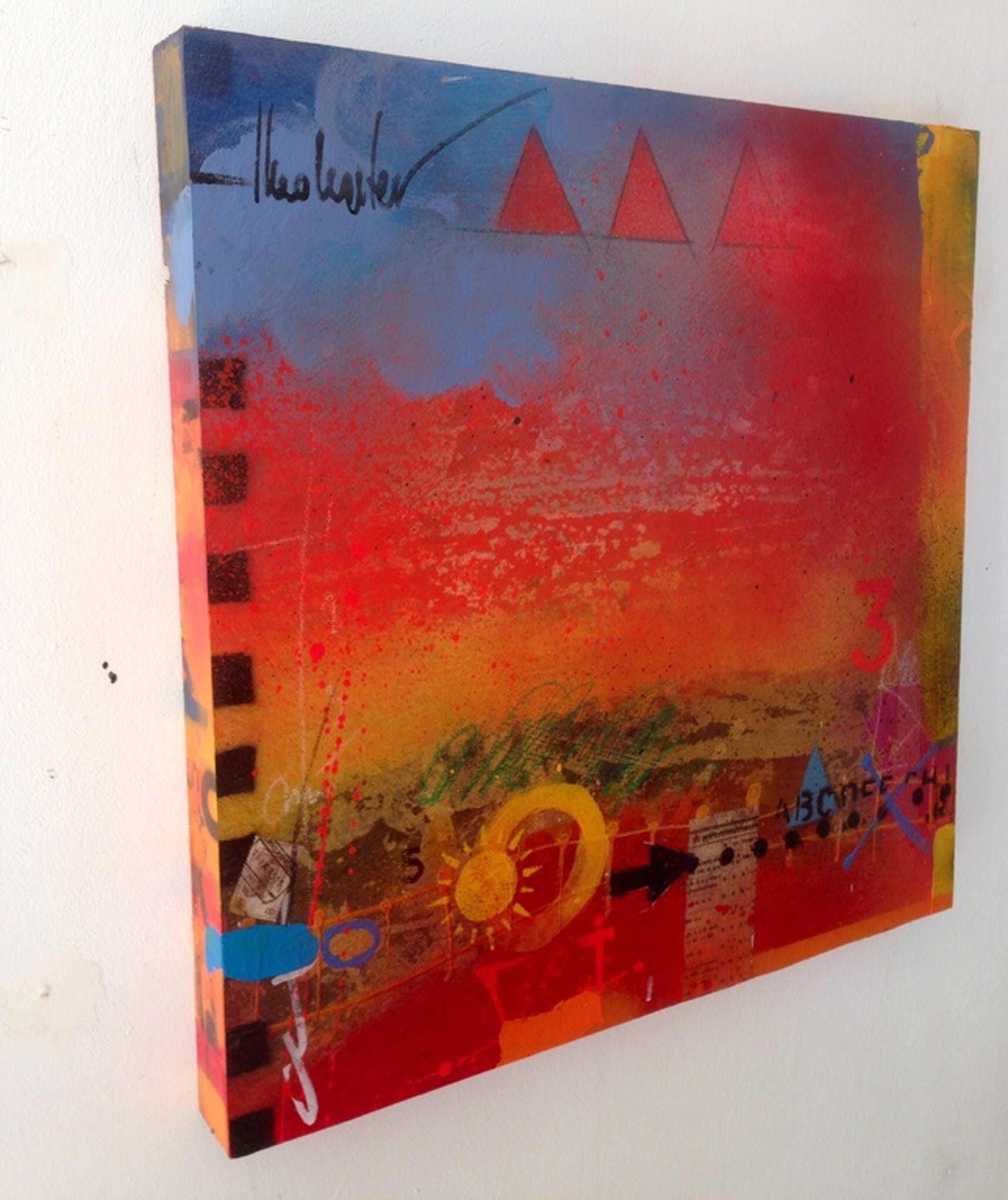 Origineel schilderij , linnen op paneel van de kunstenaar theo koster titel: "sunrise" afmetingen 54x54x4 cm handgesigneerd galeriewaarde 1250,- €