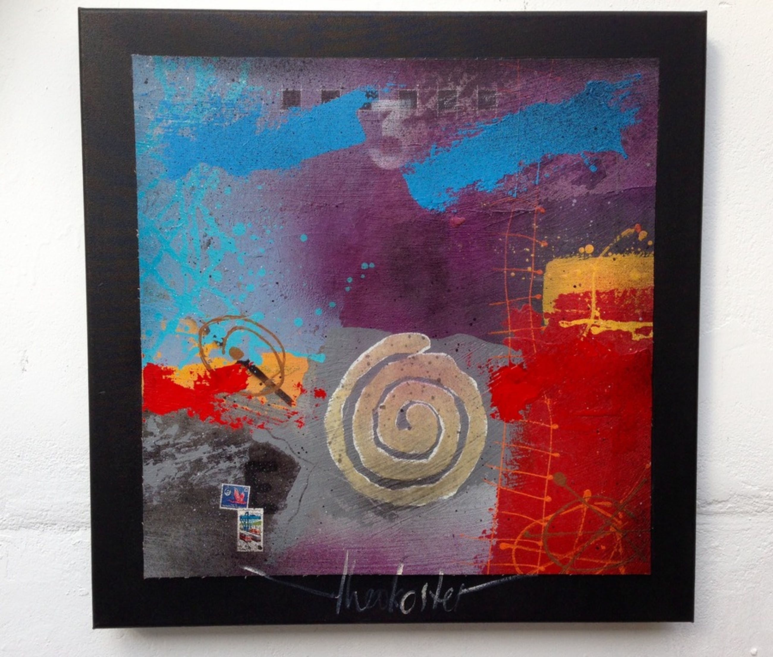 Origineel schilderij van de kunstenaar theo koster , titel " turbulance" afmetingen 70x70x5 cm handgesigneerd in goede staat , galerie verkoopwaarde 1250 €