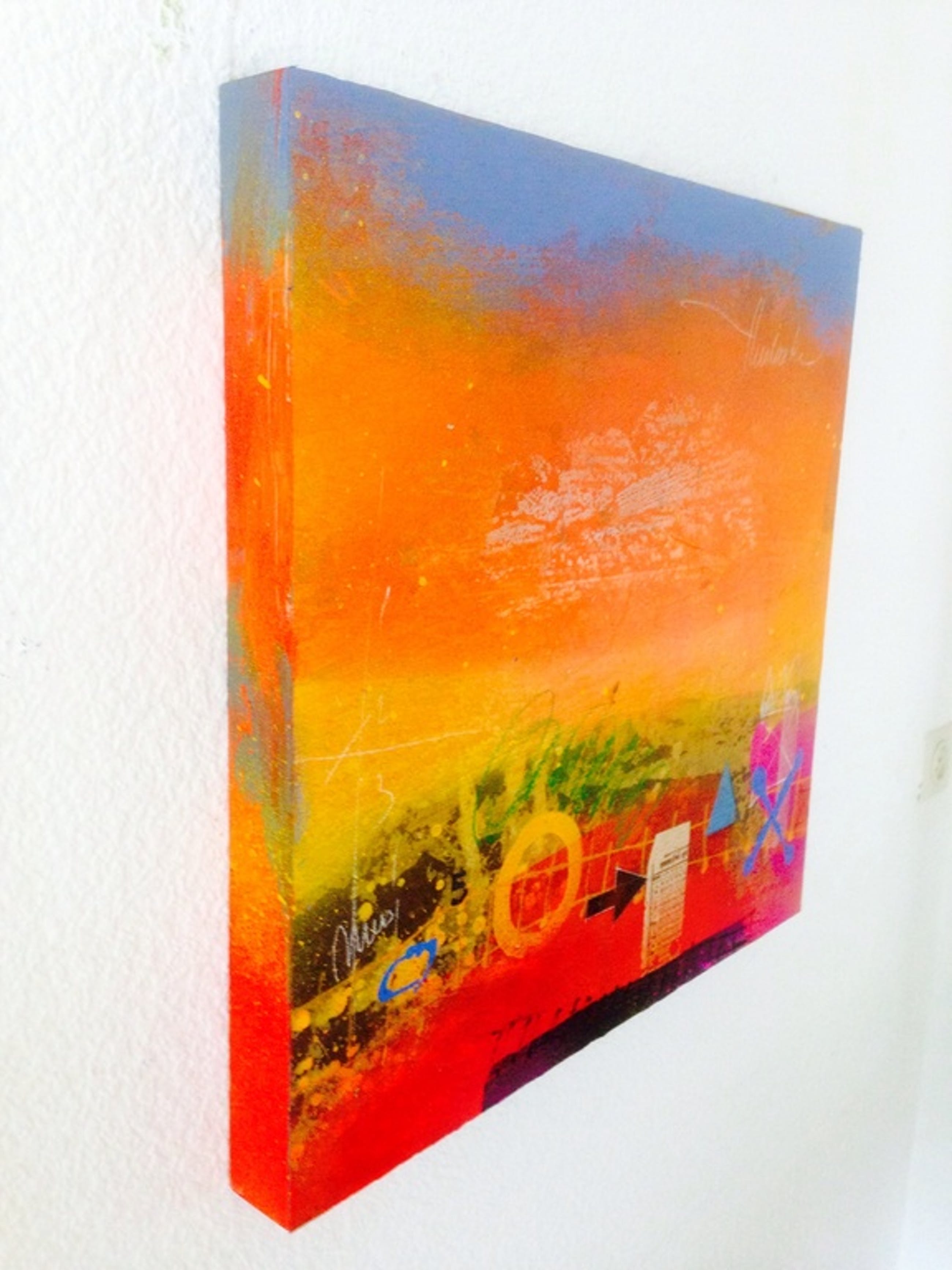 Schilderij in gemengde techniek van de kunstenaar theo koster , handgesigneerd afmetingen : 55x55x4 cm . titel: early morning. Galerie verkoopwaarde € 1250