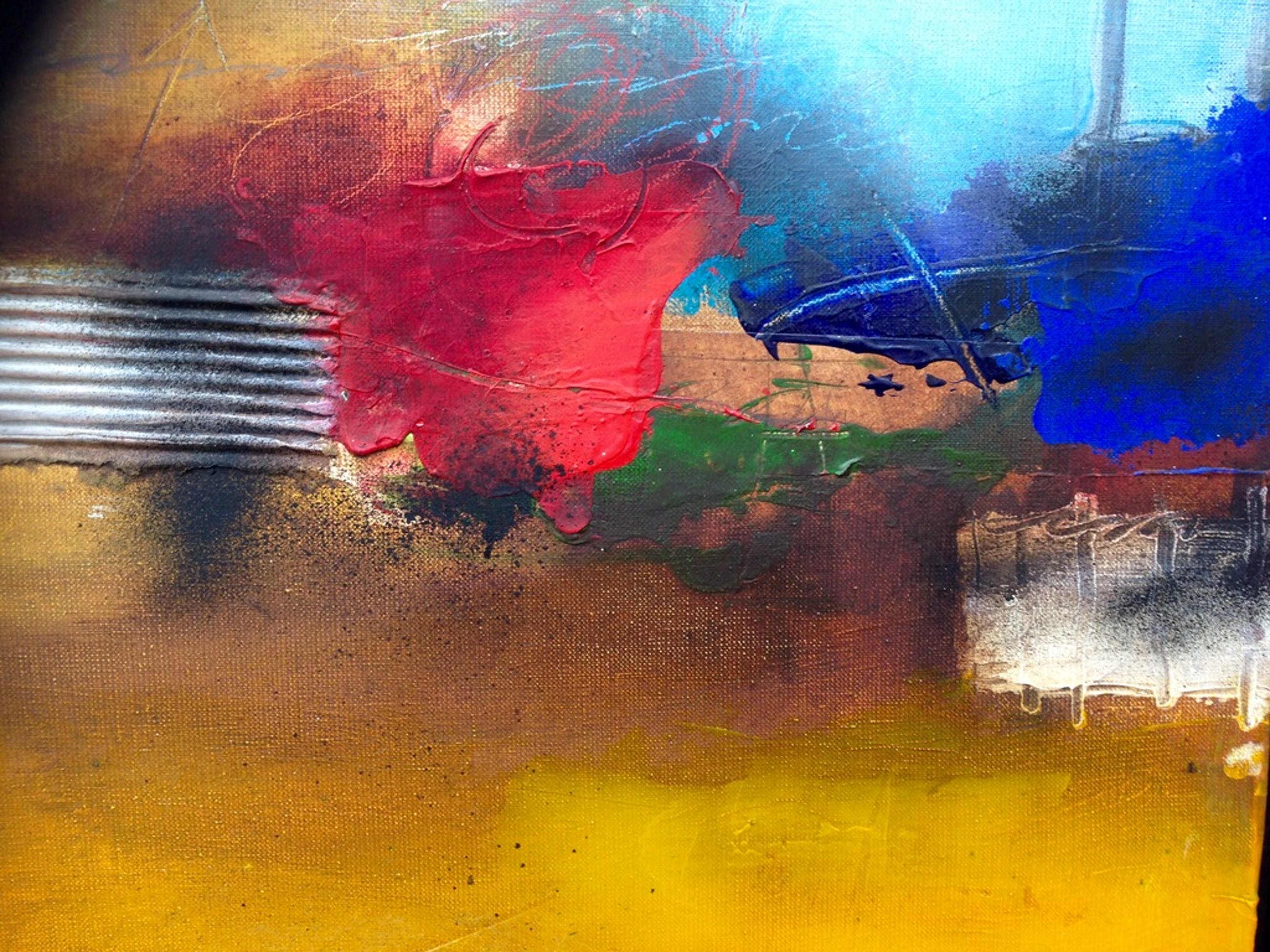 Fraai schilderij van theo koster afmetingen 125x105 cm incl. Lijst titel:"crossig borders ", handgesigneerd en in goede staat voorzien van baklijst, galerie verkoopwaarde € 2750,-