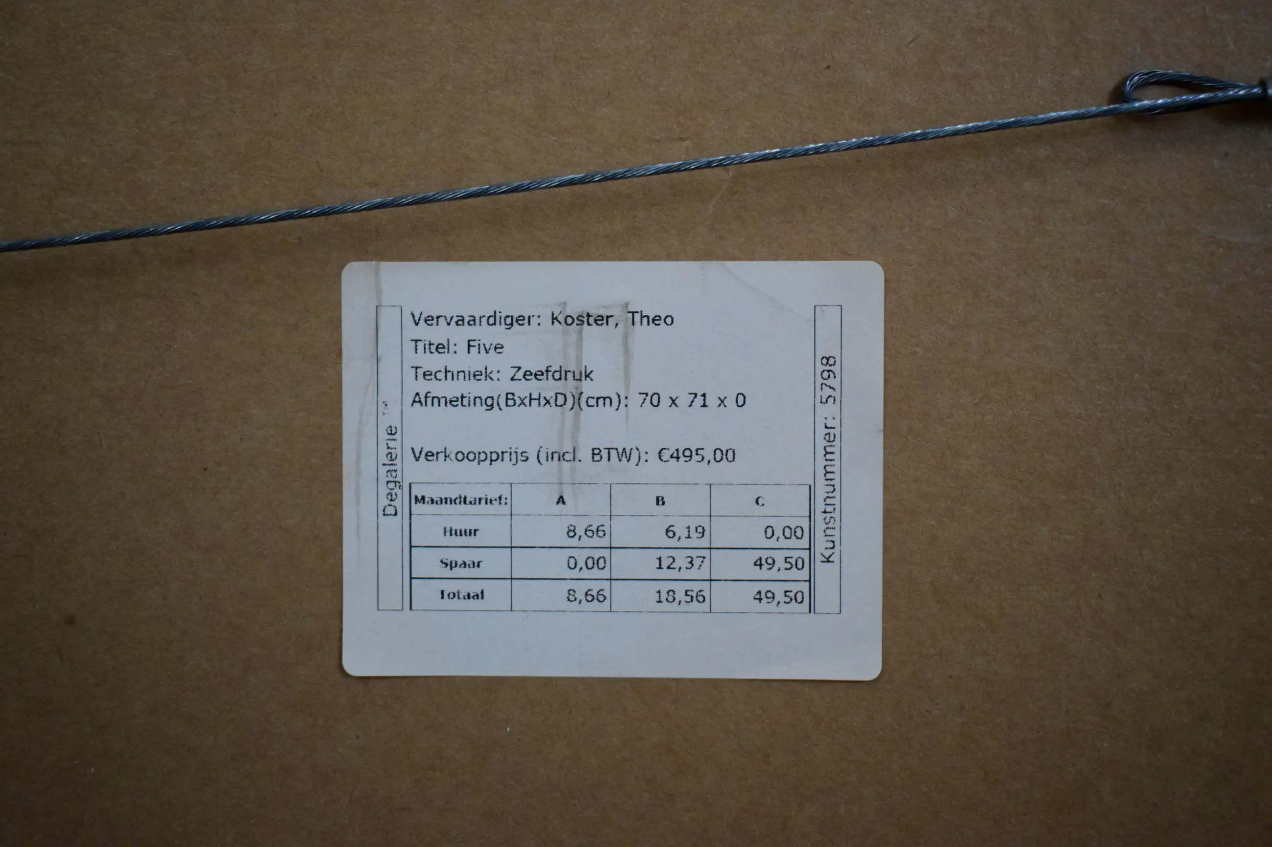 Techniek - Zeefdruk Drager - Papier Ingelijst - Ingelijst Afmetingen - 49 cm x 50 cm (h x b) Lijst - 67.5 cm x 66.5 cm (h x b) Gesigneerd - Hand-gesigneerd Oplage - 30/90