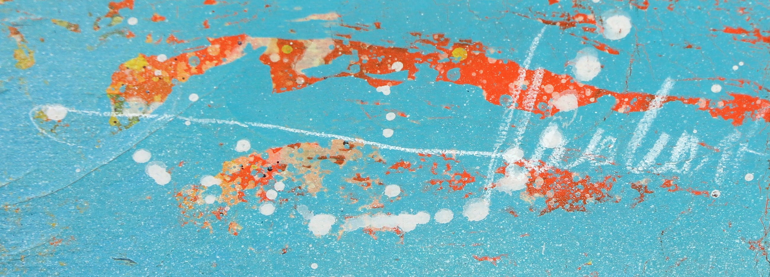 Paar deukjes in het doek en scheurtjes in de inkt. | |