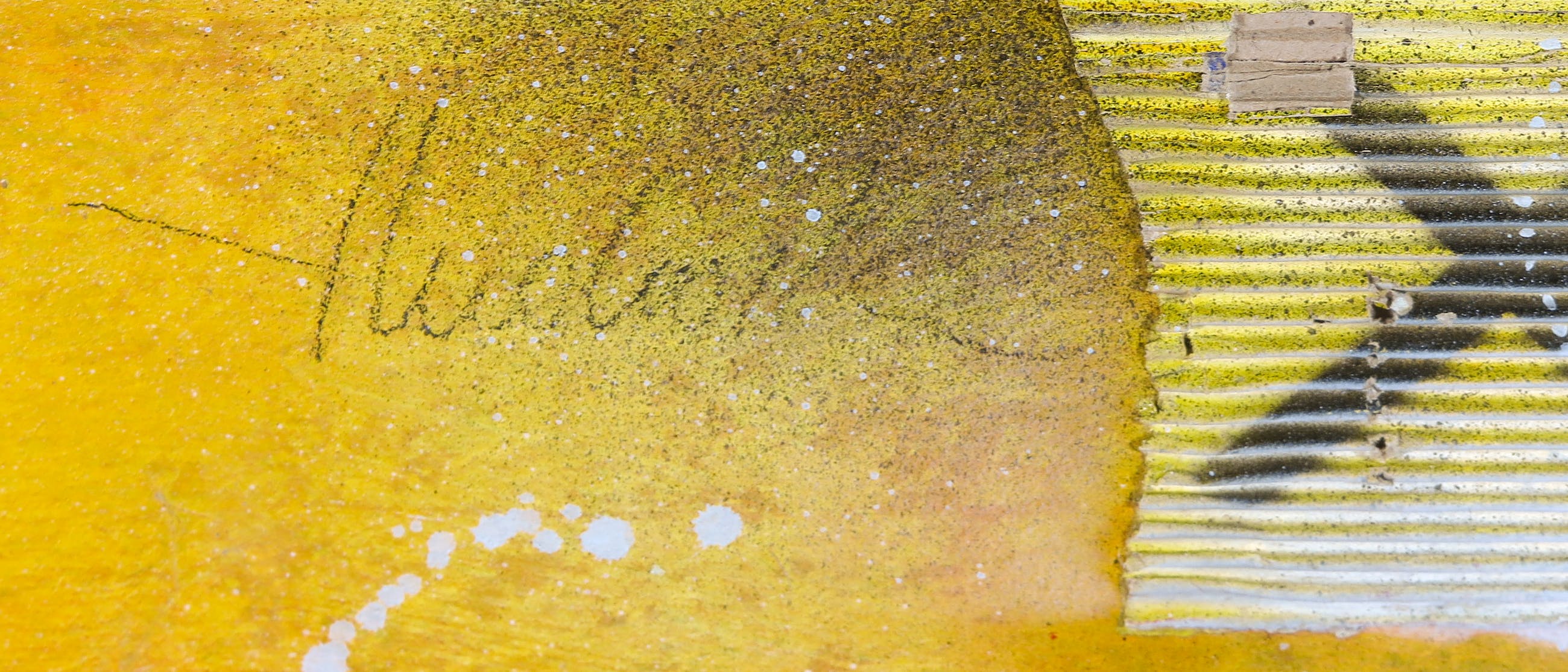 | Lichte slijtplekjes langs de randen en hoeken. Deukjes langs de rand rechts en links in de bovenste helft. Het ribbelkarton heeft beschadigingen. Zie de foto met het signatuur. | |