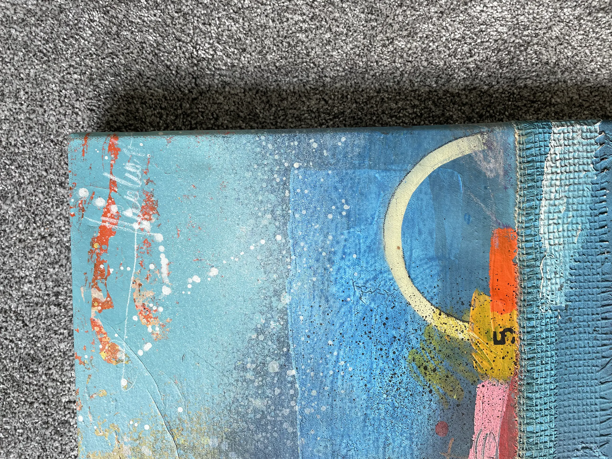 Conditie: Het werk is als goed aangegeven door de Kunstveiling zelf: Paar deukjes in het doek en scheurtjes in de inkt