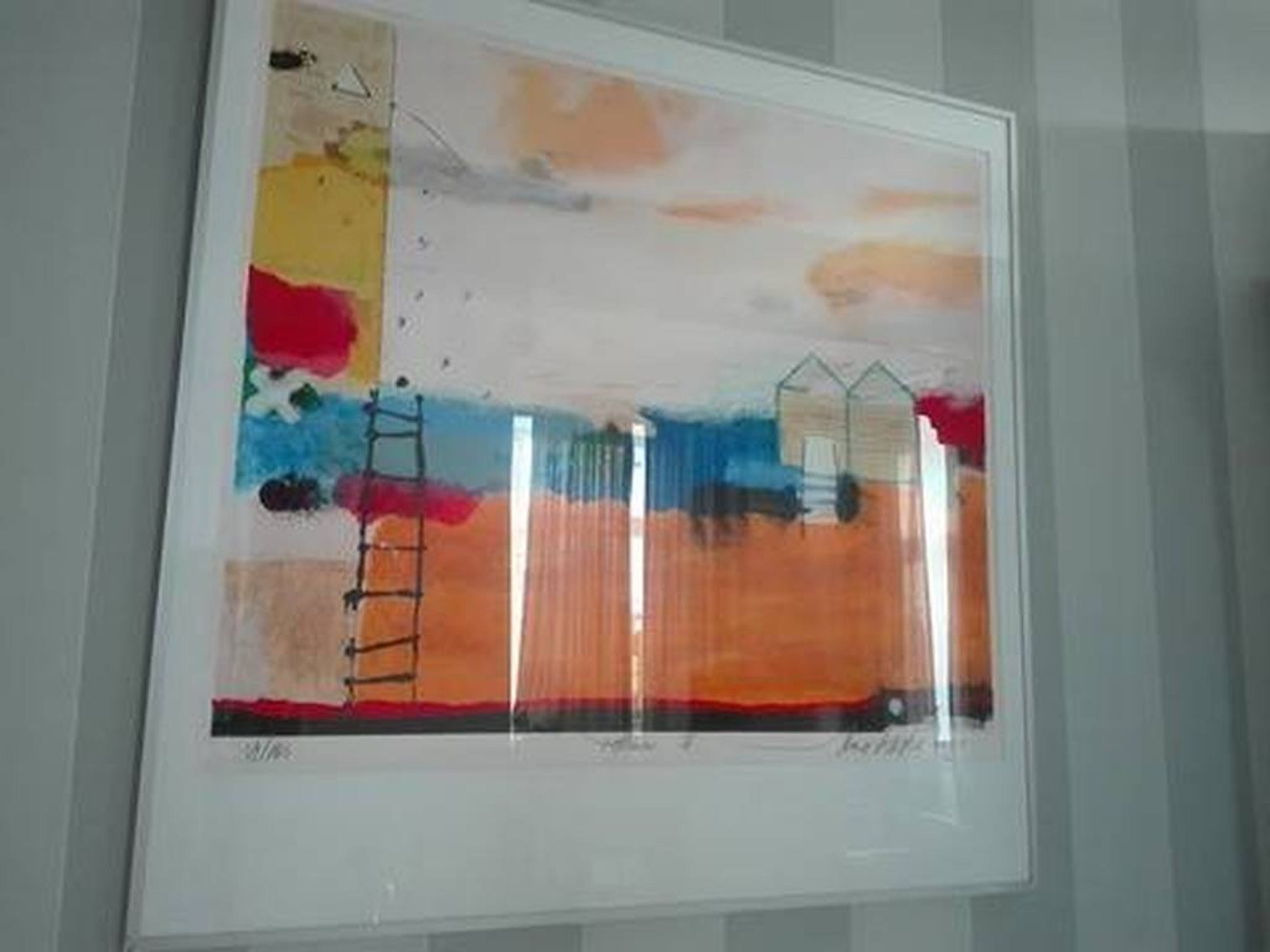 Prachtige kleuren, werkelijk schitterend groot werk. De zeefdruk is opgebouwd uit 27 drukgangen. Dit prachtige werk in warme kleuren is professioneel ingelijst met zilverkleurige lijst, passe-partout en glas. De conditie is als nieuw. (De lijst is linksonder minimaal beschadigd; daar heb ik rekening gehouden met het openingsbod)