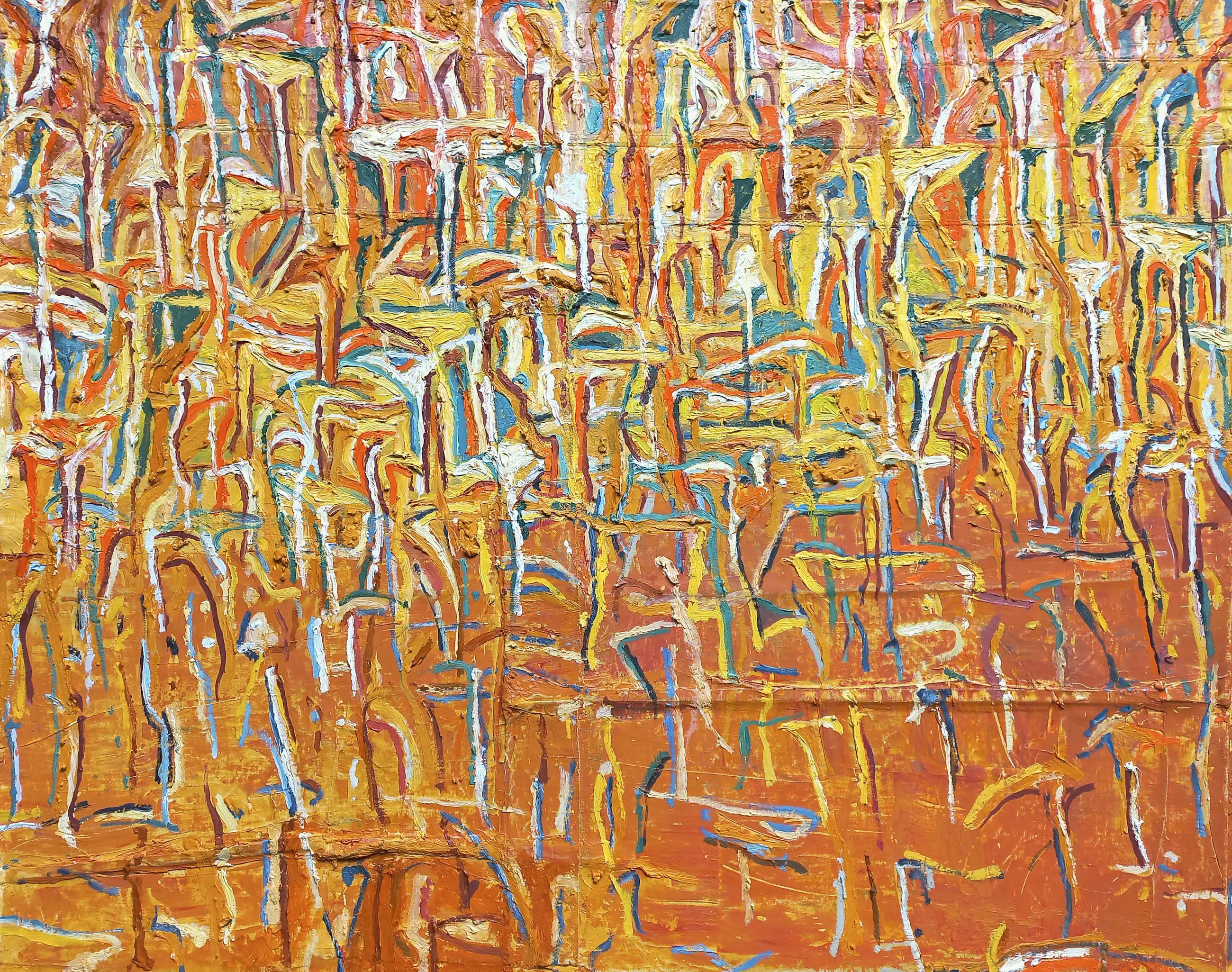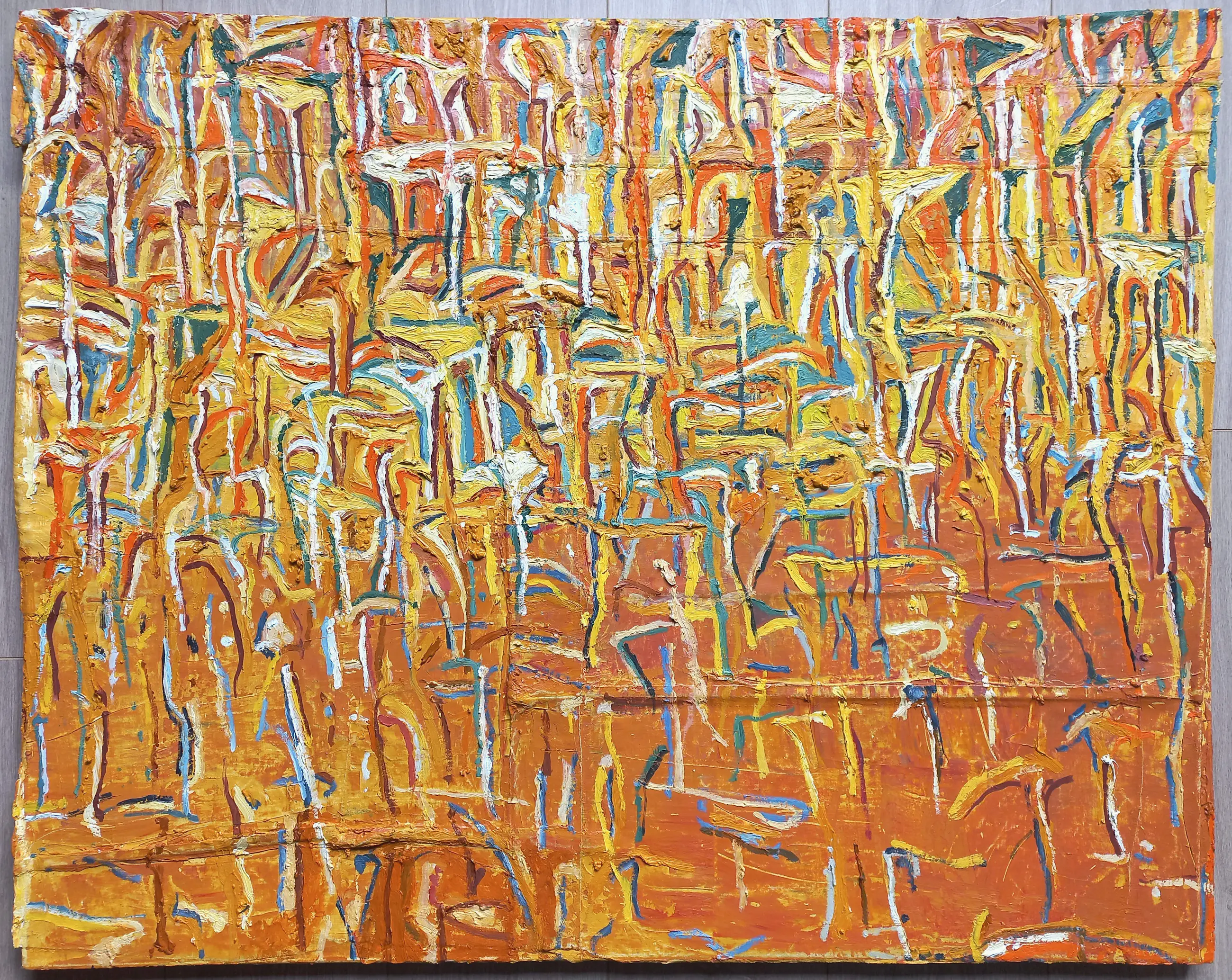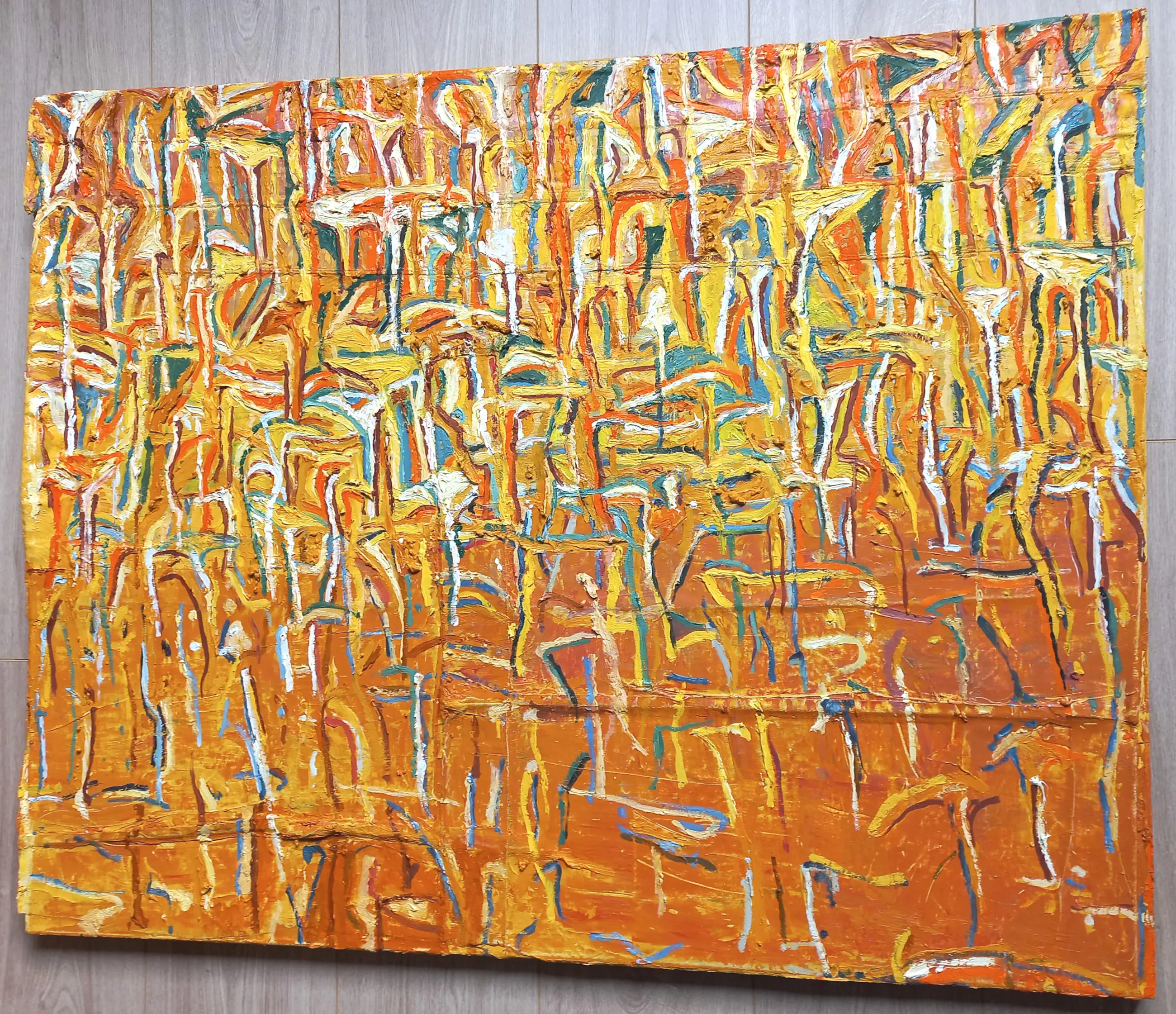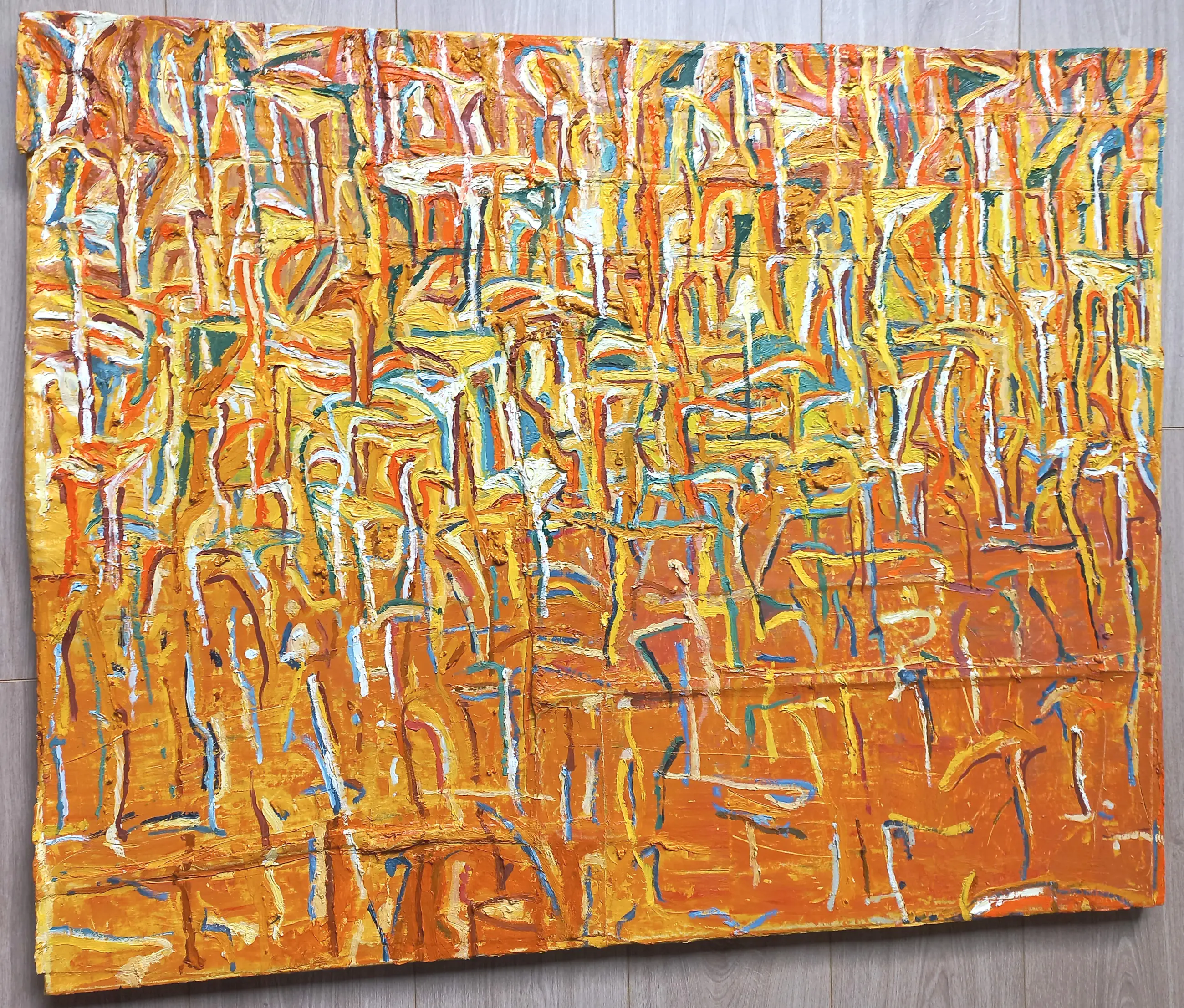Prachtige lichte compositie van Theo Kuijpers. Olieverf en collage op doek, achterop dubbel gesigneerd, getiteld en gedateerd (2015), op state-of-the-art aluminium Artel spieraam. Over de rand heen geschilderd dus kan/moet zo aan de muur. In zeer goede conditie.