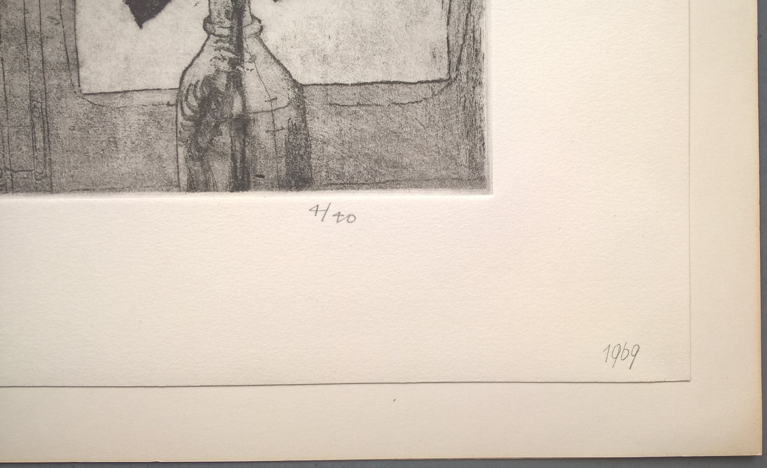 Gesigneerde ets uit 1969. Linksonder is het werk
