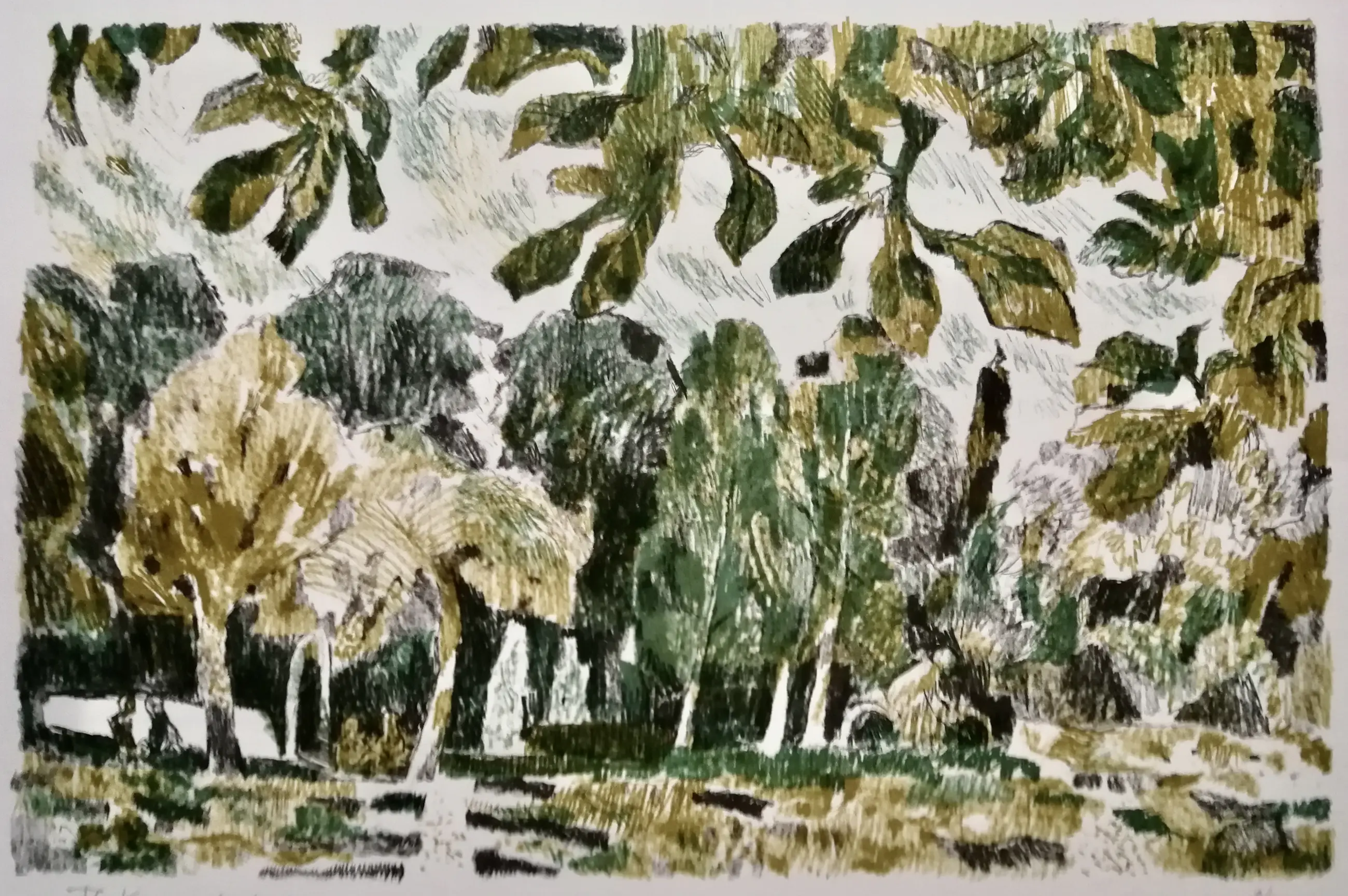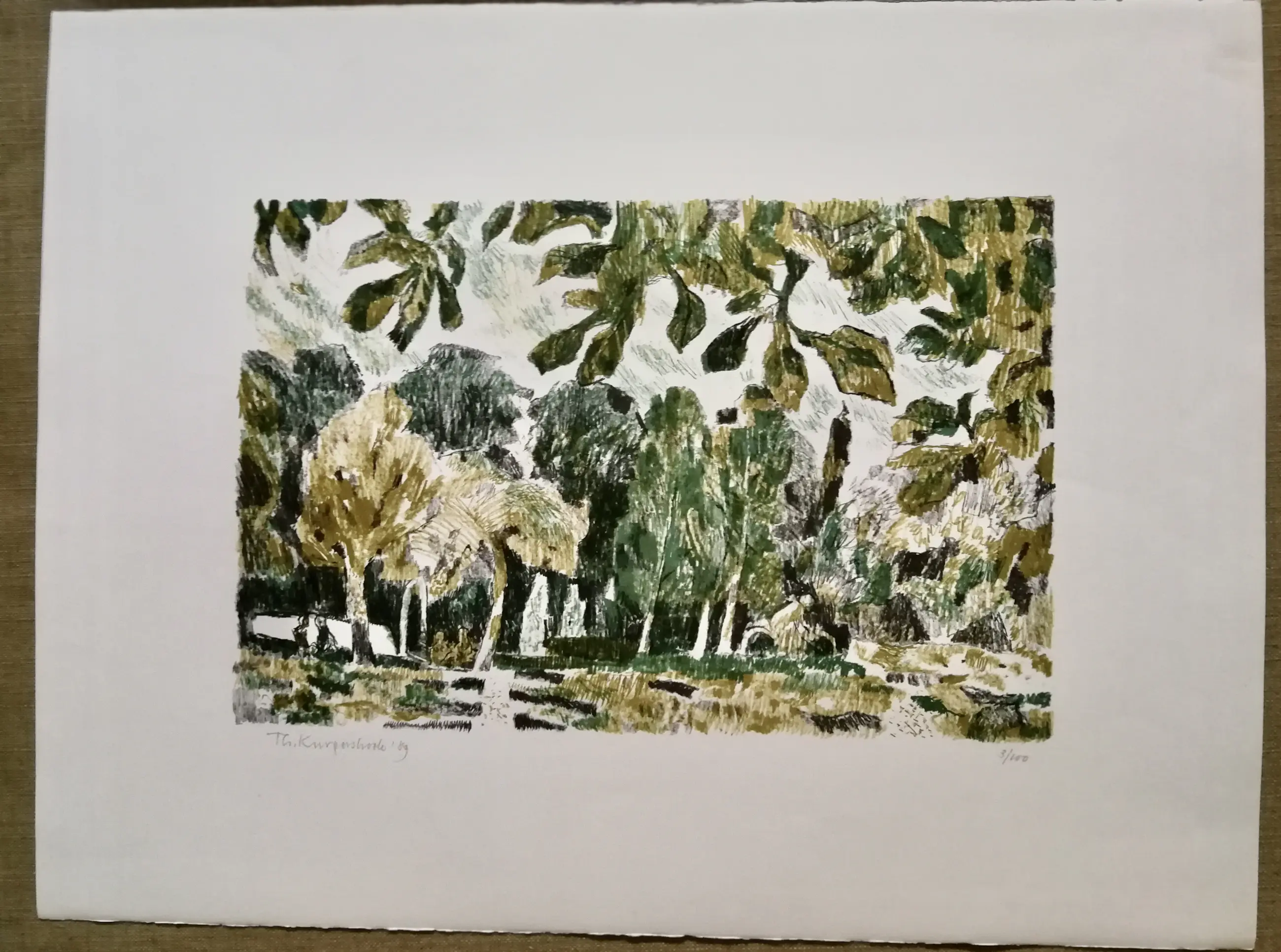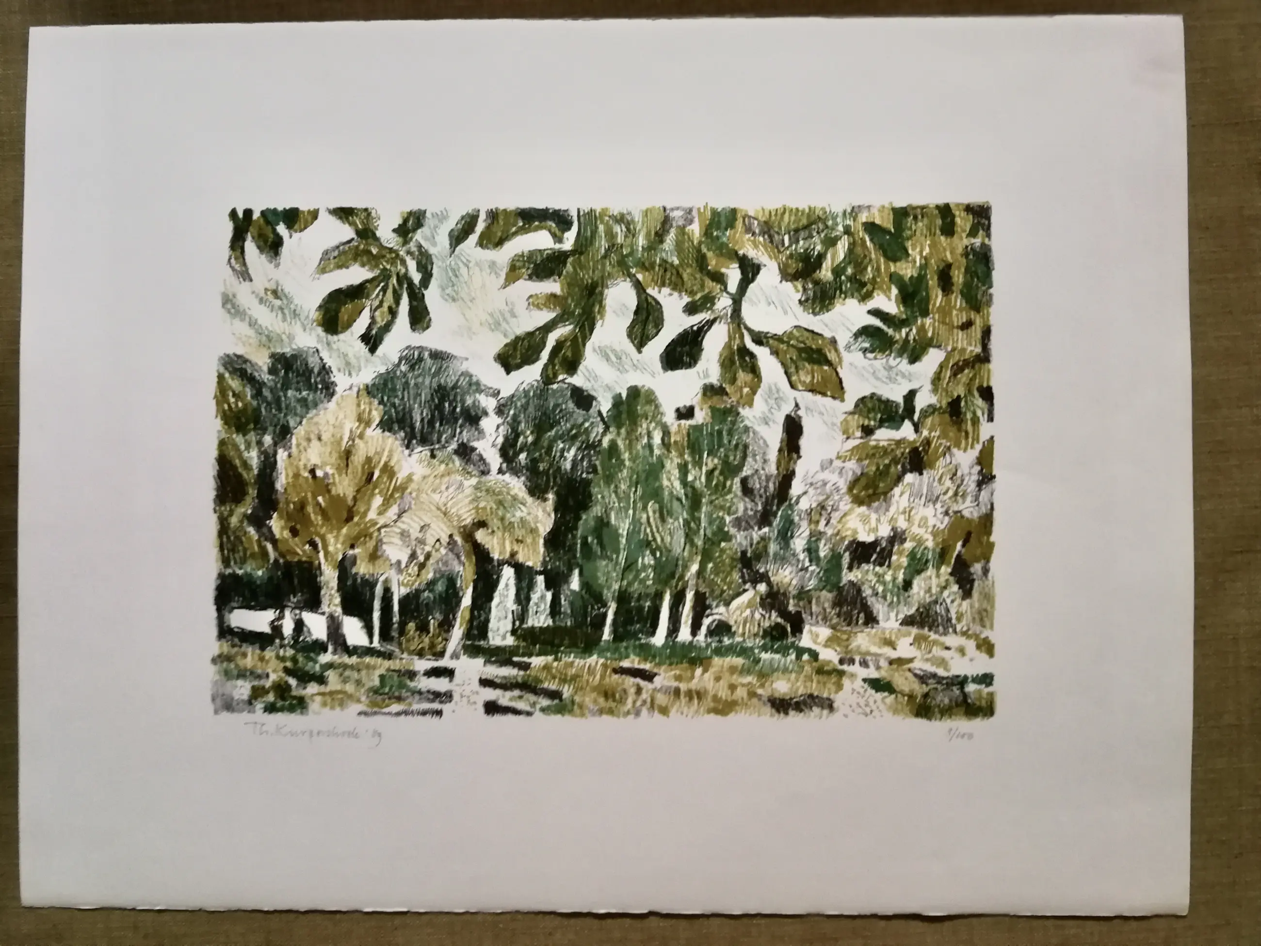 Litho van Theo Kurpershoek, gesigneerd, gedateerd en genummerd in potlood. Verzending in koker, 10 euro, aangetekend 12,30