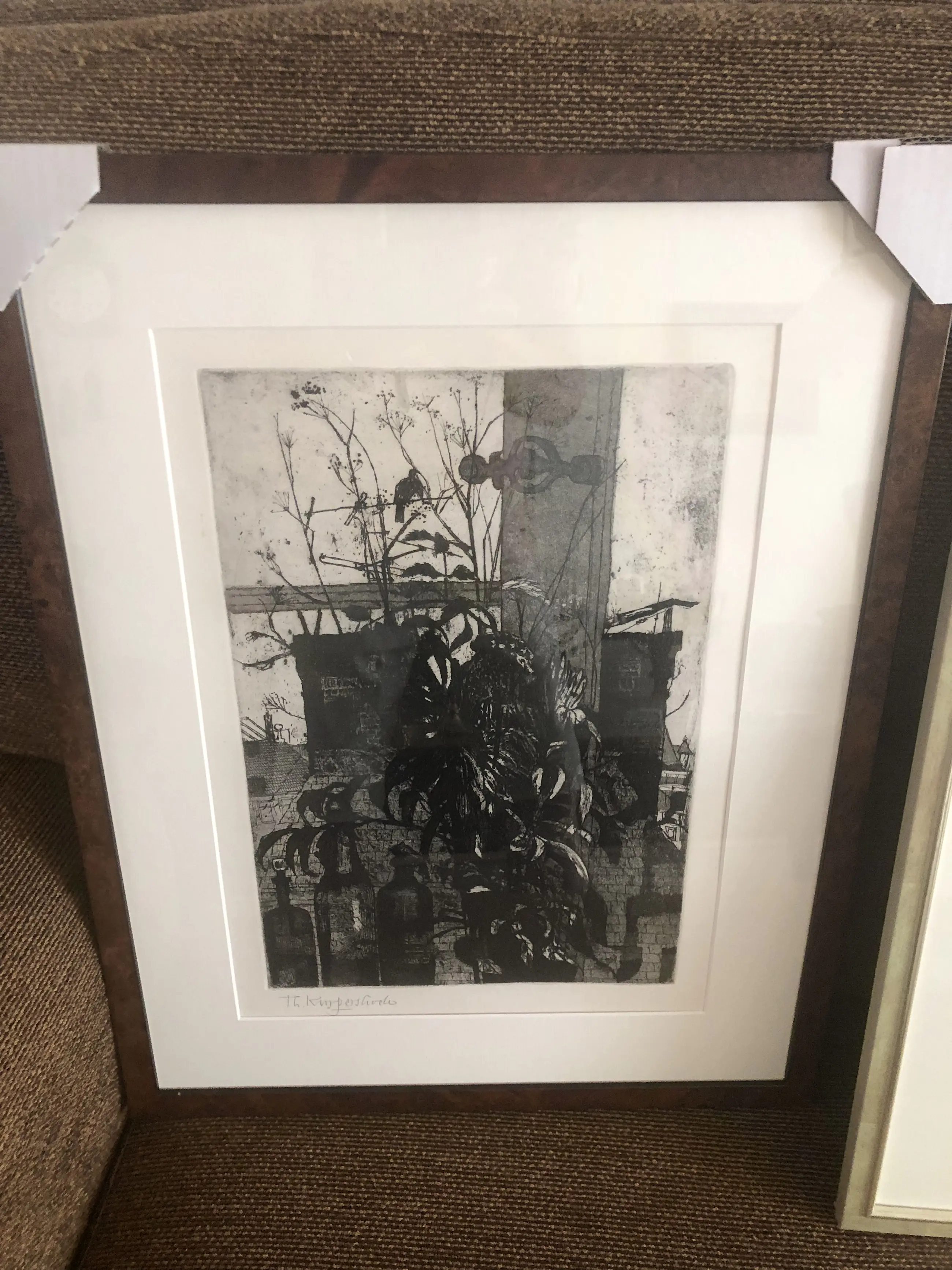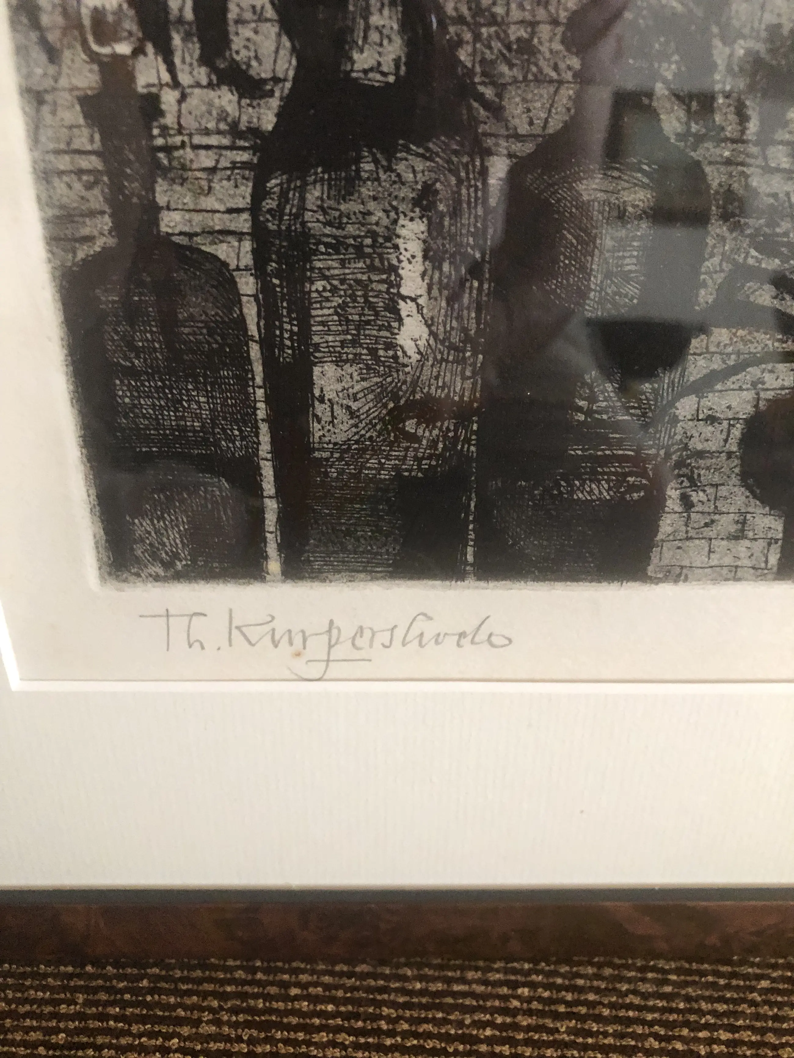 Zwart-Wit ets met de hand gesigneerd door de artiest ,goed beschermd onder glas in een waalnoothout ,deze werk is in zeer goede staat en klaar voor aan de muur.
