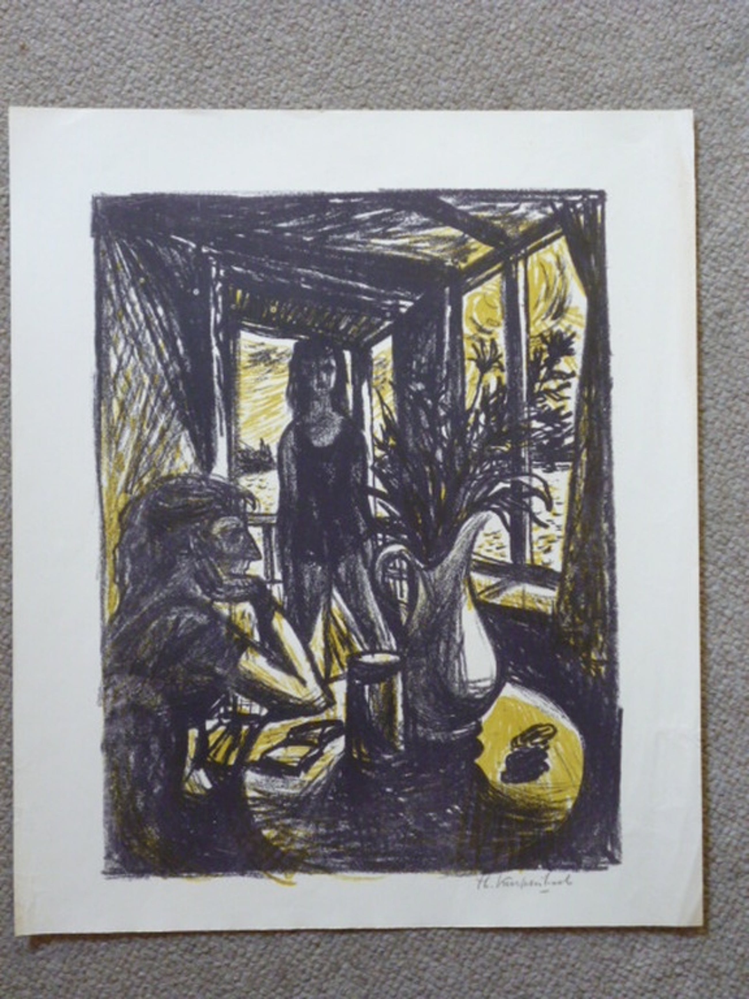 Kleurenlitho, potlood gesigneerd rechtsonder.