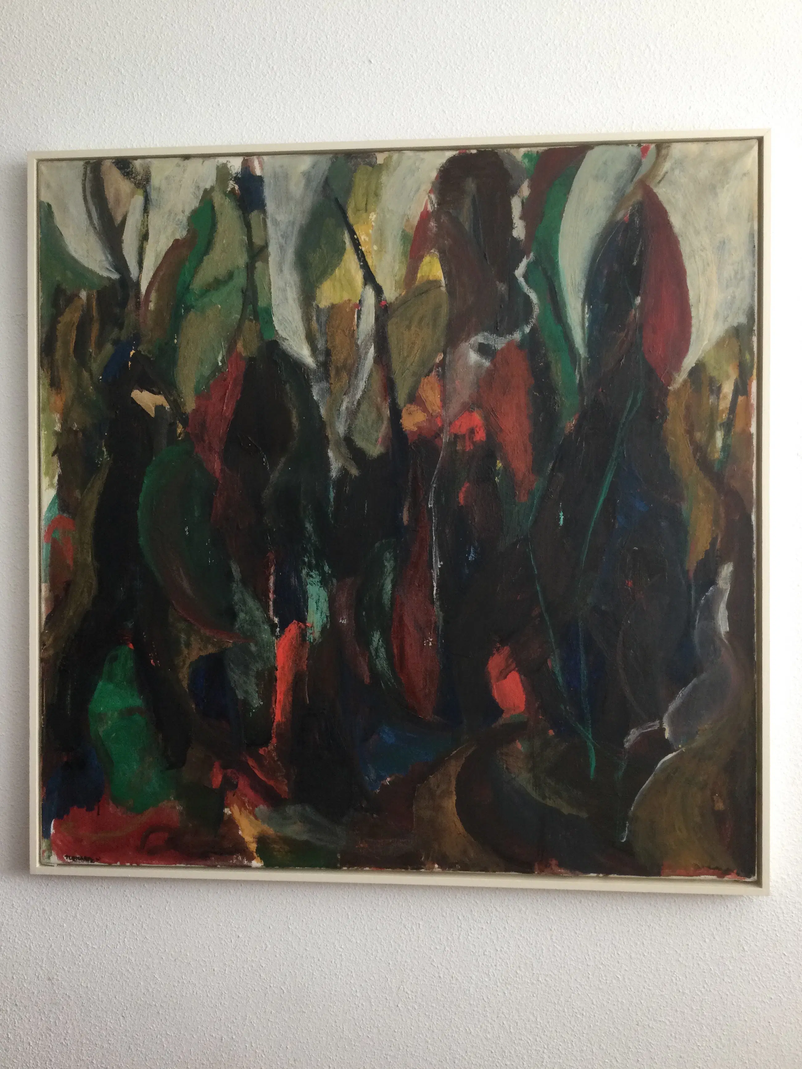 Dit fraaie in mooie warme kleuren met olieverf geschilderd doek is uit 1961. Dit werk is van Theo Lenartz geboren in Heerlen 1937. Deze veelzijdig kunstenaar is een begrip in Heerlen, maar ook door heel Nederland en Duitsland. Dit werk is van goede kwaliteit vandaar dat de kleuren en de verf er nog fantastisch uitziet.