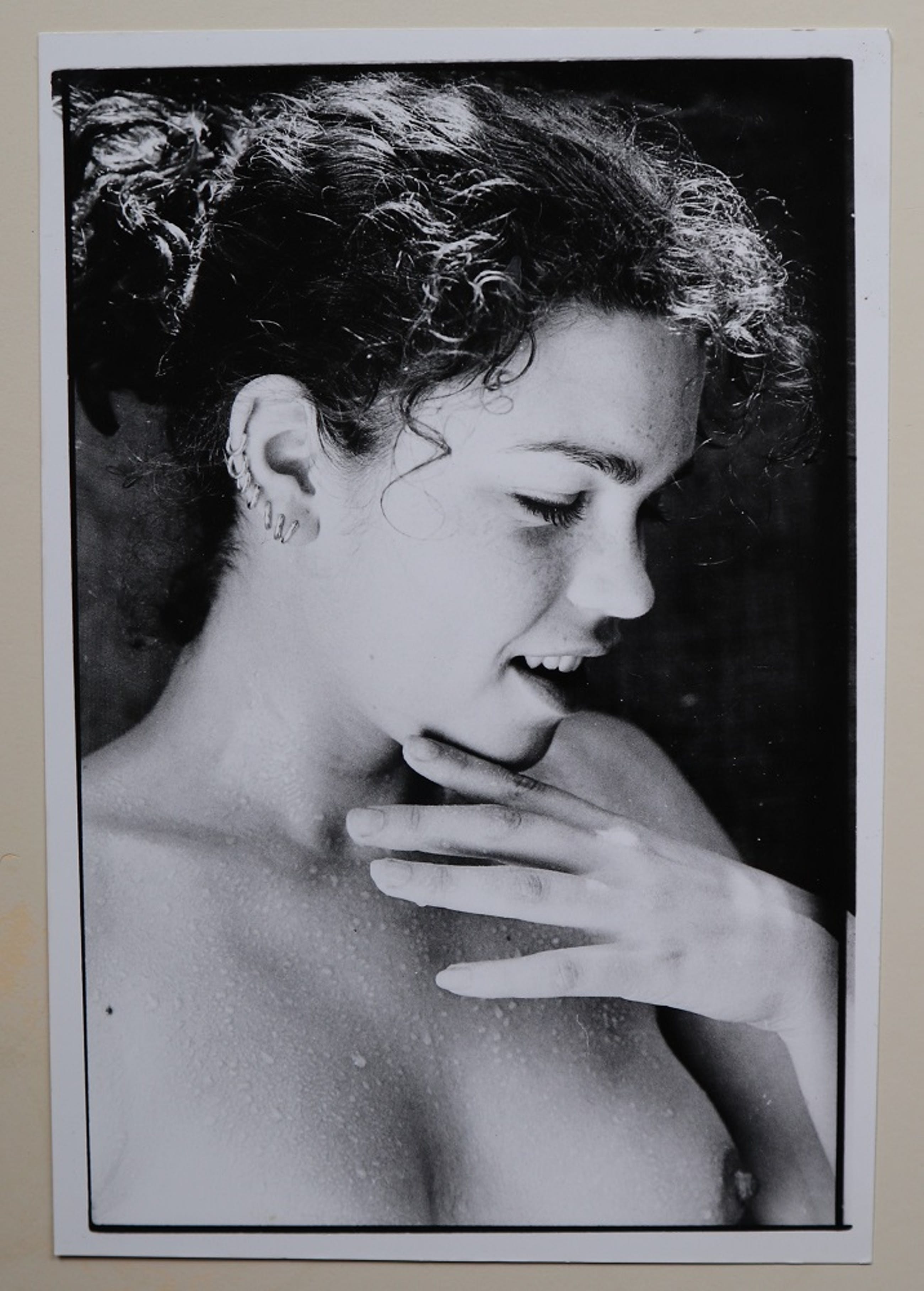 Mooie z/w foto van een jonge vrouw met ontblote borst