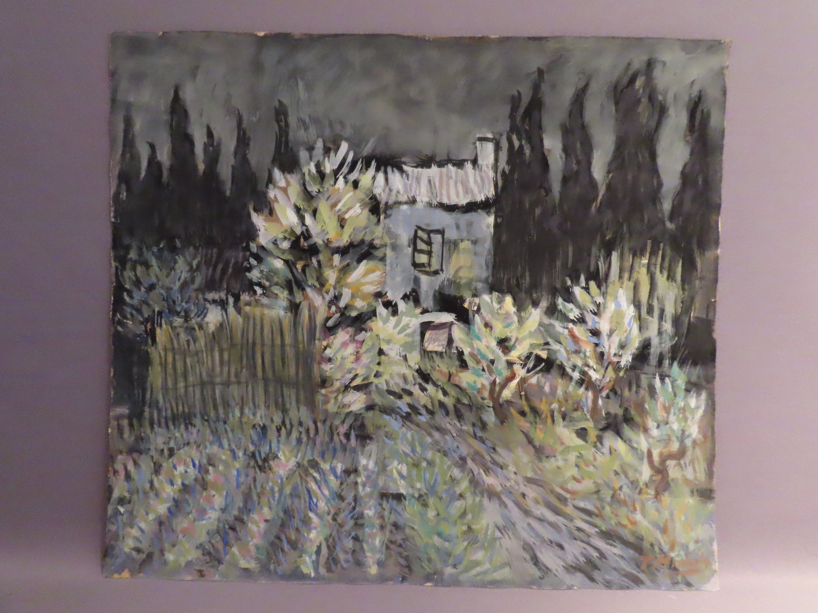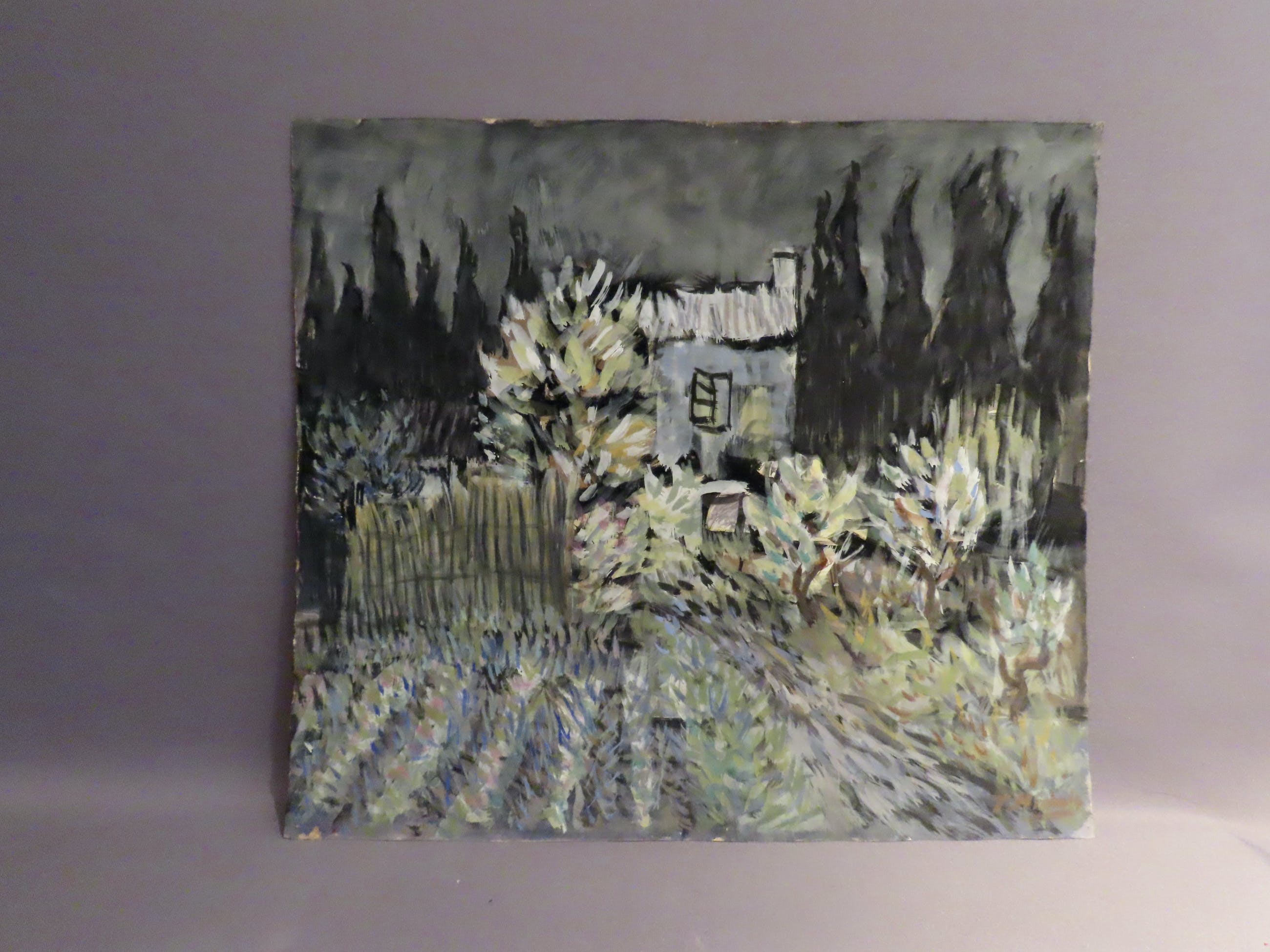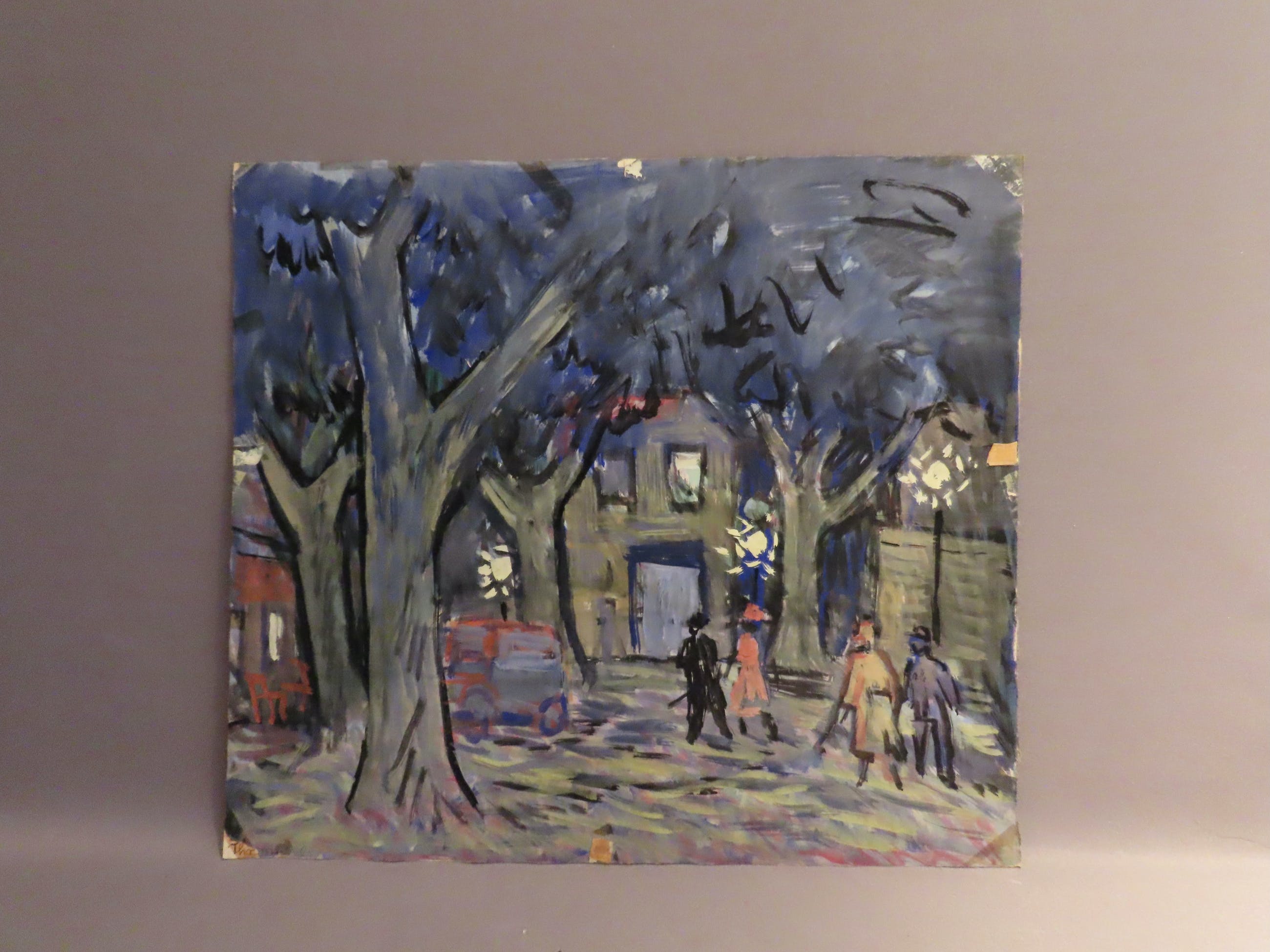 Bijzonder werk van Theo Michels omdat de drager, papier in dit geval, aan twee zijden is beschilderd. De zijde met de signatuur is het uiteindelijk geworden.
