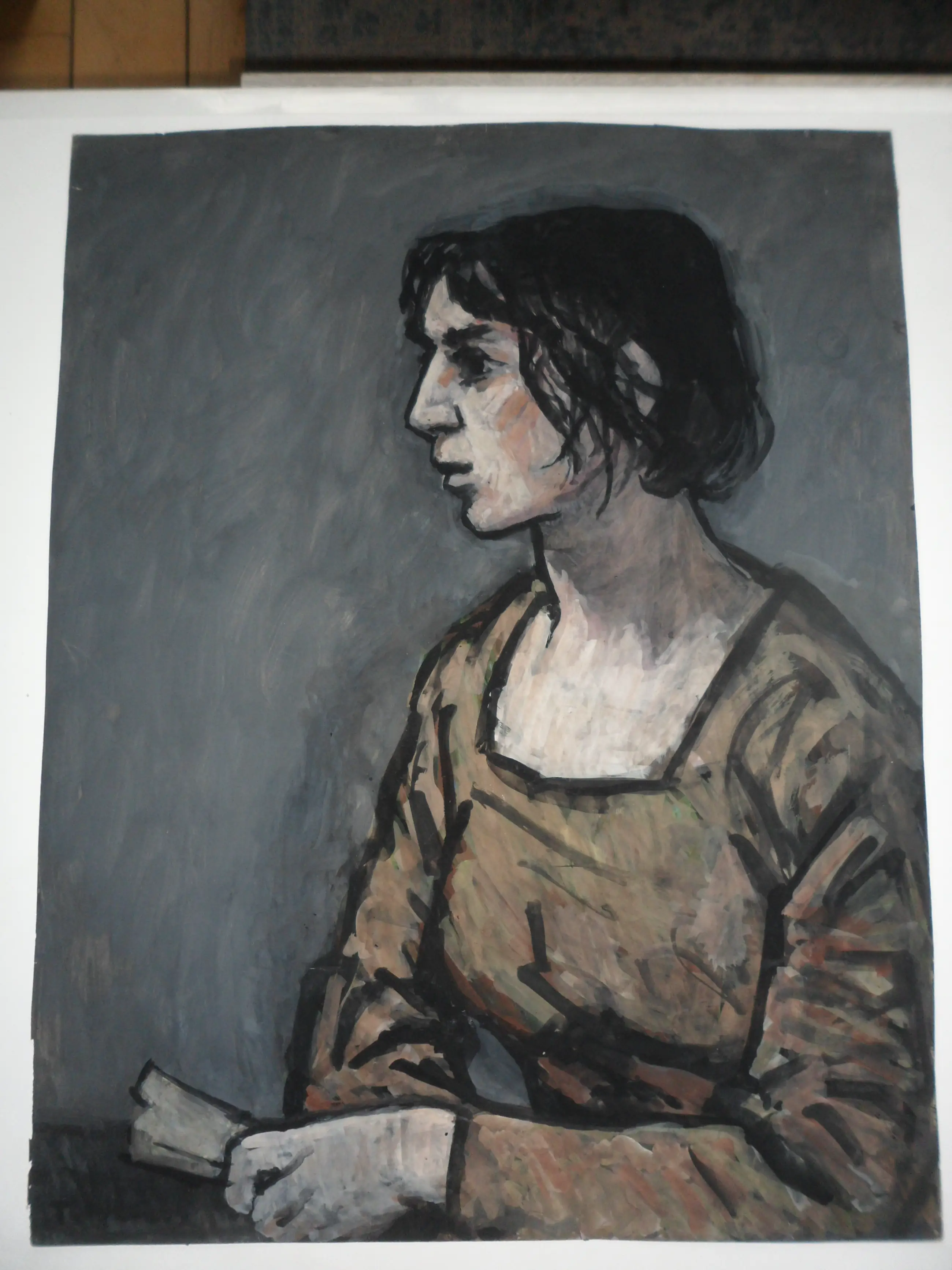 Mooi aan dit schilderij is de levendigheid die, met het nemen van afstand tot het werk, groter wordt. Meisje as profiel.