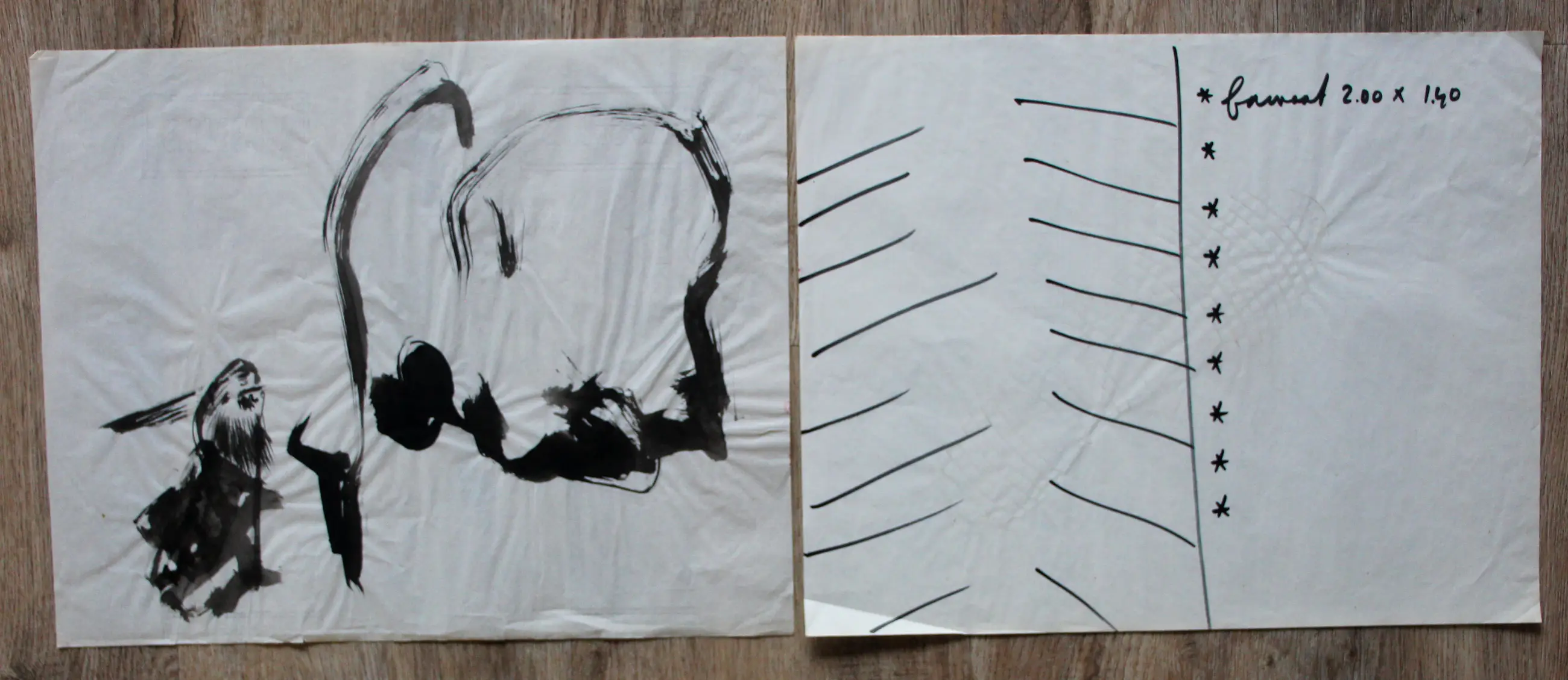 3x viltstift op papier en 1x aquarel van Theo Niermeijer. Alle werken zijn op Japans papier gemaakt. De tekening komt uit zijn persoonlijk archief. Dit betreft 4 tekeningen uit een map met tekeningen (1996) uit zijn persoonlijke archief. Afmetingen blad: H43 x b34 cm. De authenticiteit van de aangeboden werken wordt volledig gegarandeerd. Een certificaat van echtheid kan, op aanvraag, worden gemaild.