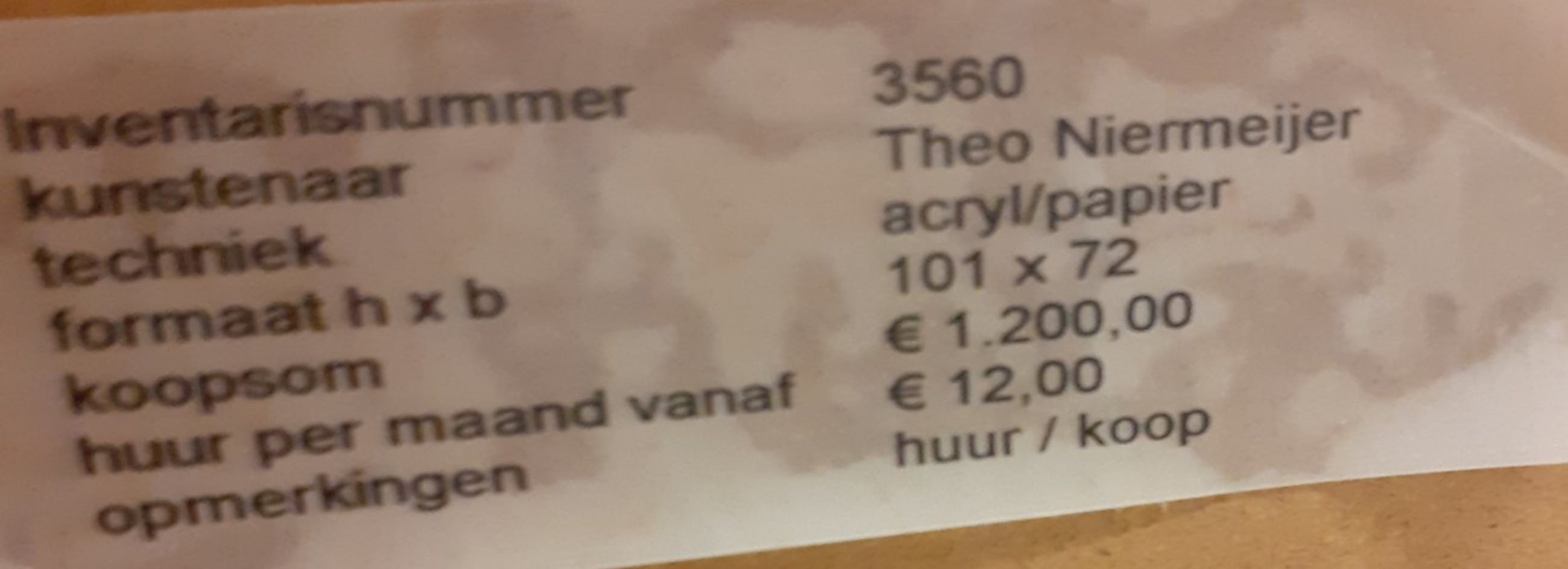 Het werk is af te halen op locatie. Als koper dient u zelf verpakkingsmateriaal mee te nemen. De locatie is: Dworp, België