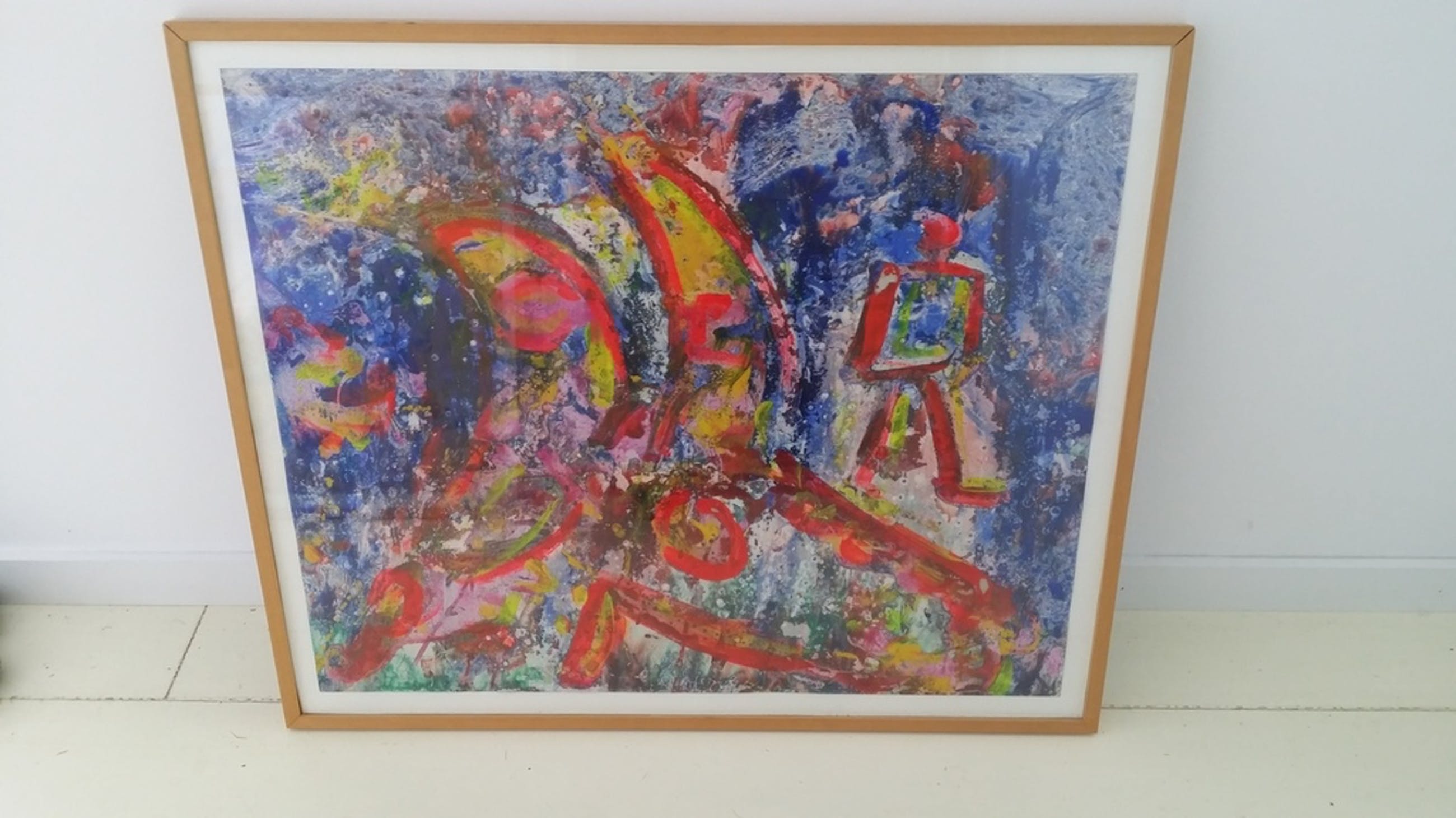Werk jaren terug aangeschaft via de kunstuitleen, maar past niet langer in onze nieuwe inrichting. Het werk is inclusief lijst indien gewenst. Wanneer de lijst niet gewenst is dan zijn de verzendkosten uiteraard minder (7 euro).