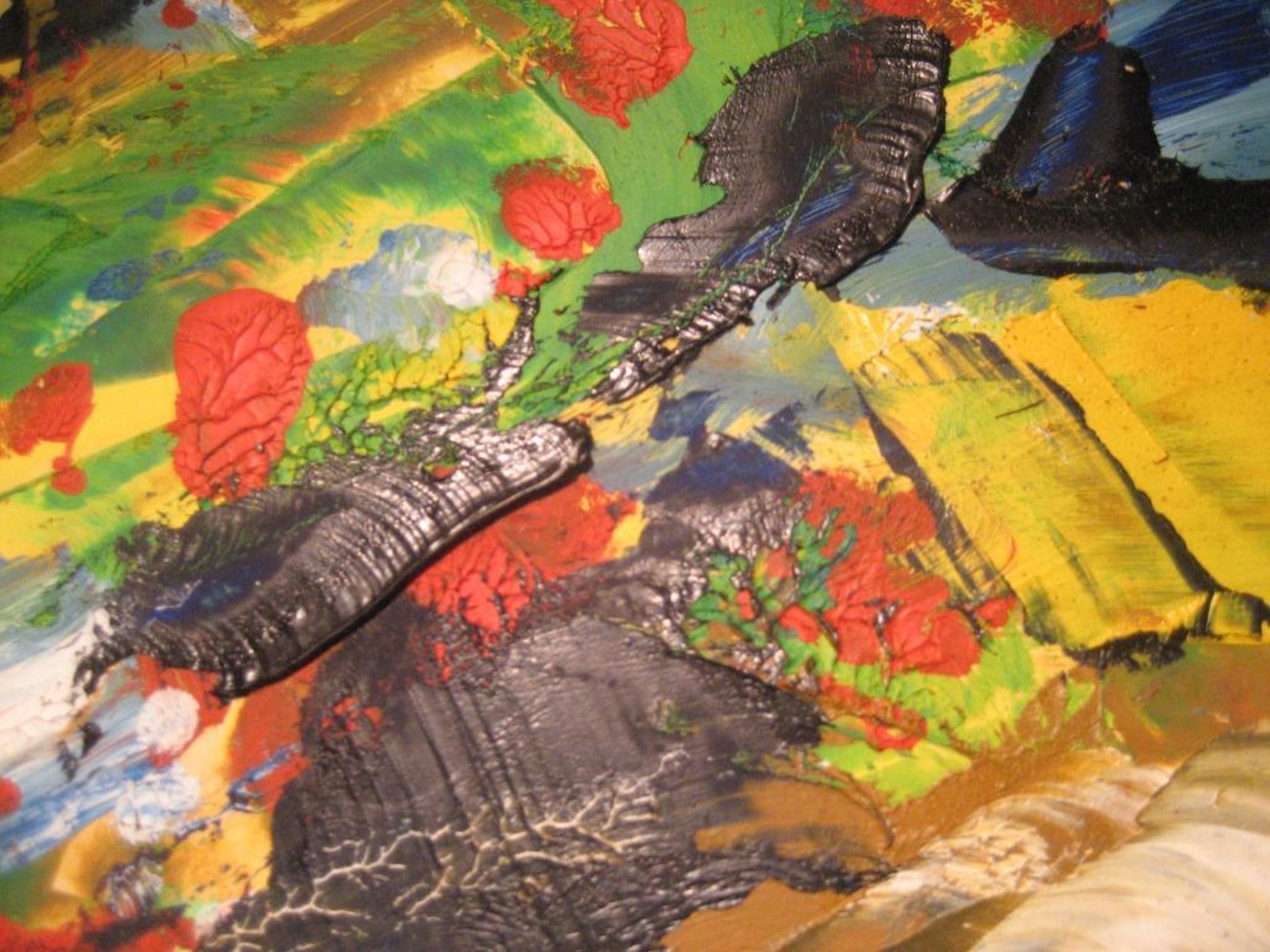 Expressief werk op karton in krachtige kleuren