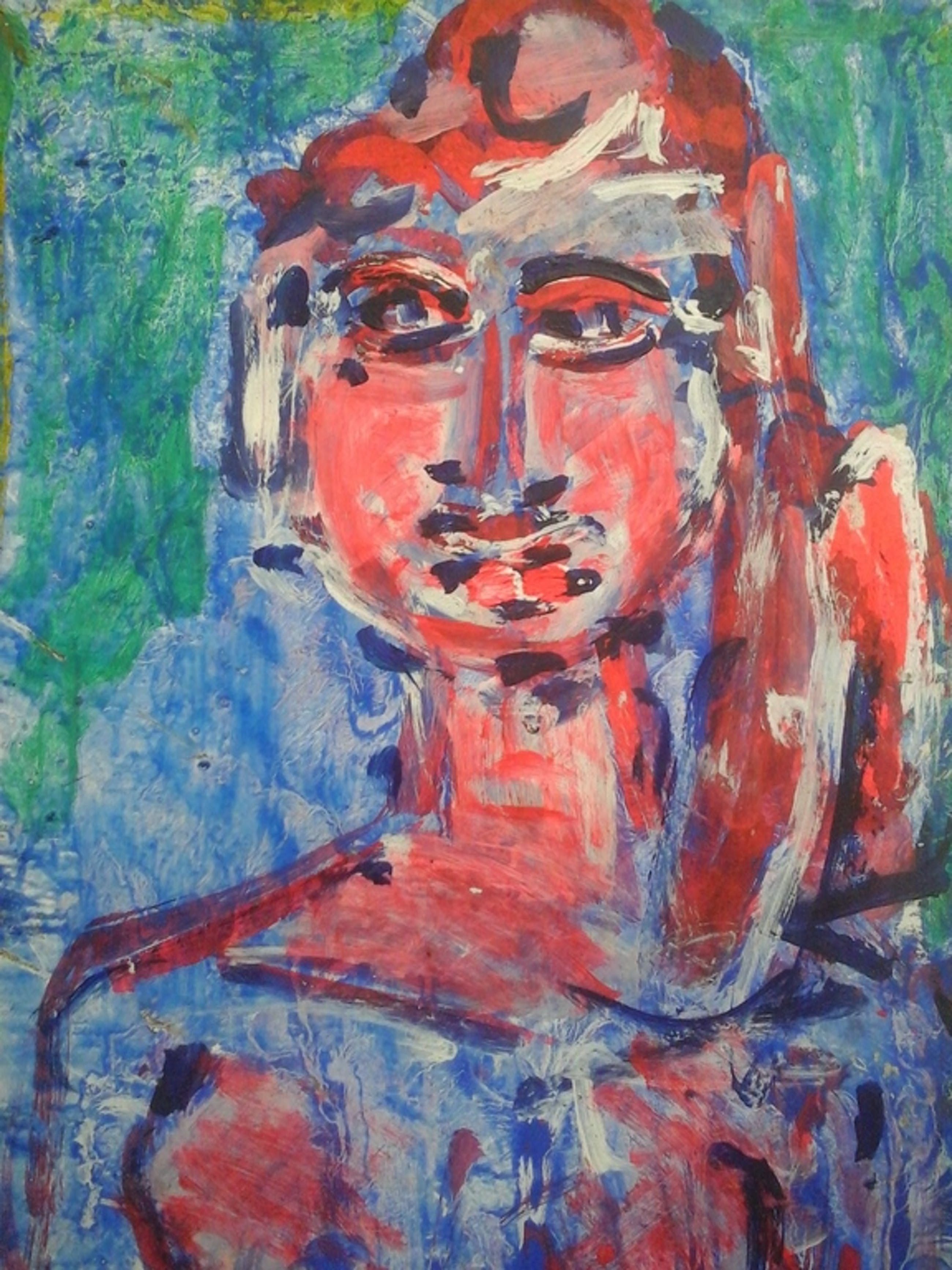 Het betreft een combinatietechniek op hard papier in zijn Oosterse stijl.