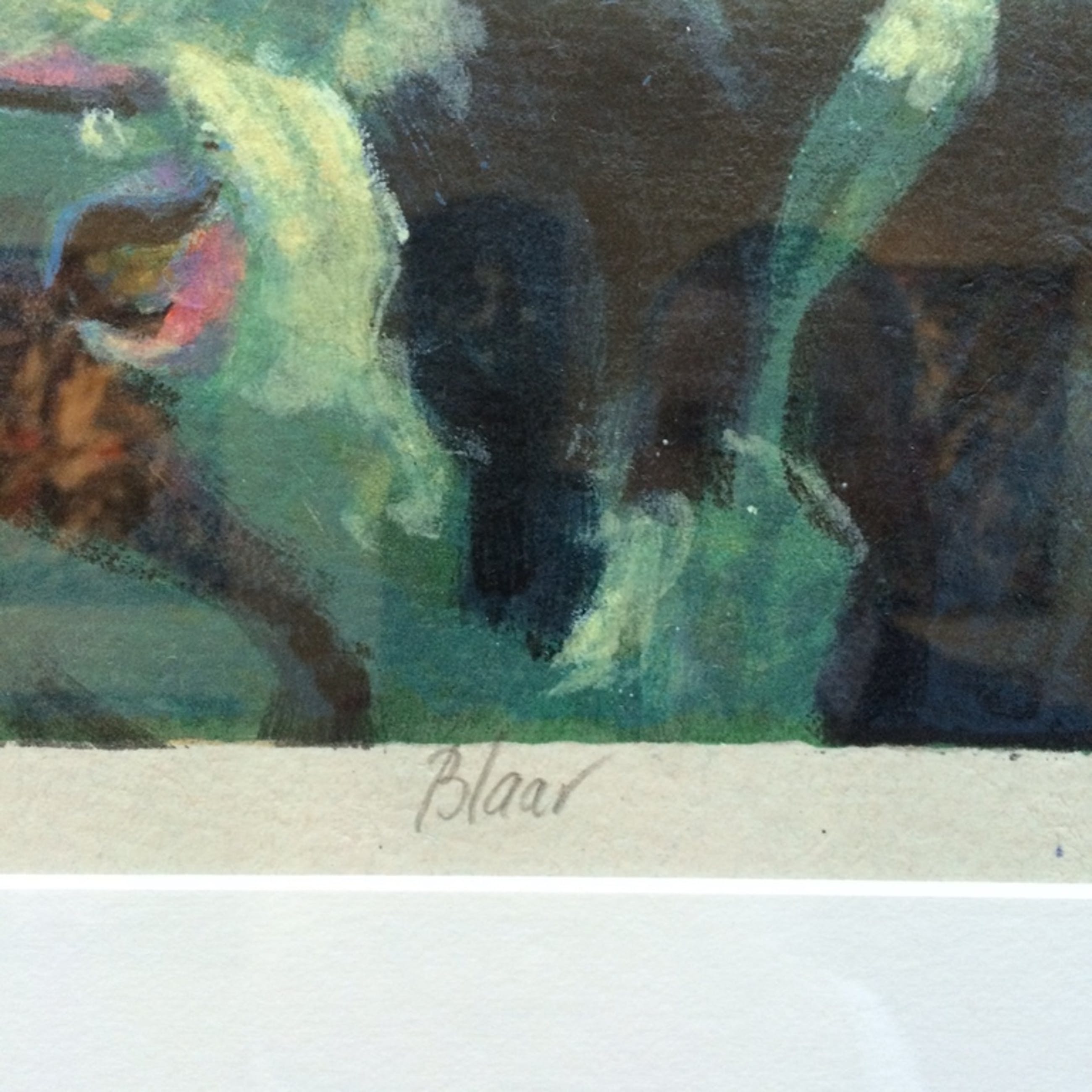 Titel: Blaar Oplage: 44 / 140 ,Afmetingen :beeld h.20cm x b. 35 cm lijst: 47 x 57 cm , Gesigneerd: rechtsonder. Ingelijst: Ja, in aluminium lijst Materiaal: papier Ophalen: U kunt het werk ophalen in de galerie Van Bellen Art in Willemstad of Brielle. Verzenden Nederland €. 25,- Belgie €. 35,-
