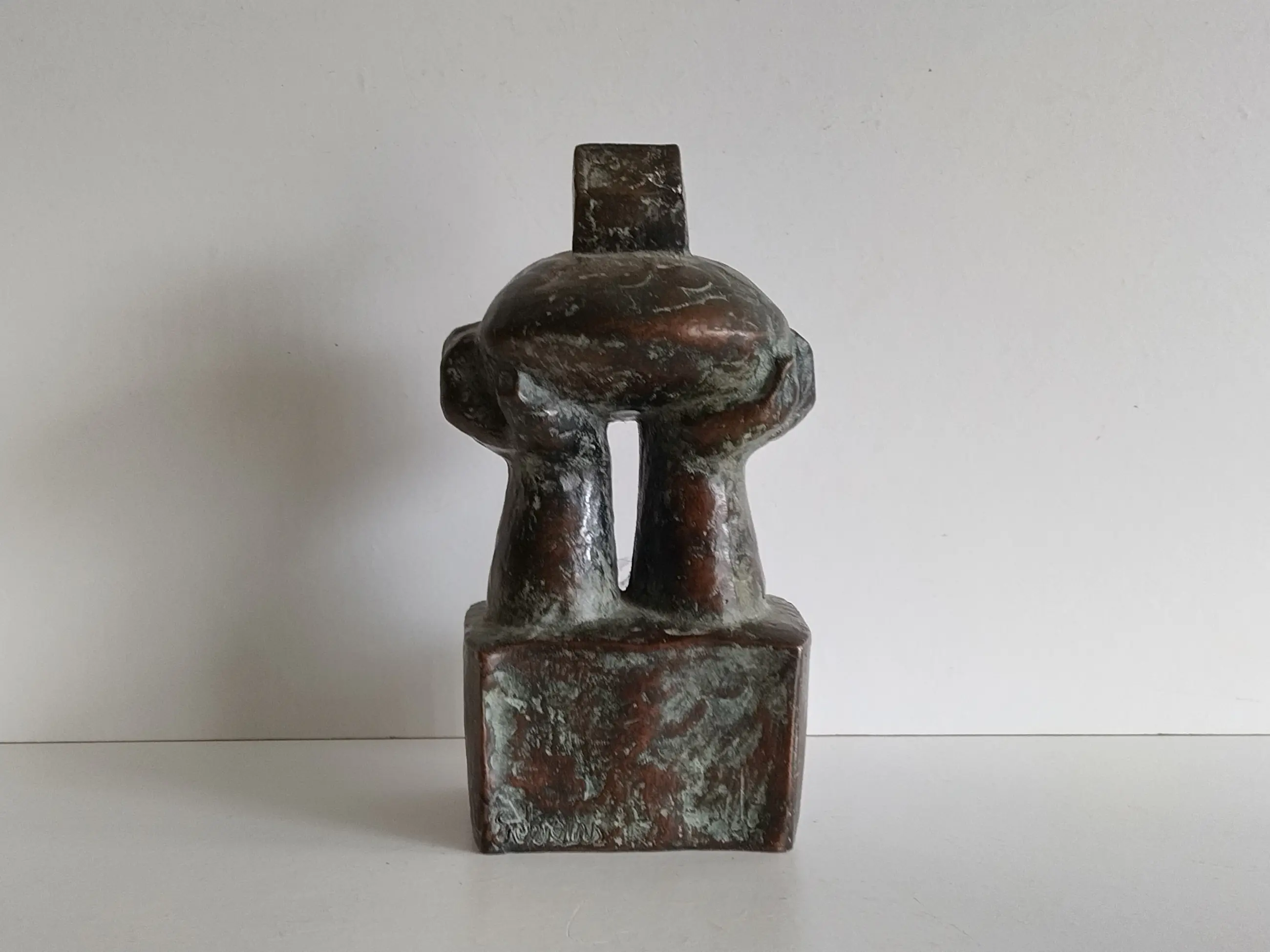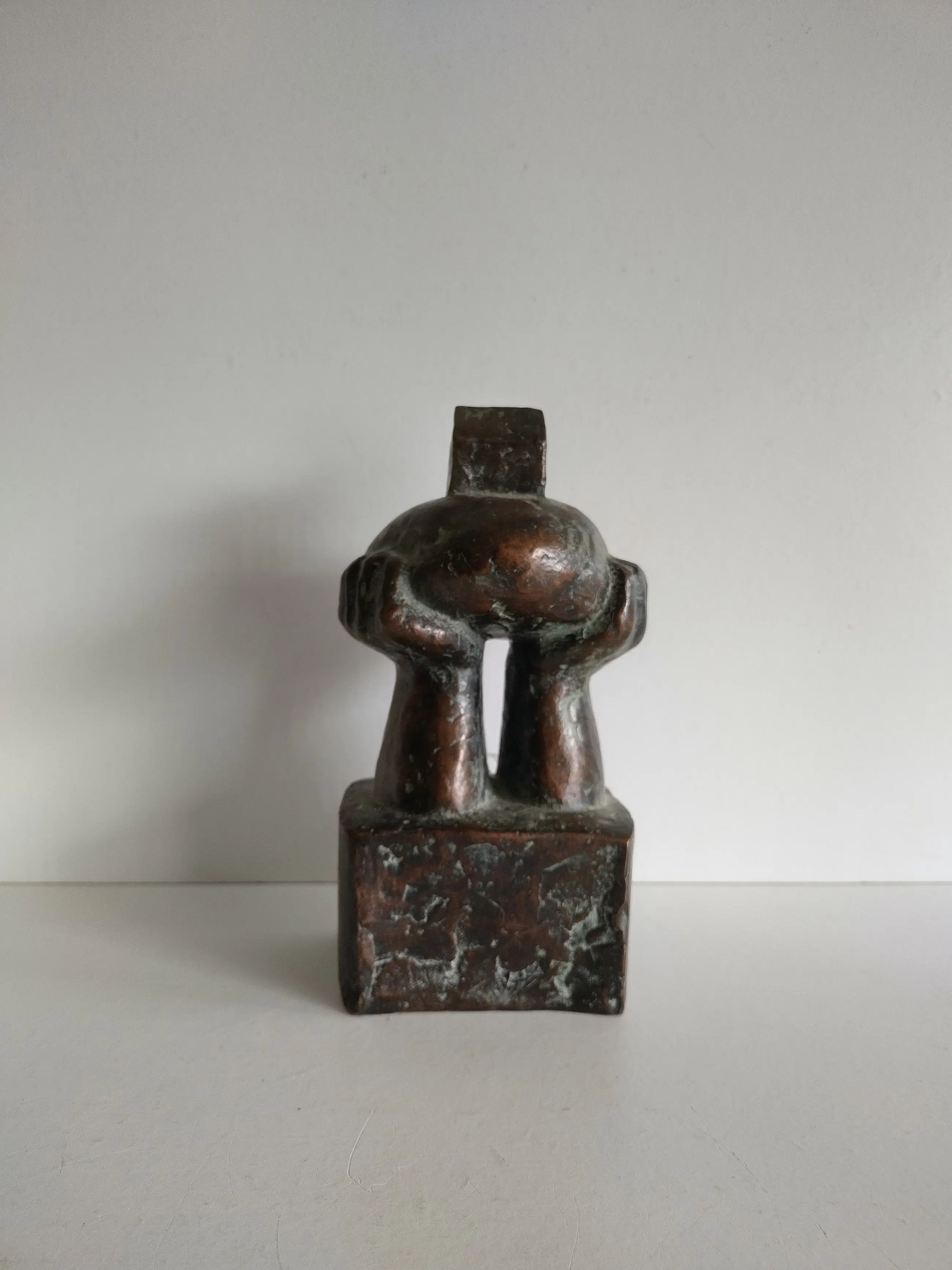 Bronzen “Vitruvius “ beeldje van de hand van beeldhouwer / beeldend kunstenaar Theo Schreurs (1939 – 2024) . De (bronzen) Vitruvius is een kunstwerk van de beeldhouwer Theo Schreurs en symboliseert het vormgeven van het landschap en de gebouwde omgeving.