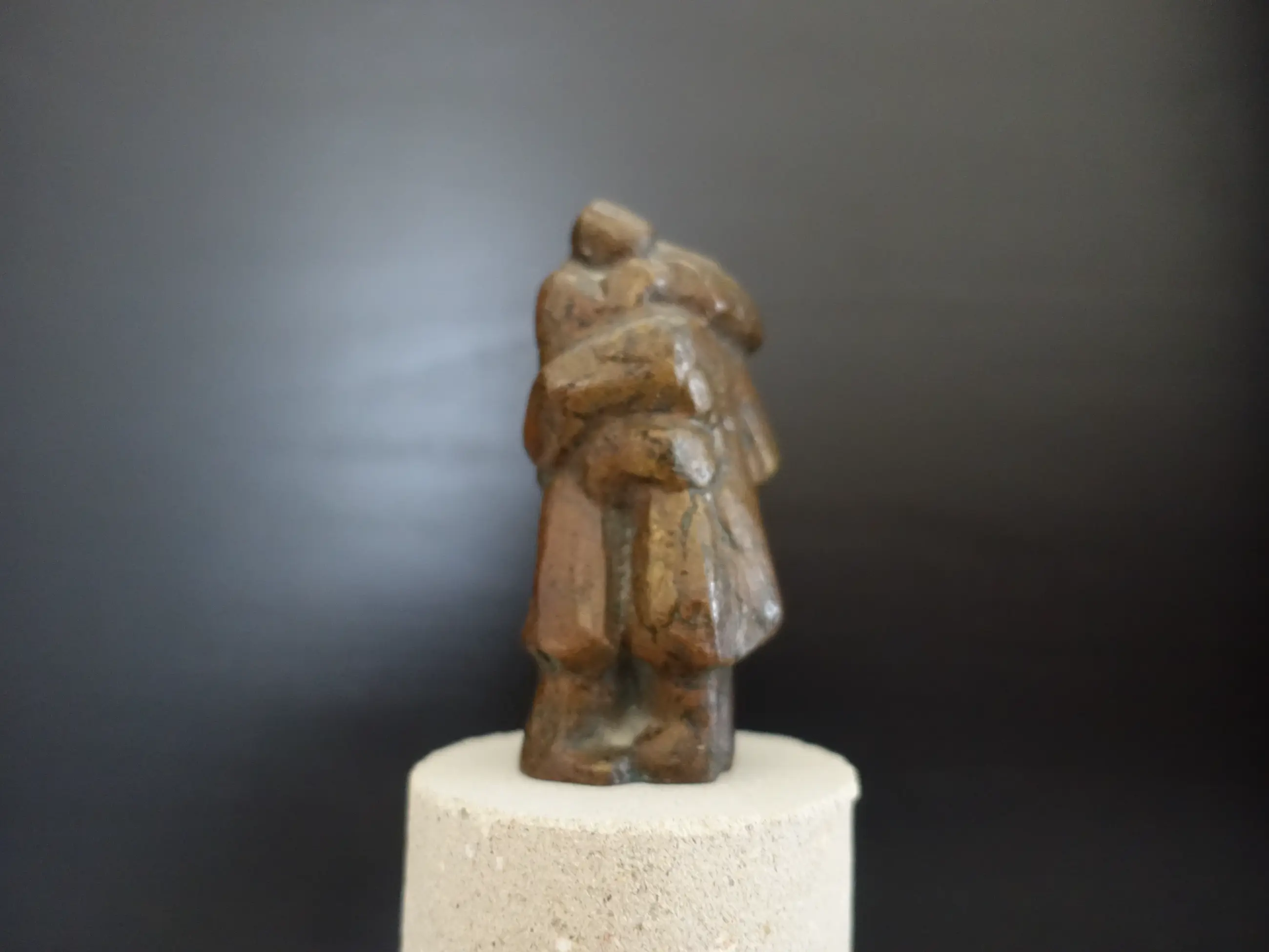 Zeer liefelijk beeldje van twee mensen die elkaar omhelzen een troostrijk beeldje. Gesigneerd met de letter S
