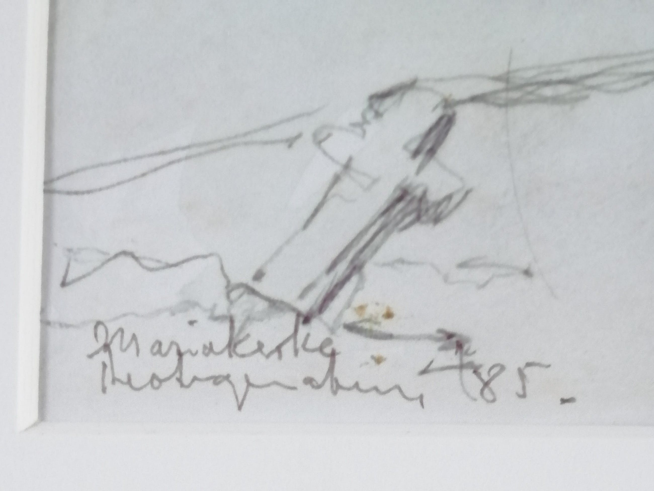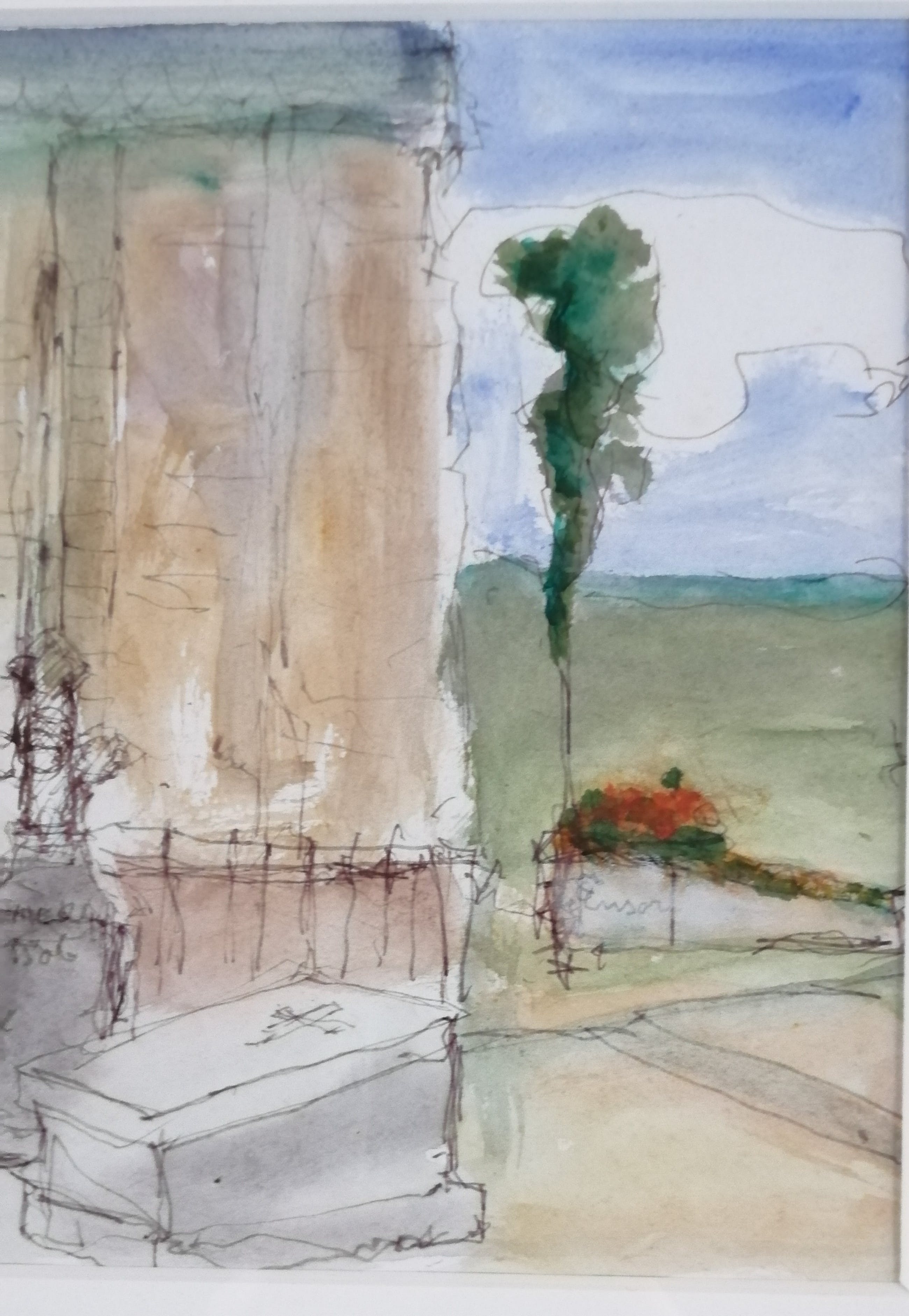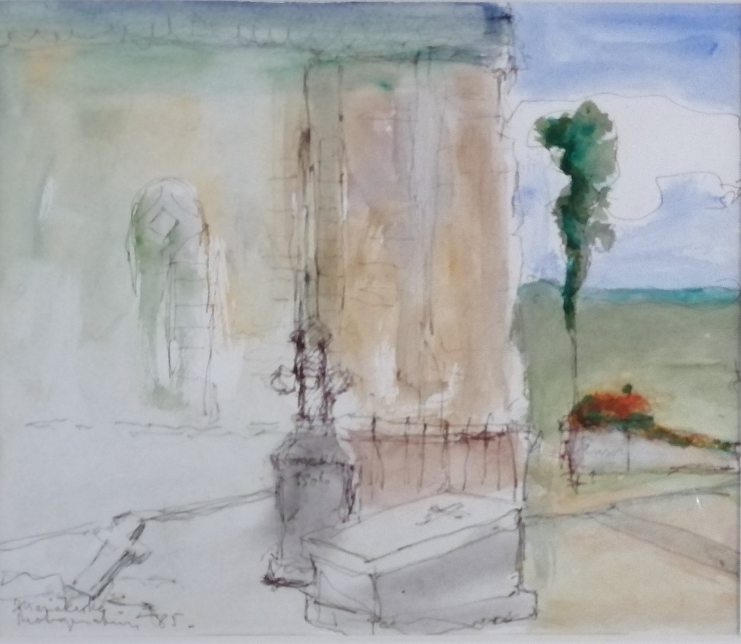 Gesigneerd en gedateerd '85 linksonder. Voorstellende het graf van James Ensor bij de Maria Kerke te Oostende (België). Dit werk is afkomstig uit de verzameling van Louis Moons, destijds eigenaar van het Theo Swagemakers Museum te Haarlem. Theo Swagemakers wer geboren te Tilburg op 25 december 1898 en overleed te Laren (N-H) op 27 mei 1994. Opleiding aan de Académie des Beaux Arts te Brussel en de Académie Colarossi te Parijs.