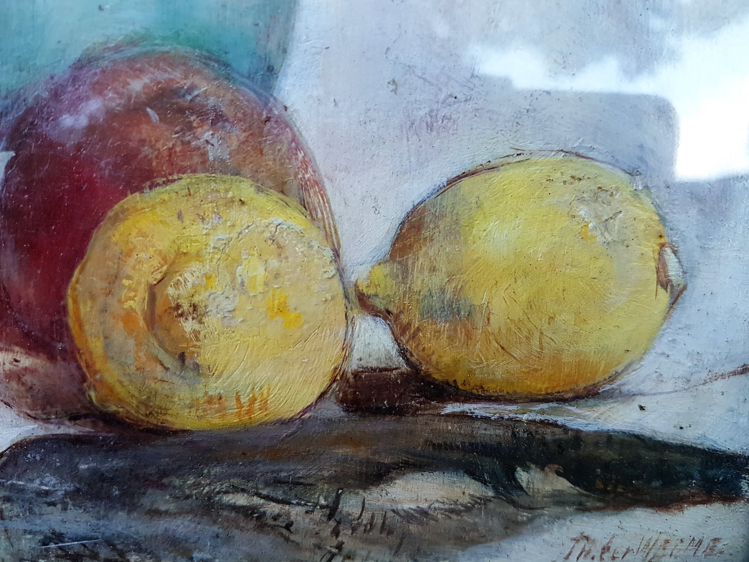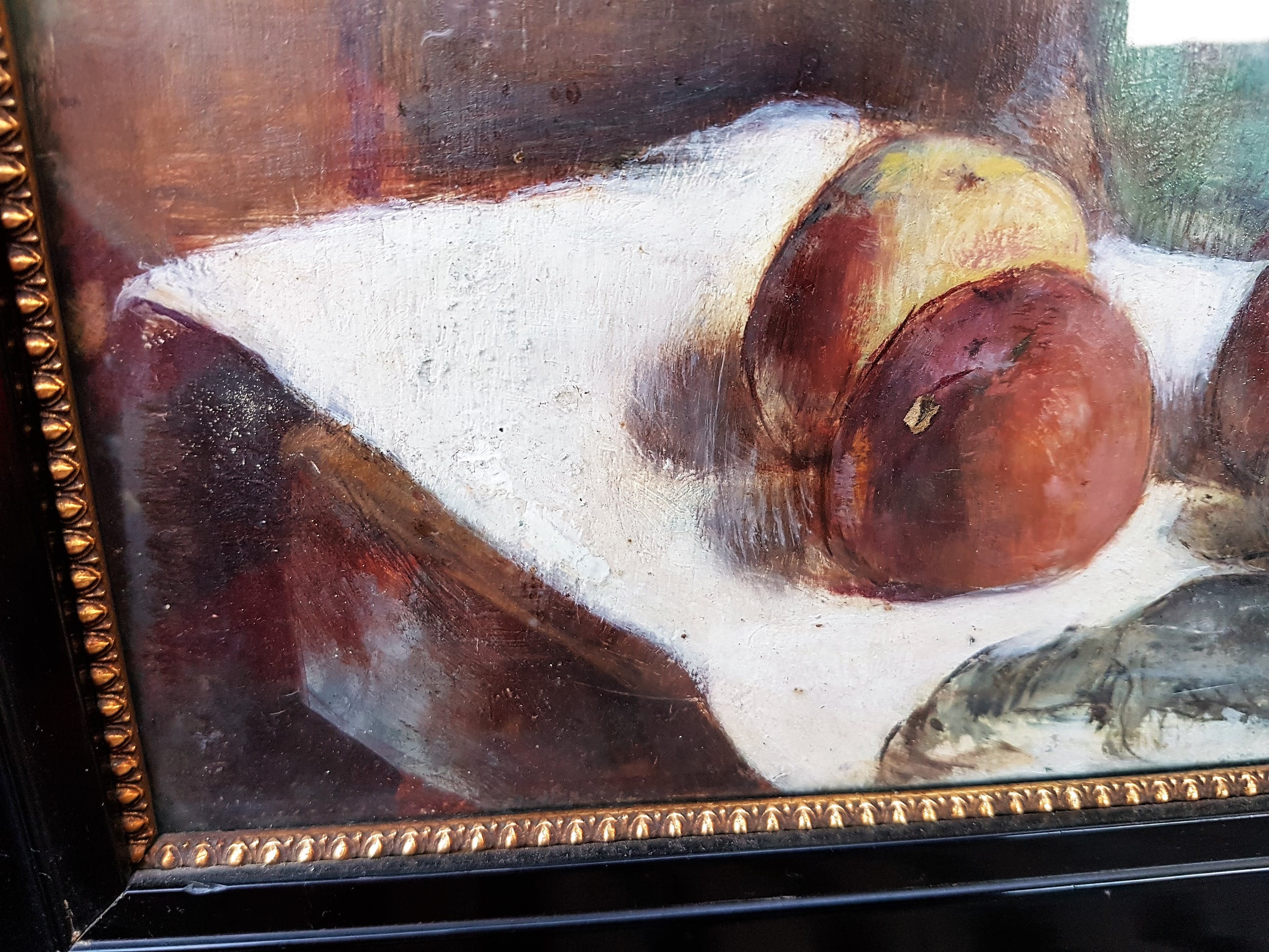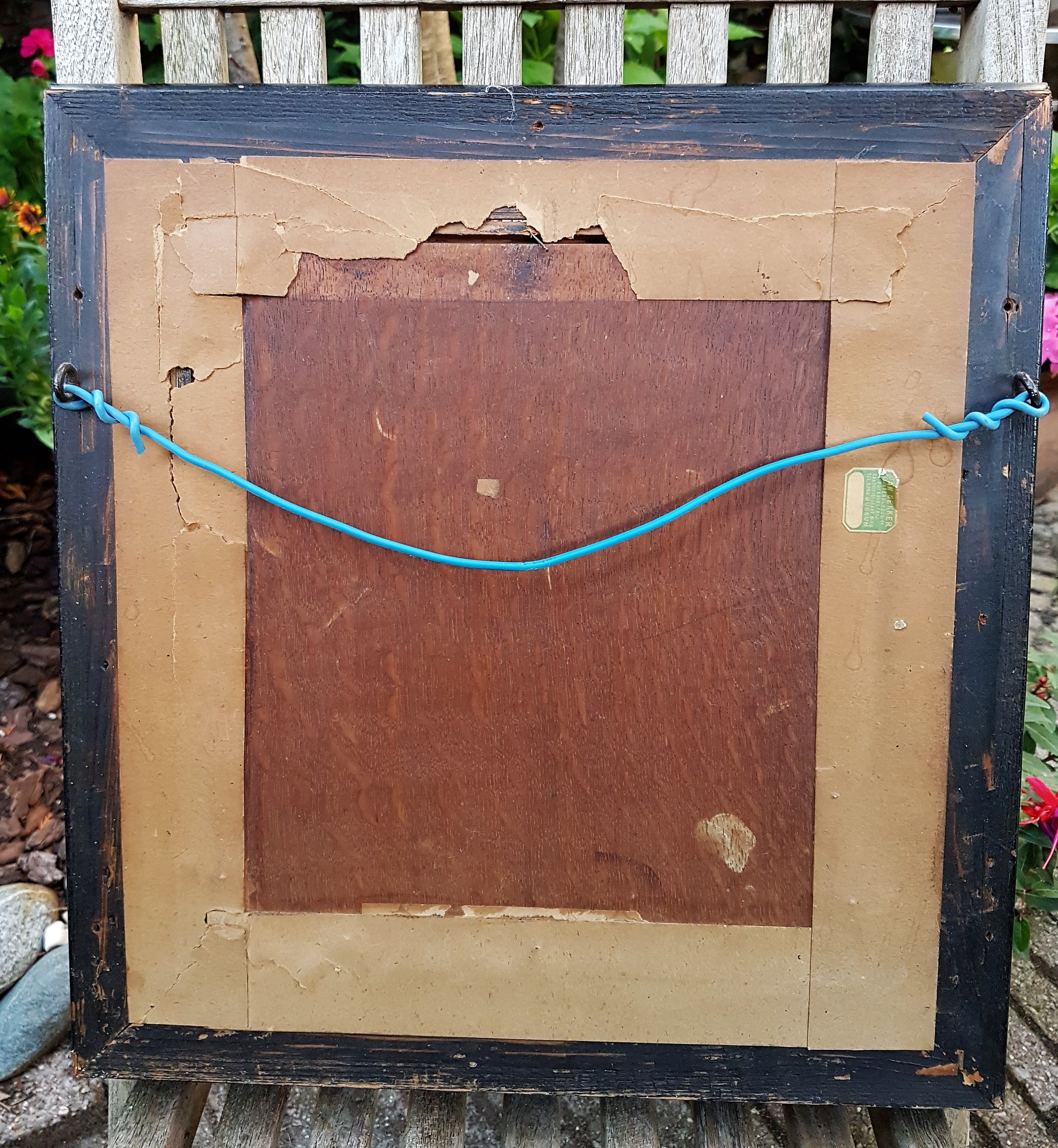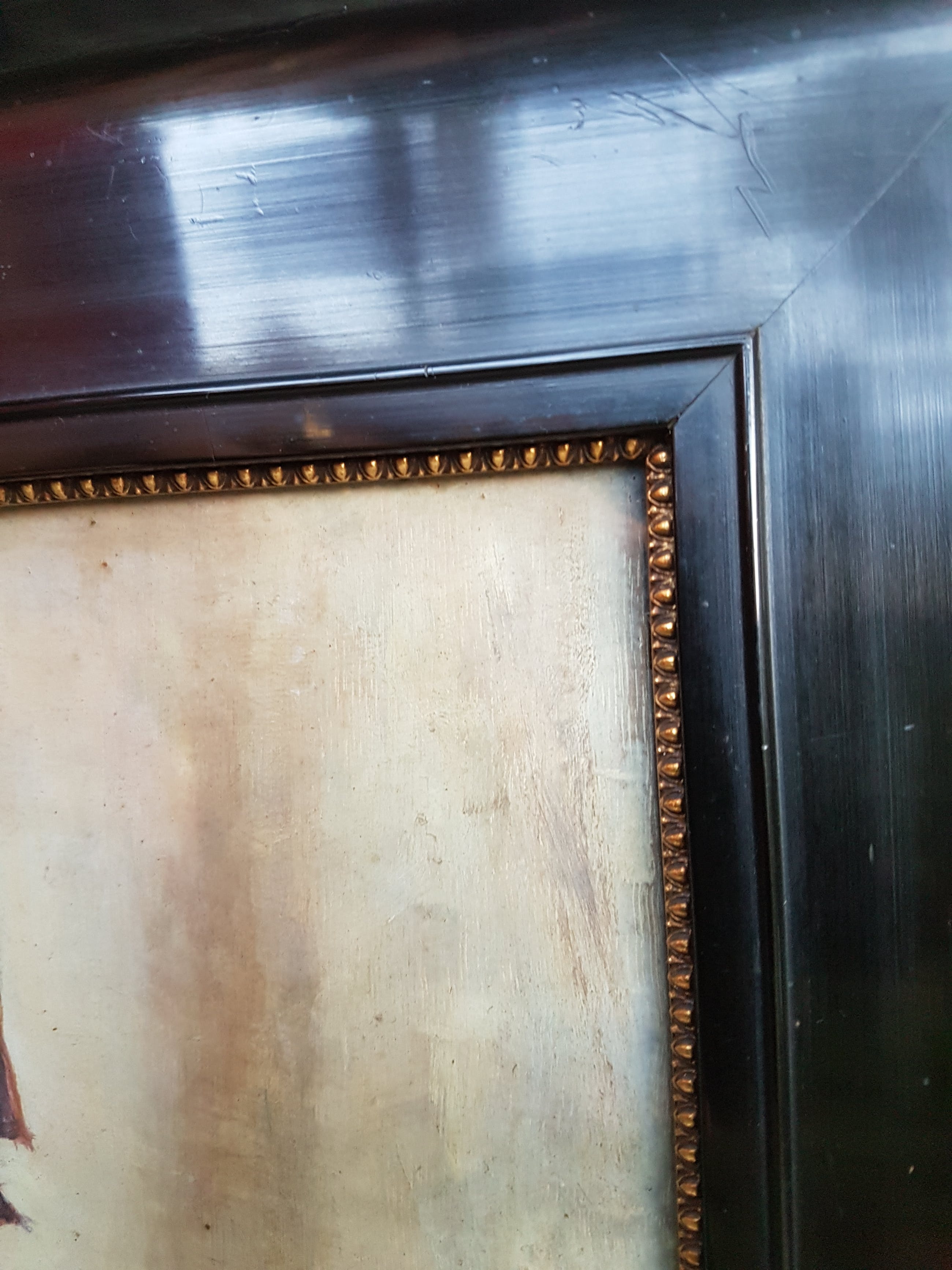 Schilderij heeft oud, spiegelend glas in de lijst zitten