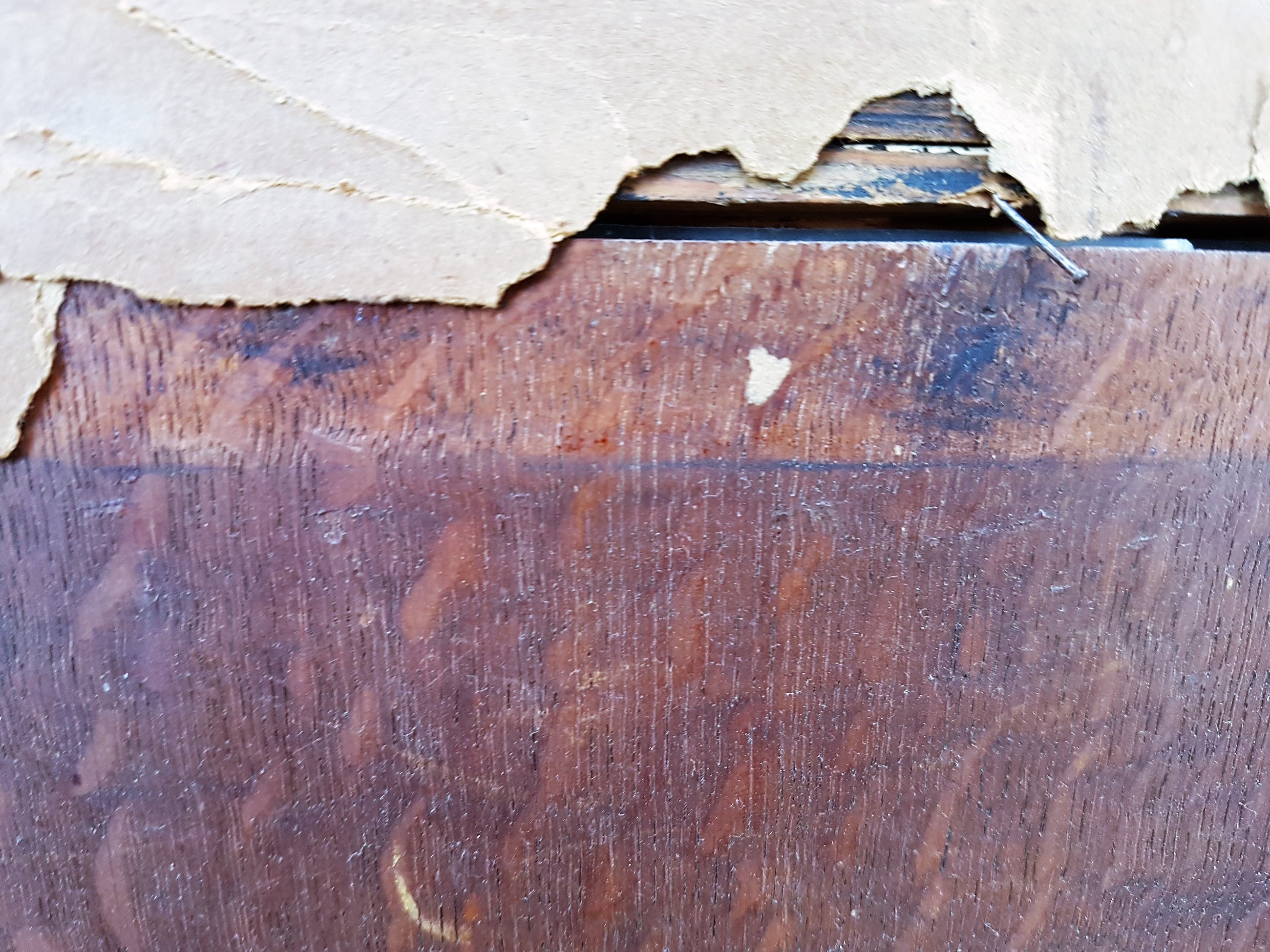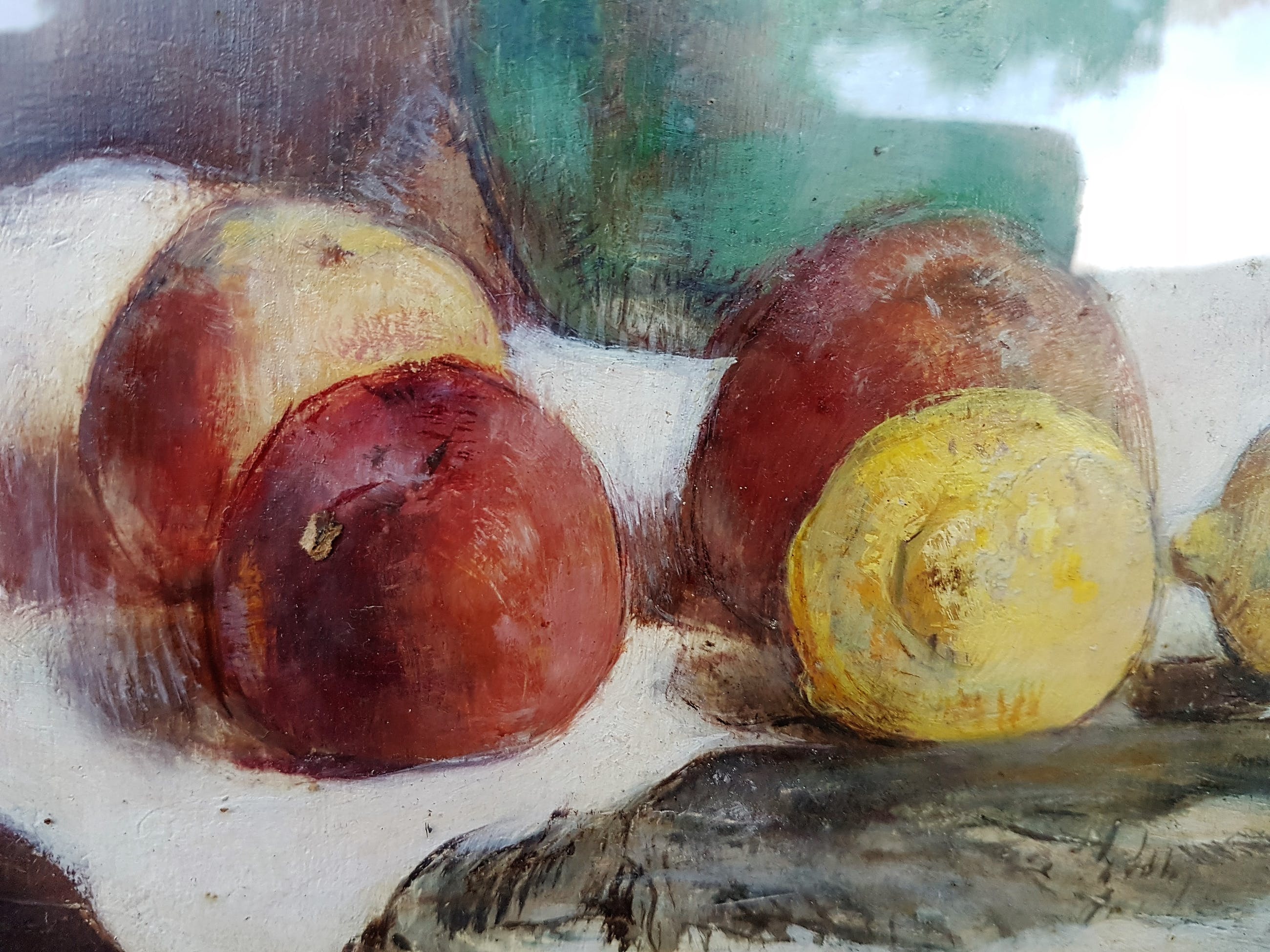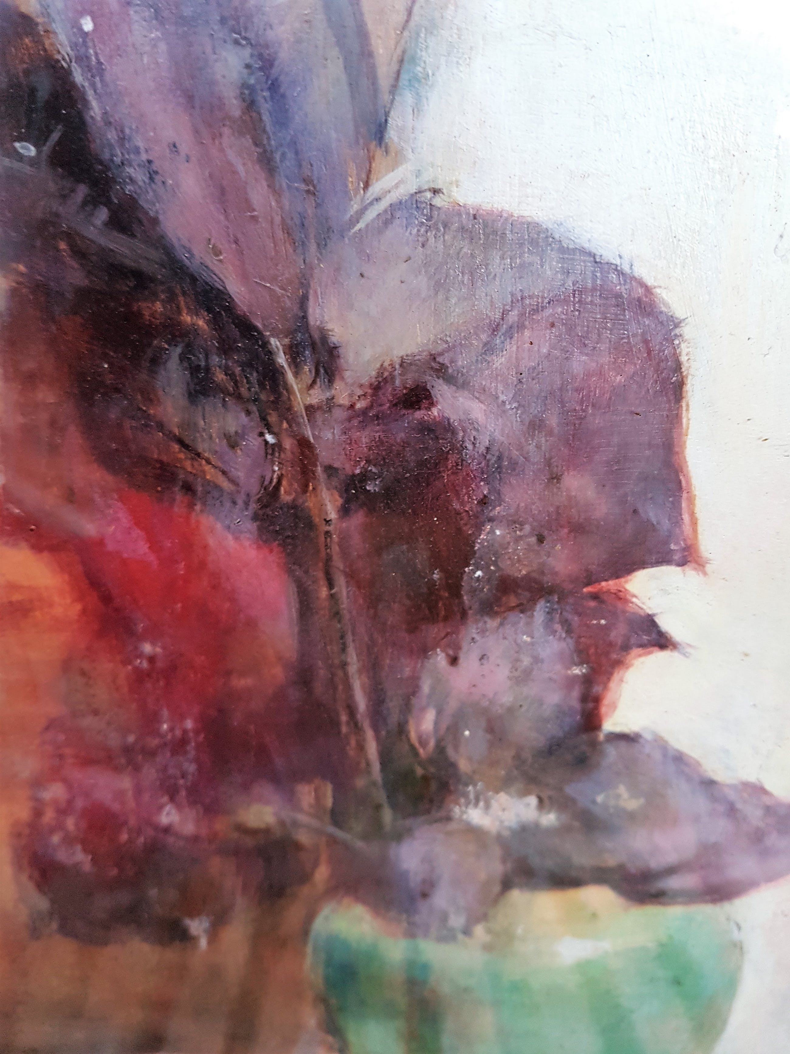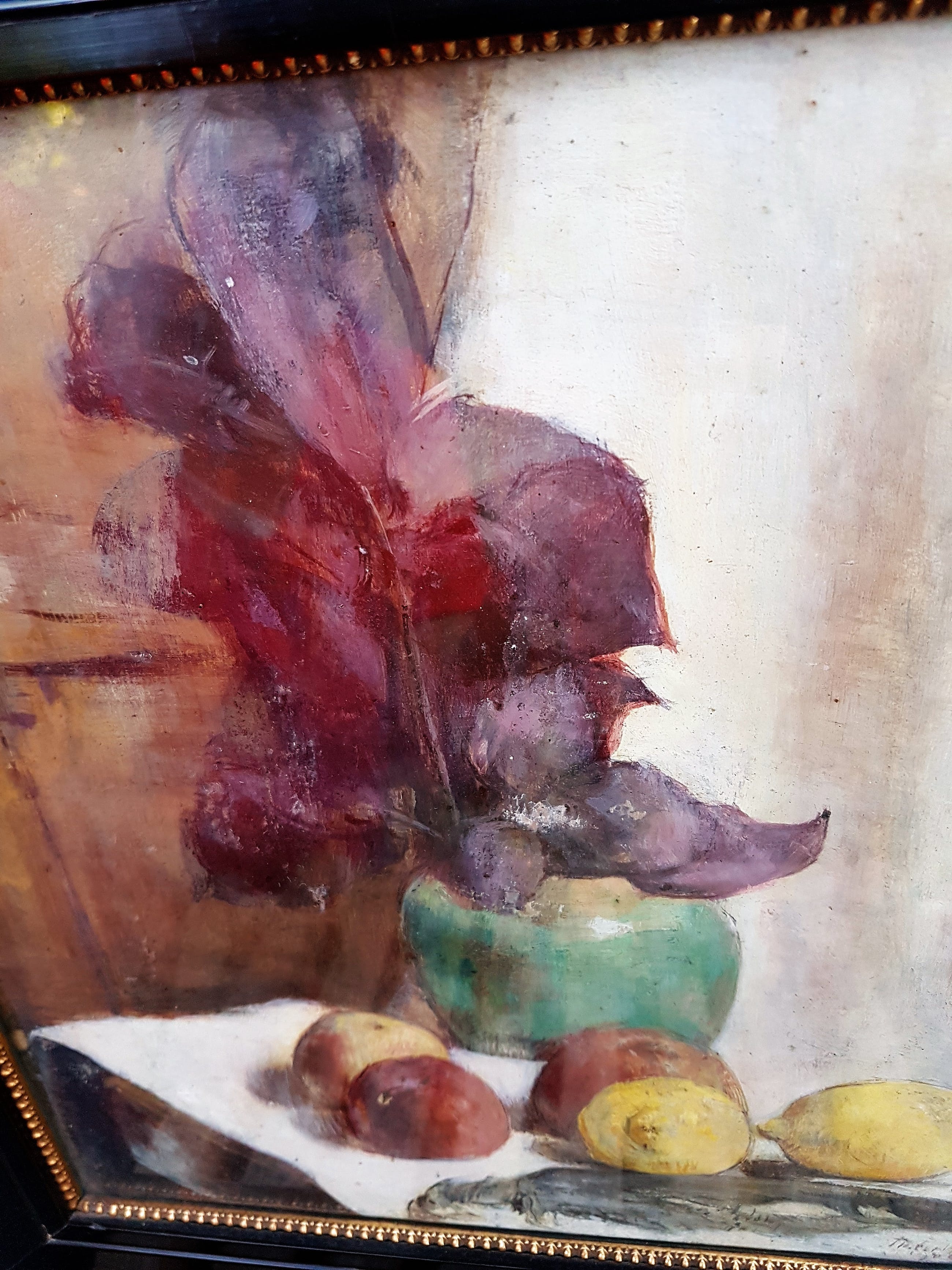 Schilderij heeft oud, spiegelend glas in de lijst zitten