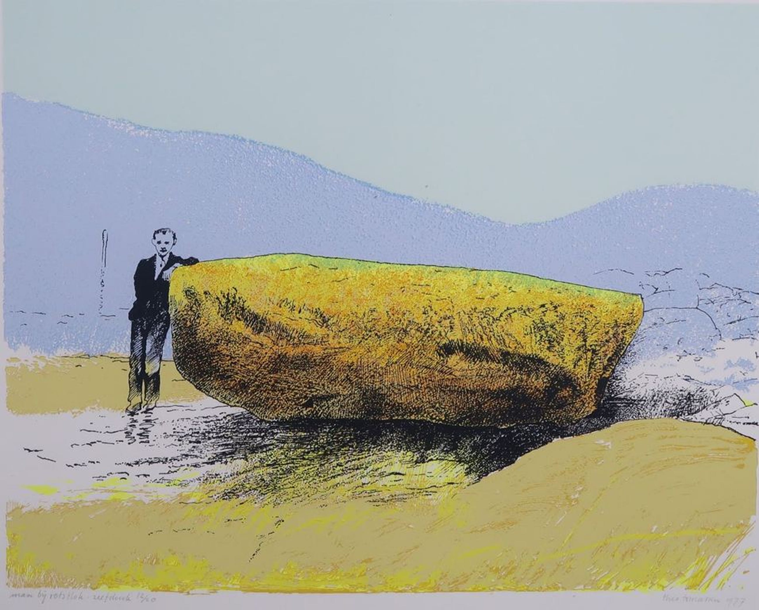 Titel: Man bij rotsblok