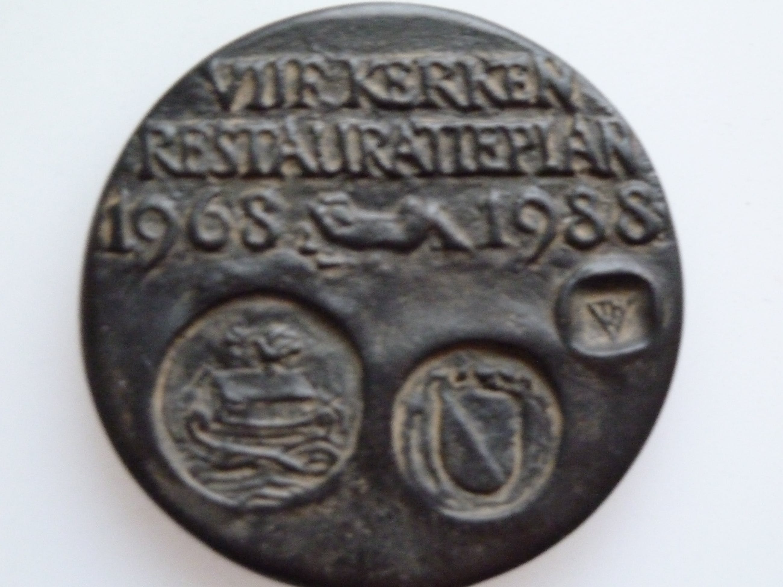 De 5-kerken restauratie-penning 1968-1988 is uitgegeven in 1973 en vervaardigd door de Utrechtse beeldhouwer Theo van de Vathorst