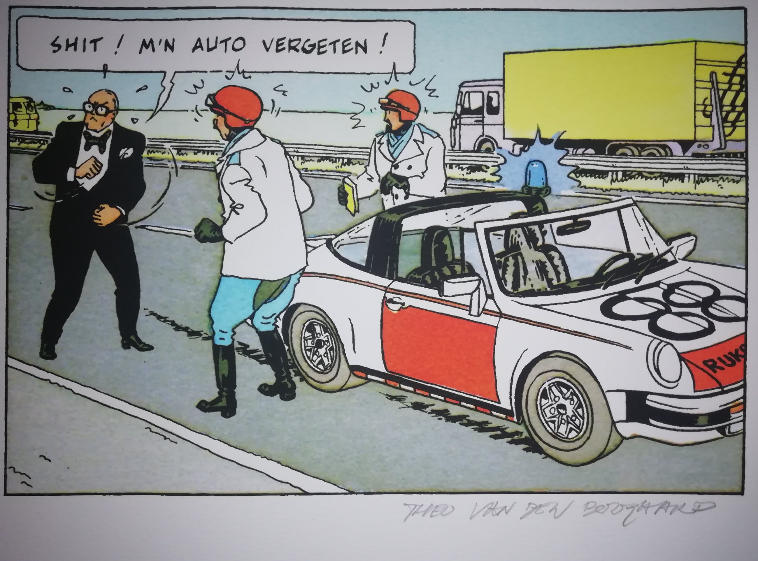 vergroting van de strip 'Op weg met Sjef' van Wim T. Schippers en Theo van den Boogaard uit 1985