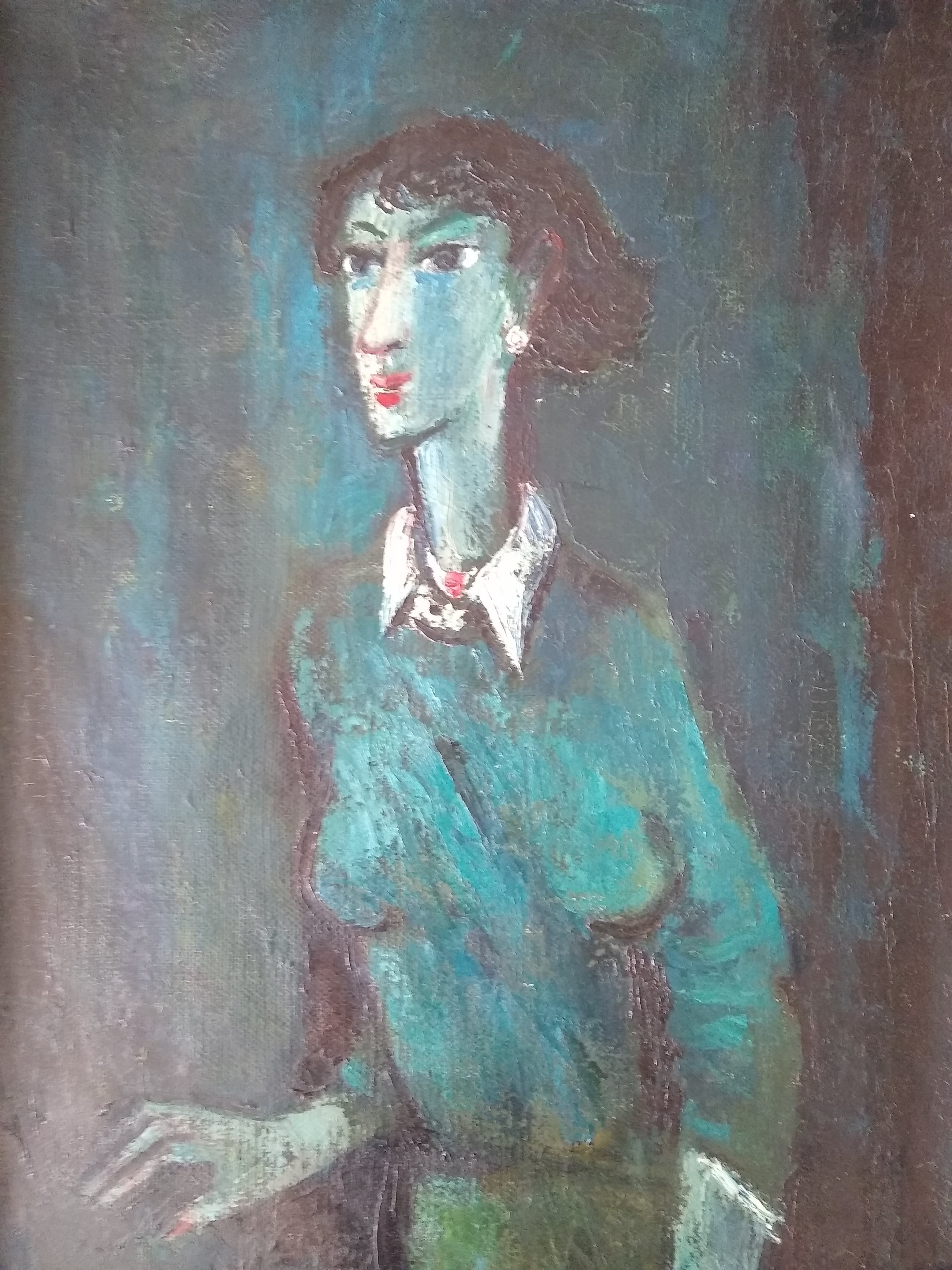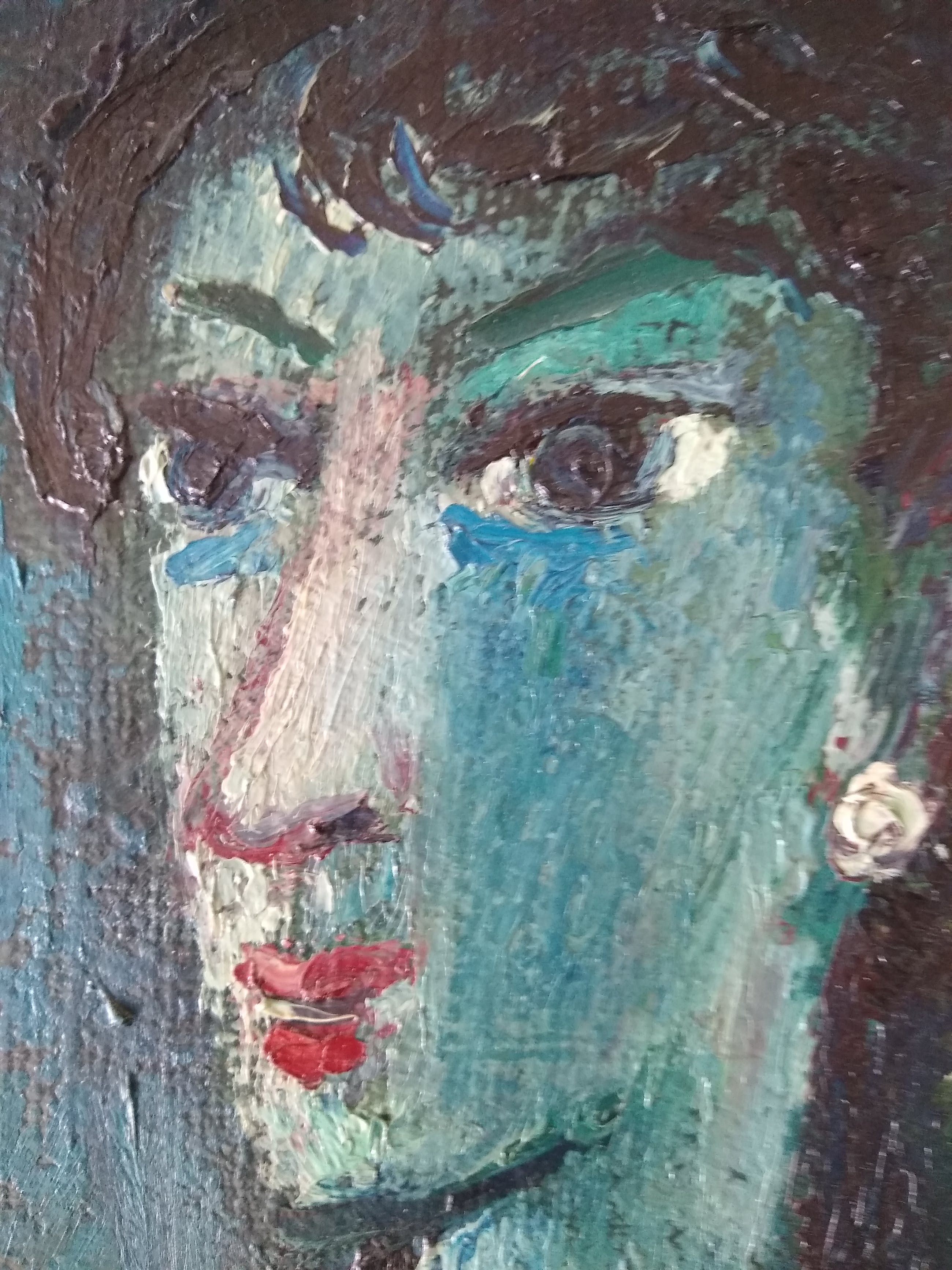 Expressionistisch portret van een vrouw. Olieverf op doek.