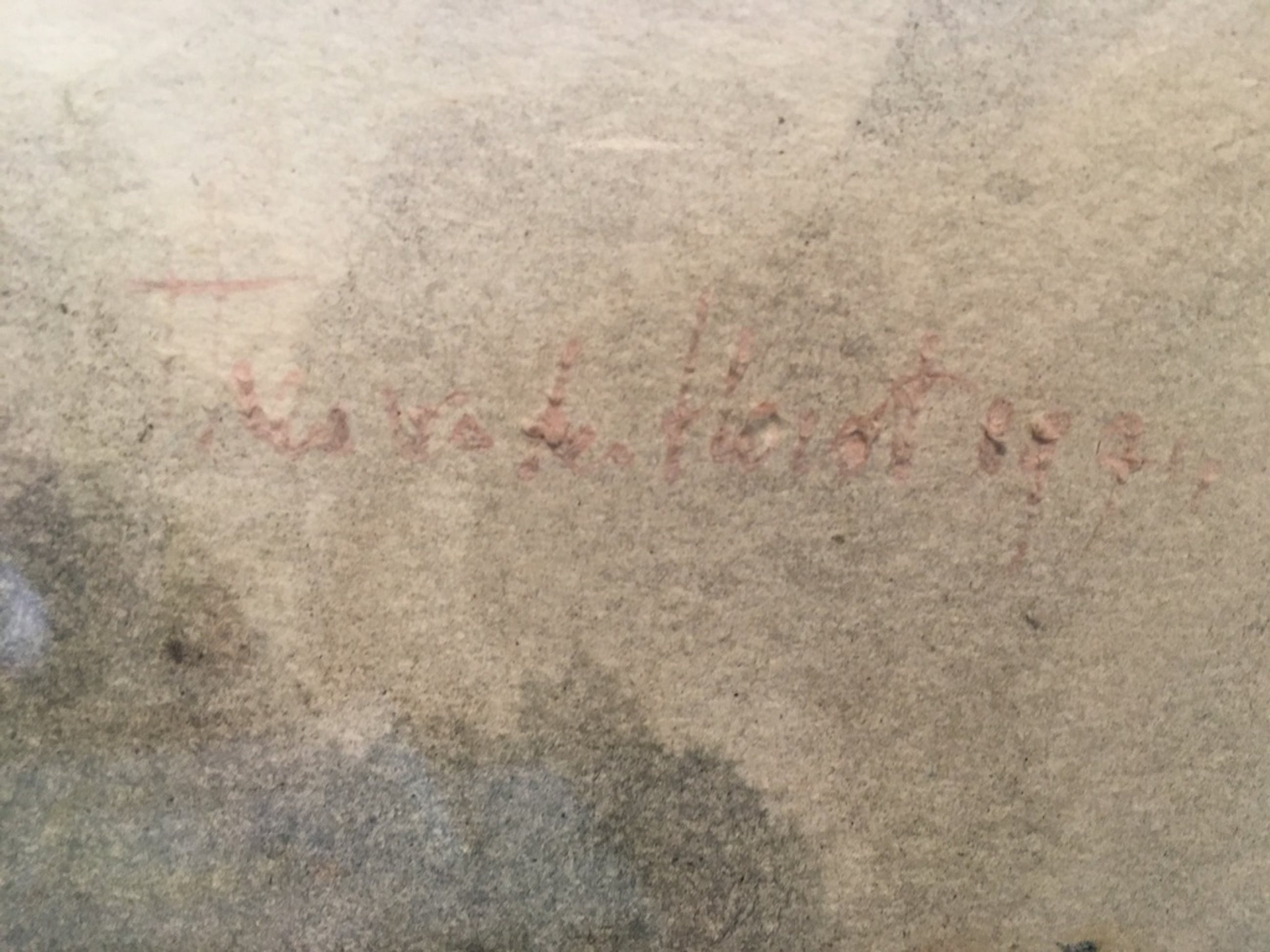 Het werk is zoals aangegeven compleet afgewerkt en gesigneerd (moeilijk leesbaar in de geauquareleerde achtergrond, maar goed herkenbaar).