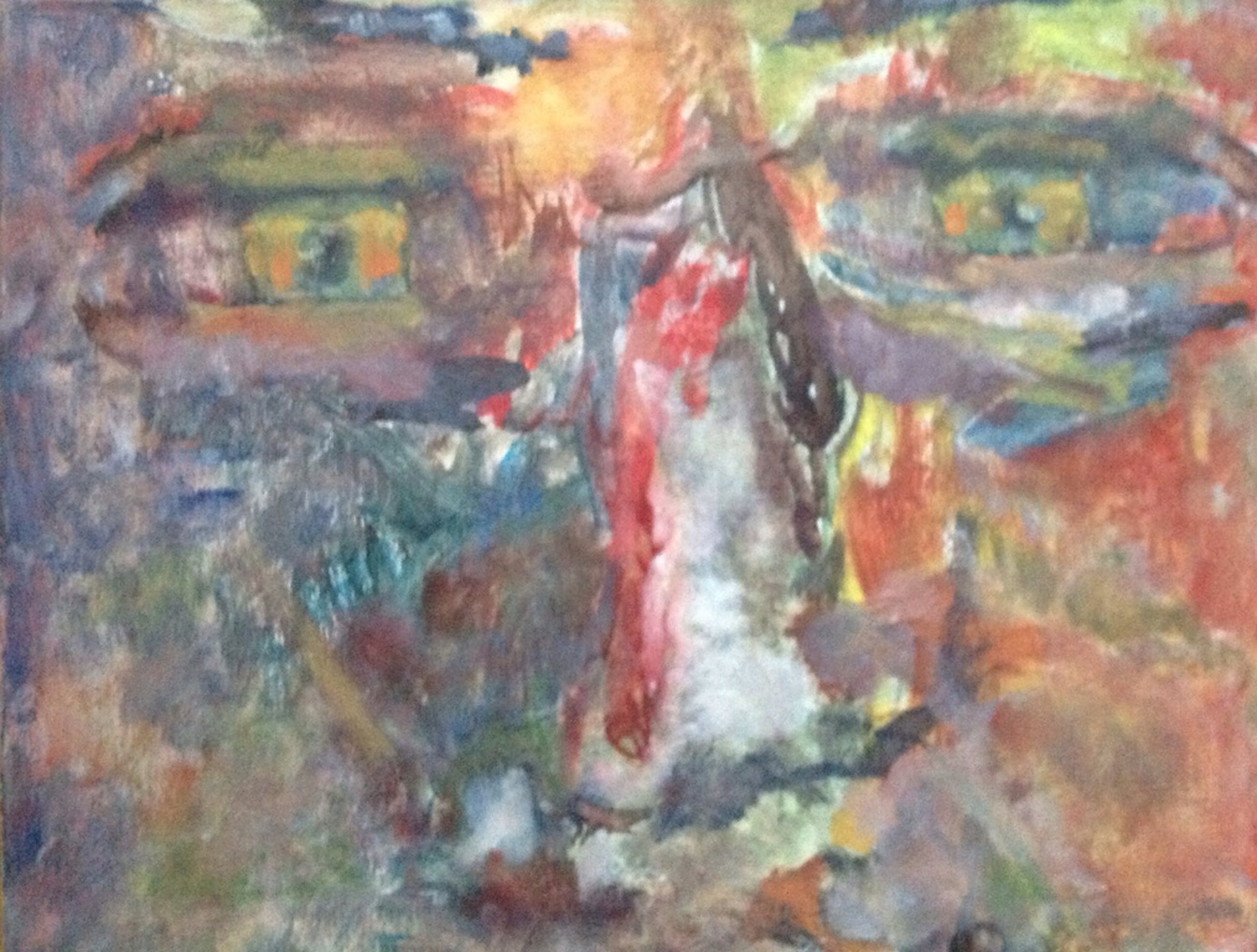 Dit kleurrijk werk is in de tachtiger jaren van de vorige eeuw geschilderd door Theodorus Jacobus Andreas van der Poel, geboren 1951 te Zoeterwoude. In deze tijd schilderde hij in de abstract expressionistische stijl.