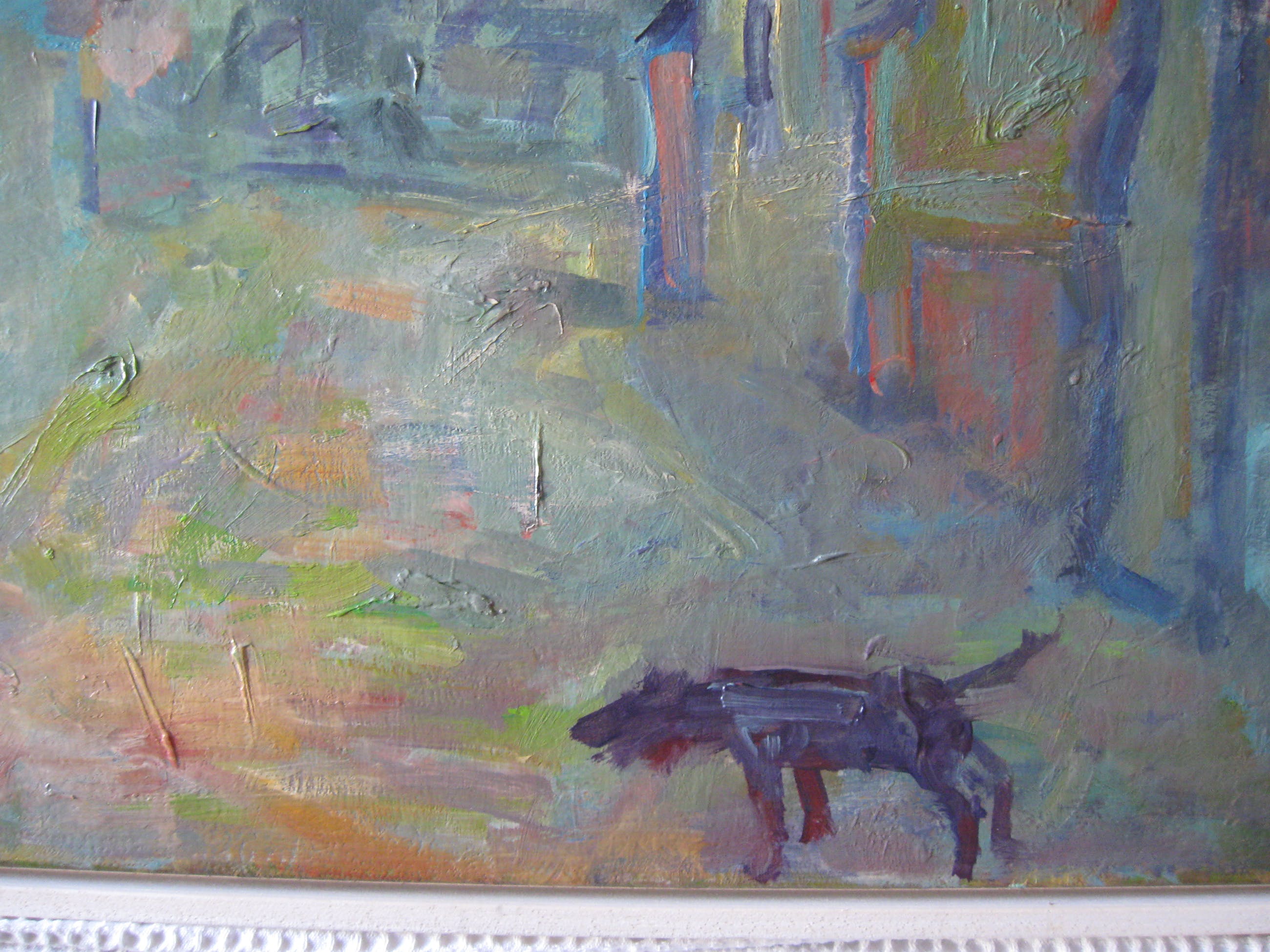 Schilderij zit goed opgespannen op spieraam. Geen beschadigingen.