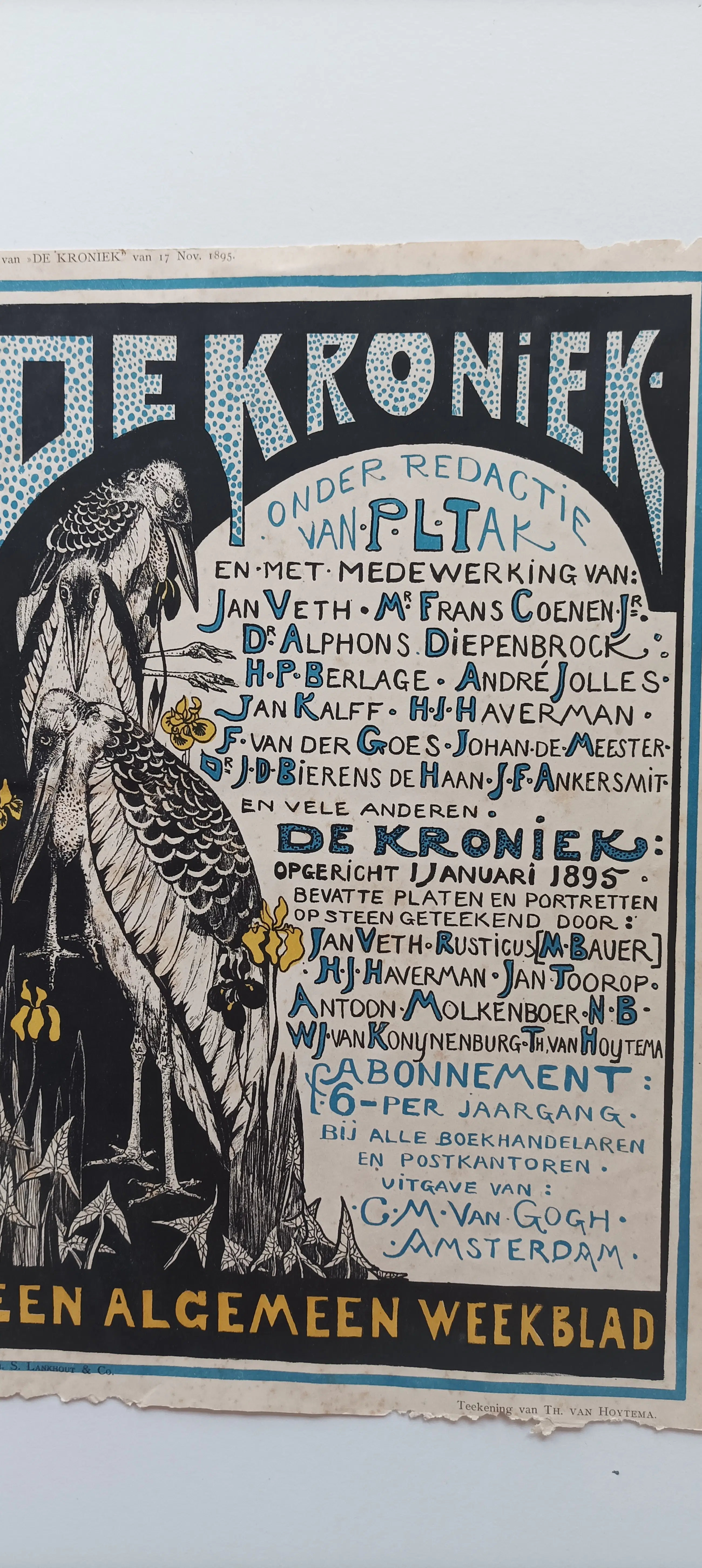 Theo van Hoytema - Raamblad/affiche voor De Kroniek - november 1895 - 35 x 28 cm (blad) - Amsterdam, Van Lankhout, 1895 - gesigneerd in de plaat