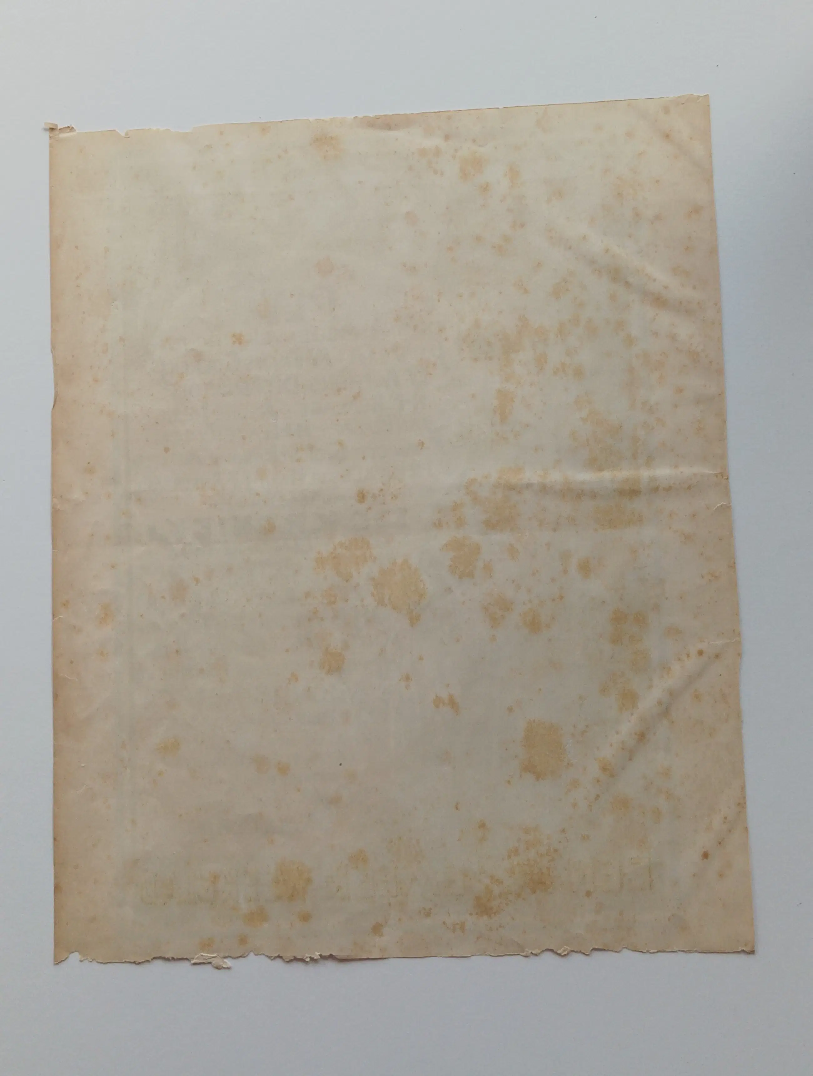 Conditie: redelijk tot goed (marges en verso verbruind, in afbeelding enkele vlekjes, randen gerafeld)