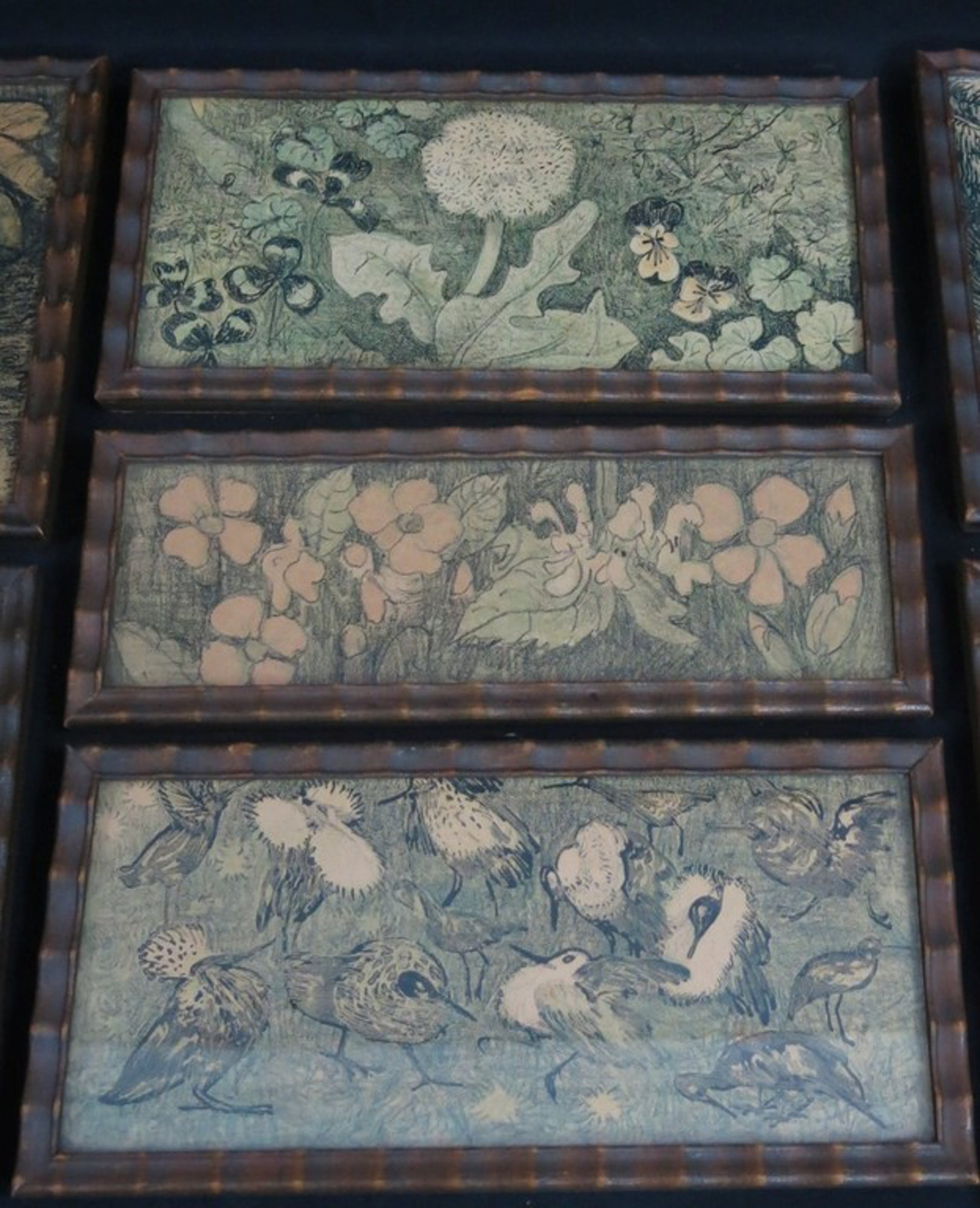 Titel: Kalkoenen; Pijpkruid bloemen; Konijn voor zijn hol; Rustende Eend, en vijf werkjes zonder titel.