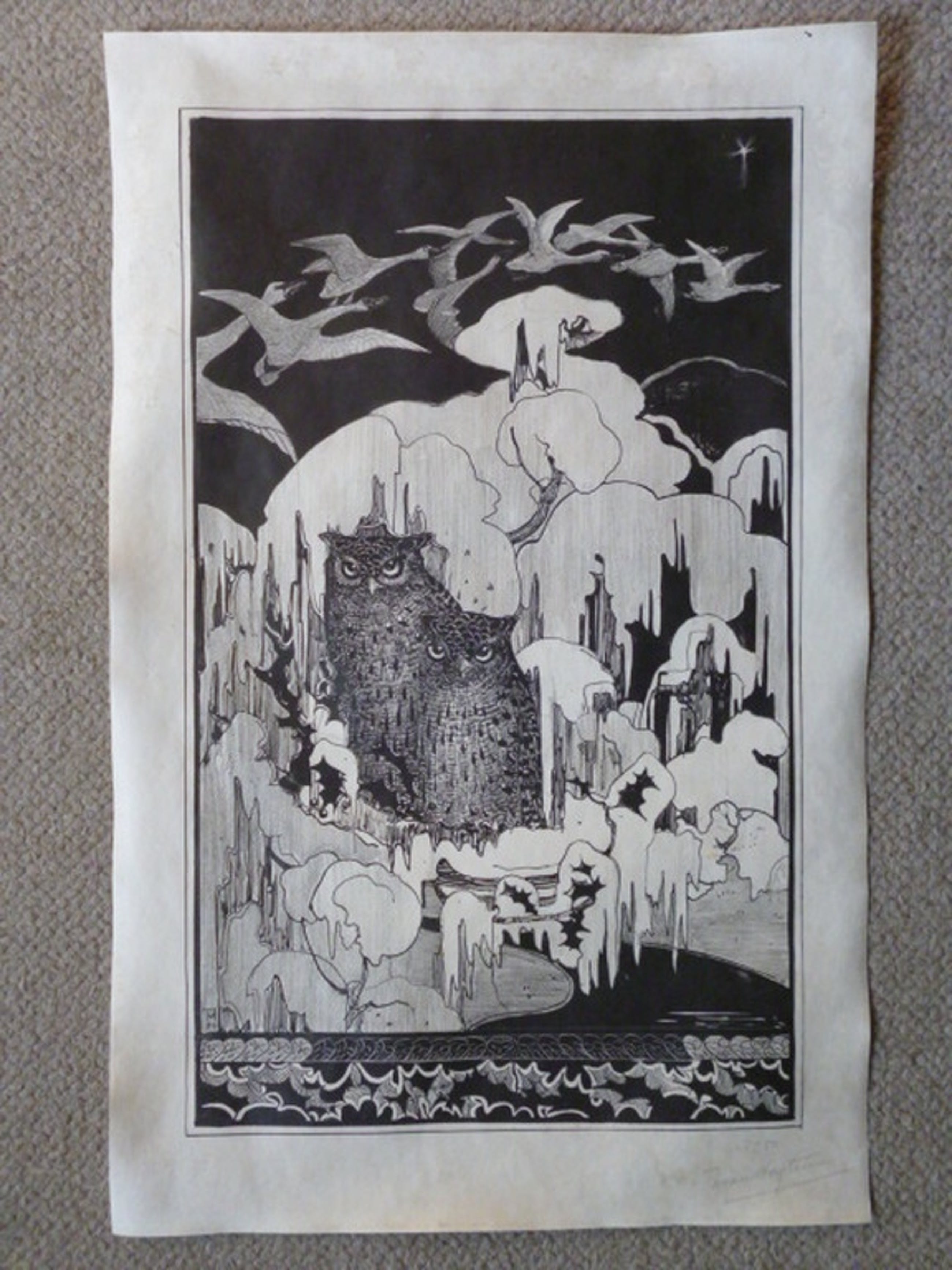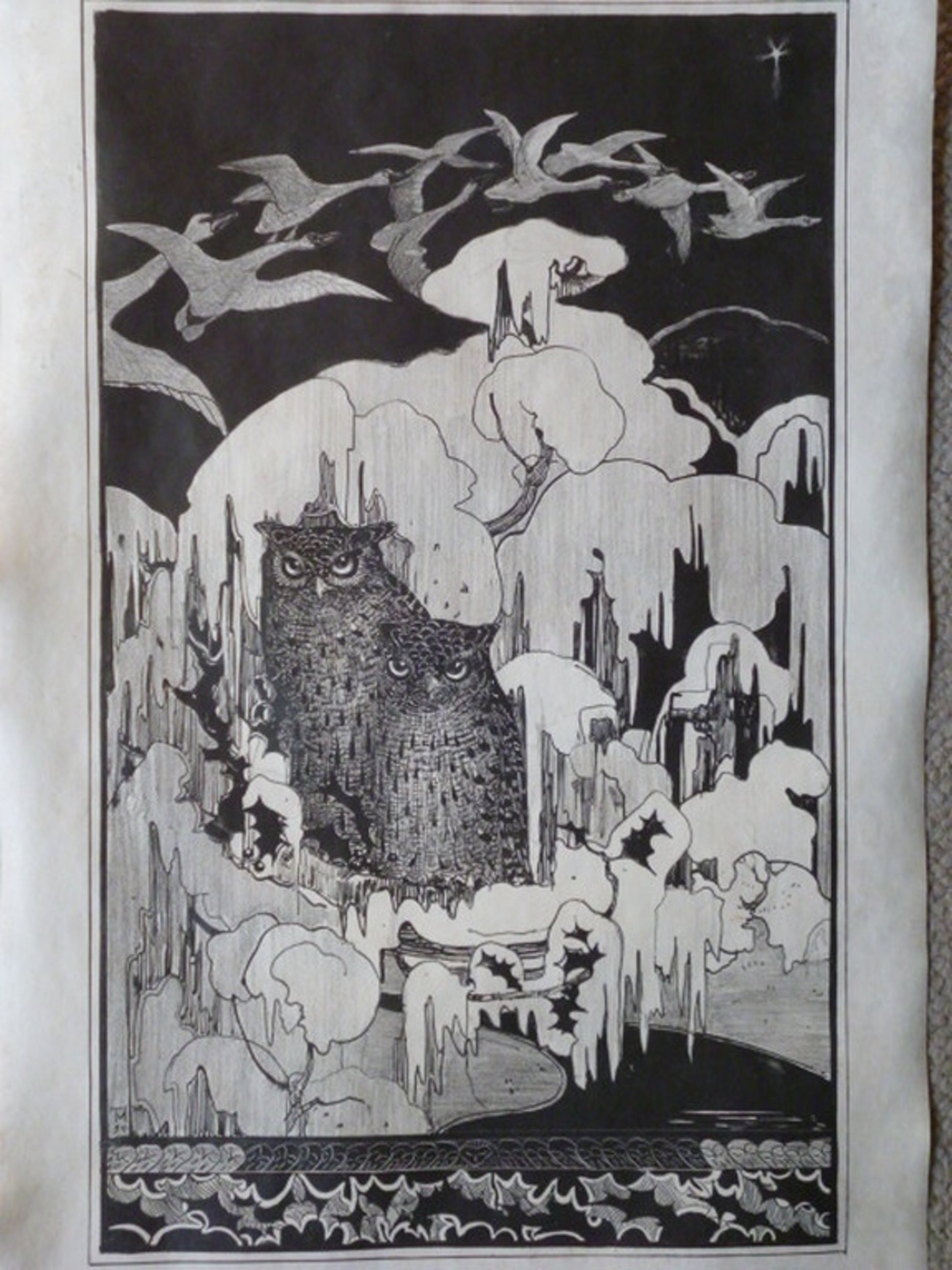 Veel gezochte litho uit 1894 genaamd "Kerstnacht", voorstellende twee ohoes op