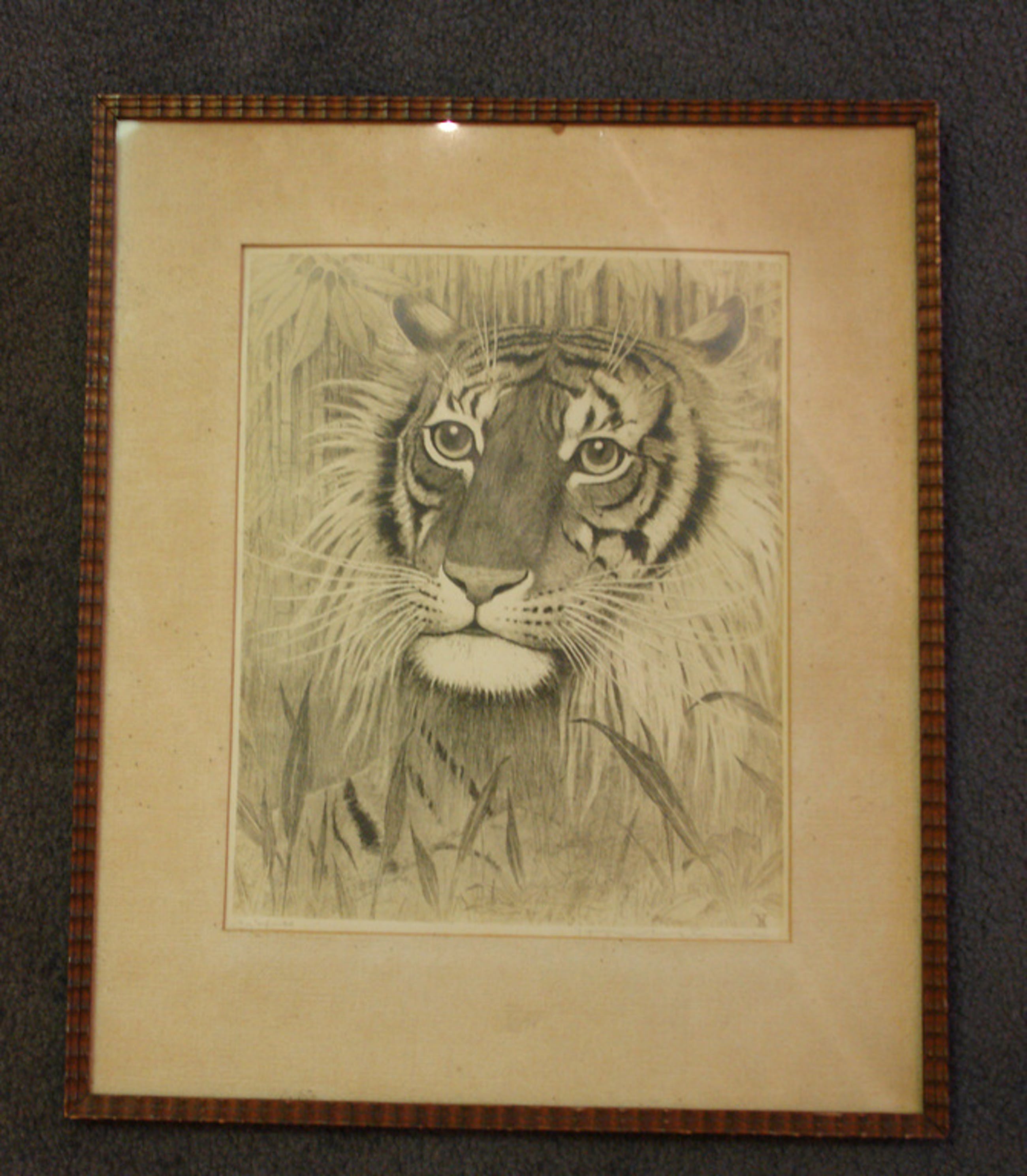Mooie ets van Theo van Hoytema, in authentieke lijst, onaangeroerd, in potloot gesigneerd rechts onder. Links onder staat ook iets geschreven maar voor mij onleesbaar. Ook het monogram van de kunstenaar in de rechter beneden hoek.