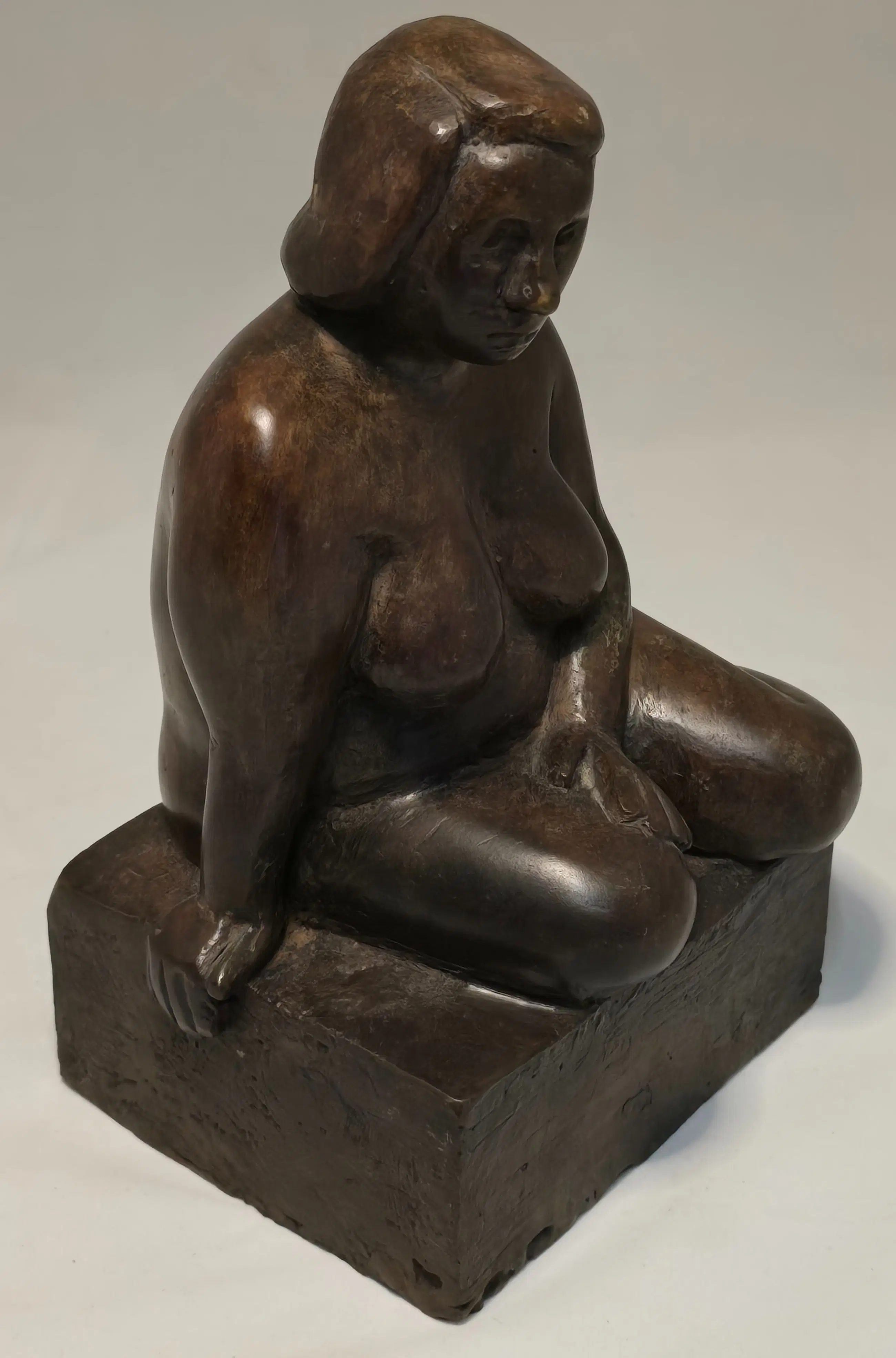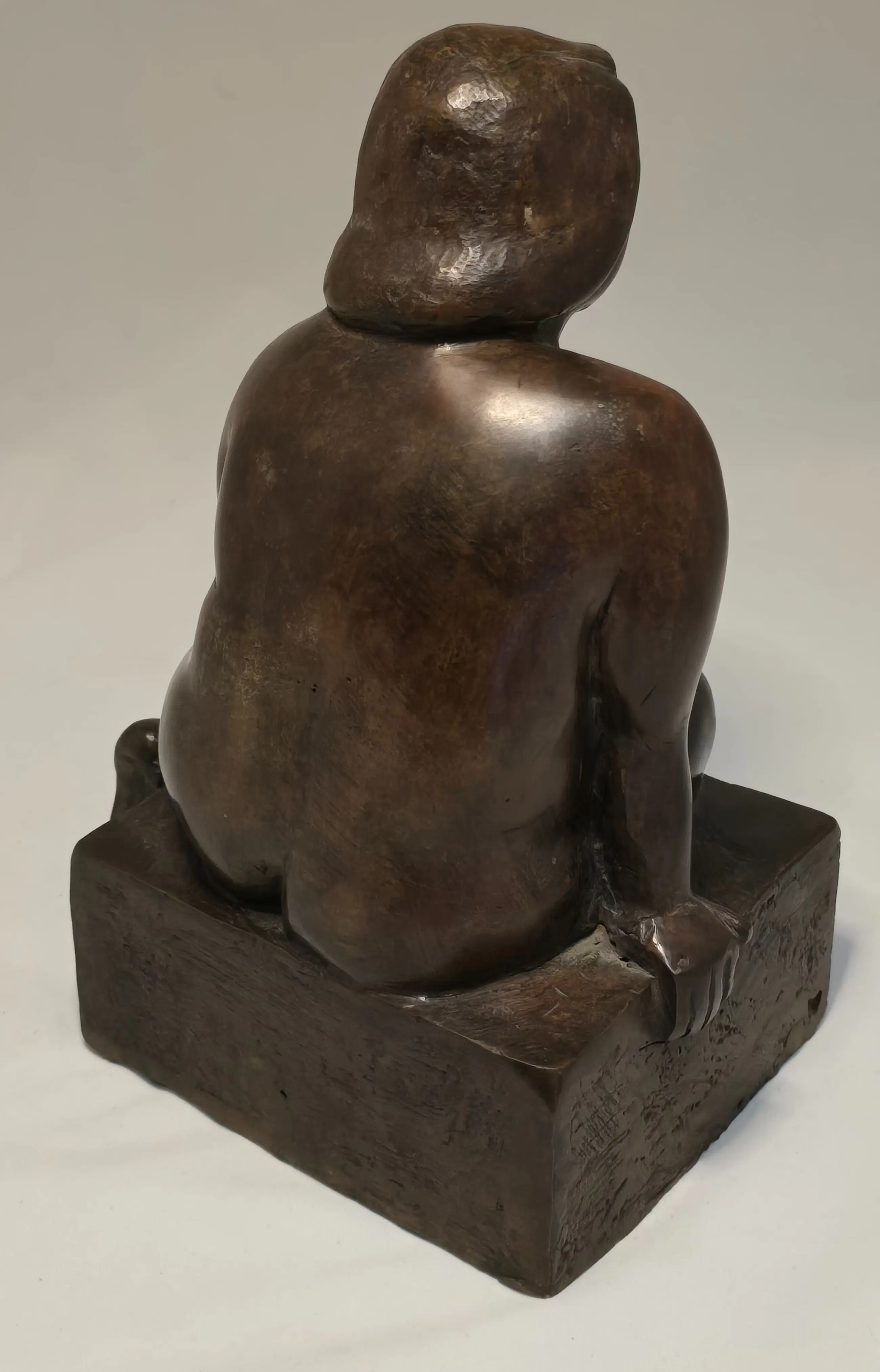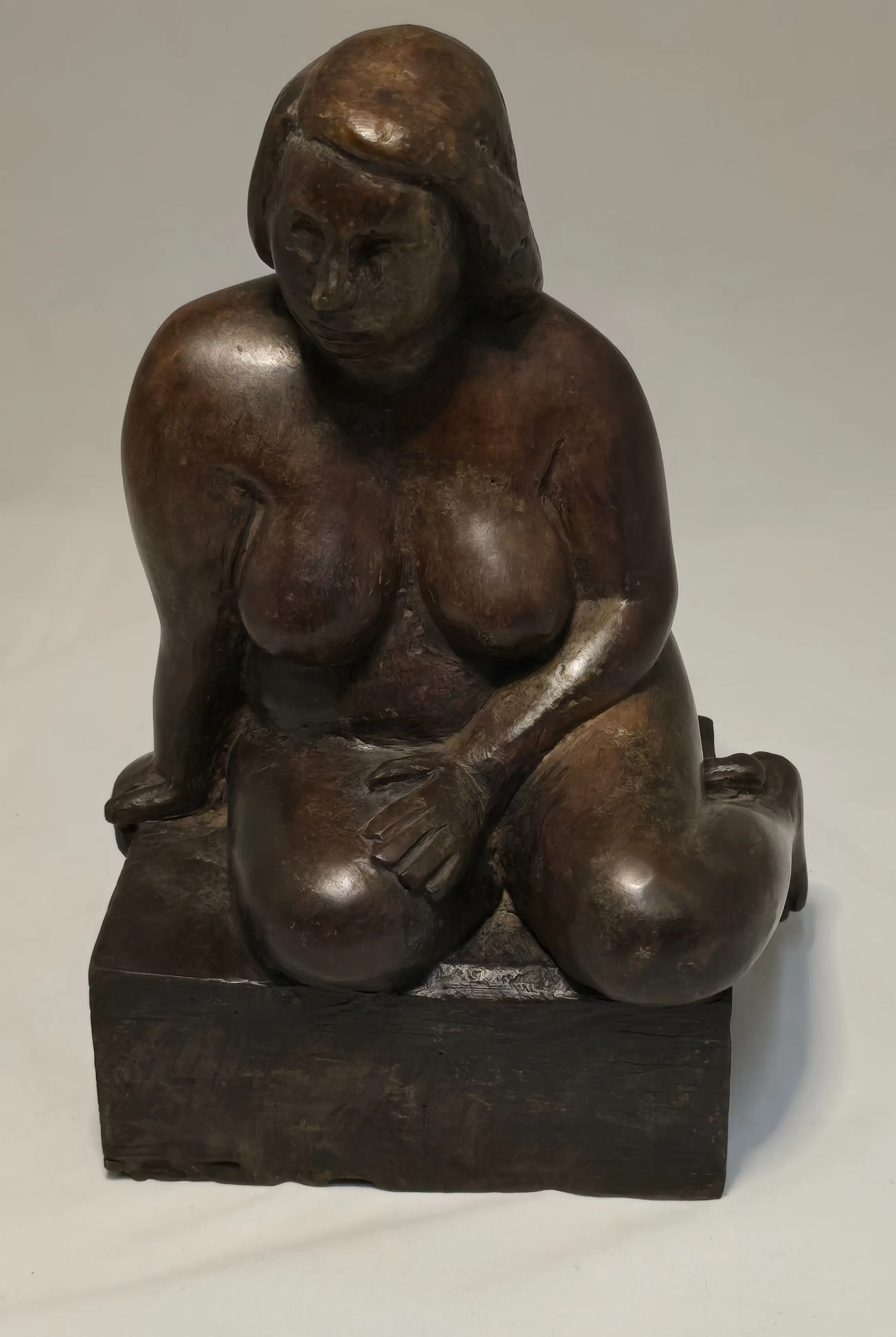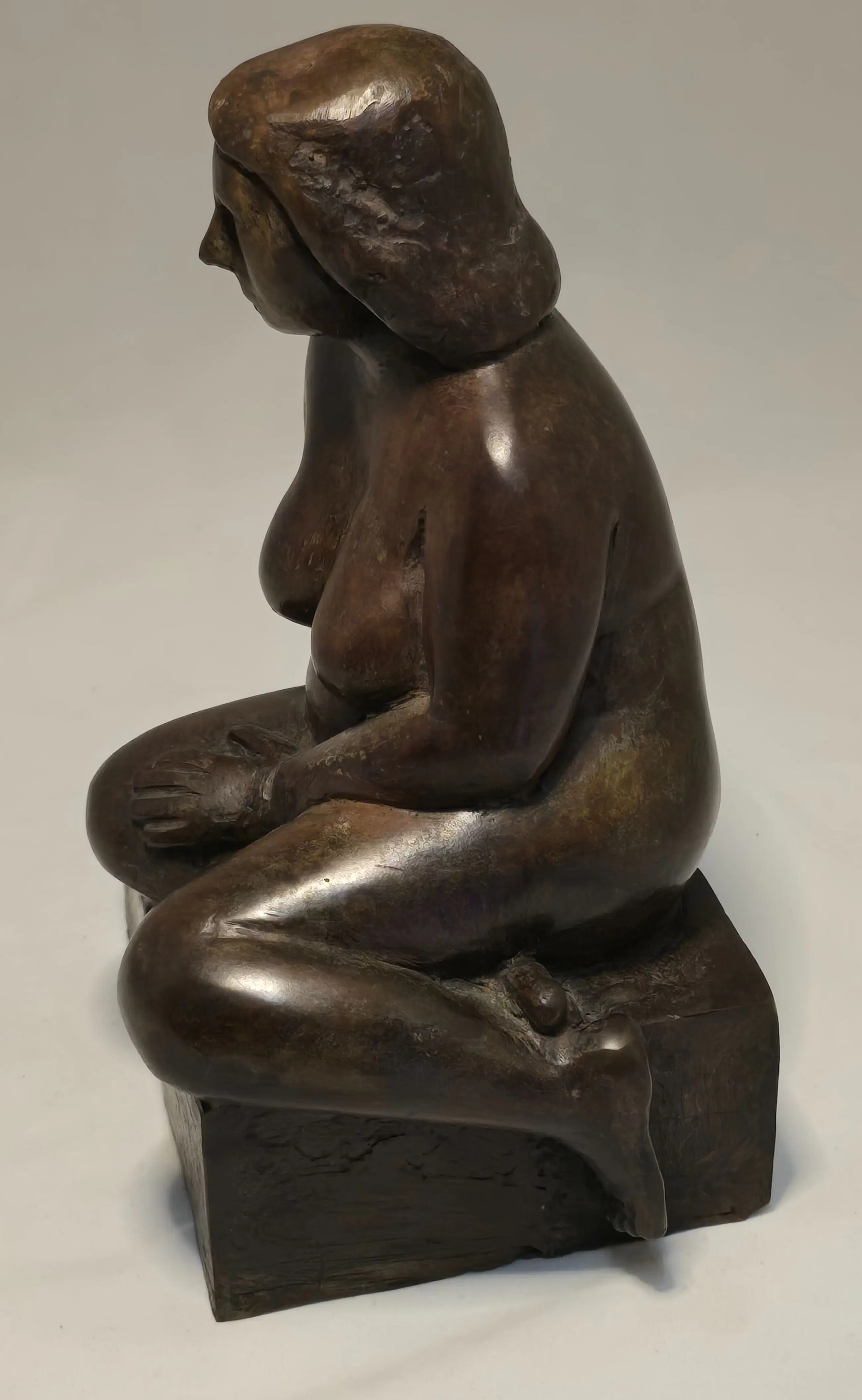 Zittend naak op bronzen sokkel. Tevens wordt de houten studie aan geboden.