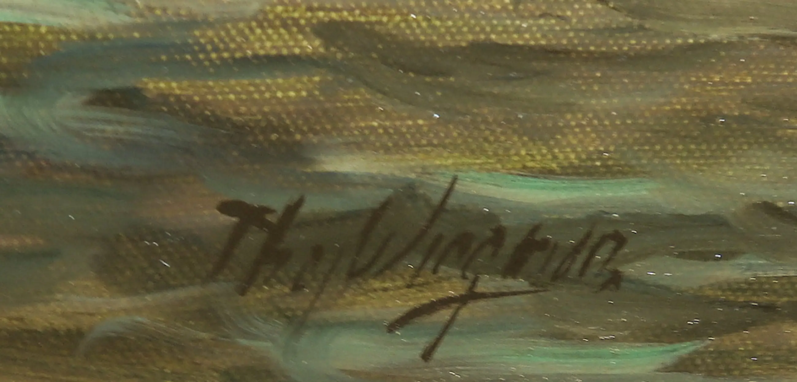 | Het werk is in goede staat, maar oogt wat verkleurd en vuil. Kleine vlekjes in de luchtpartij. (Zie detailfoto's) | |