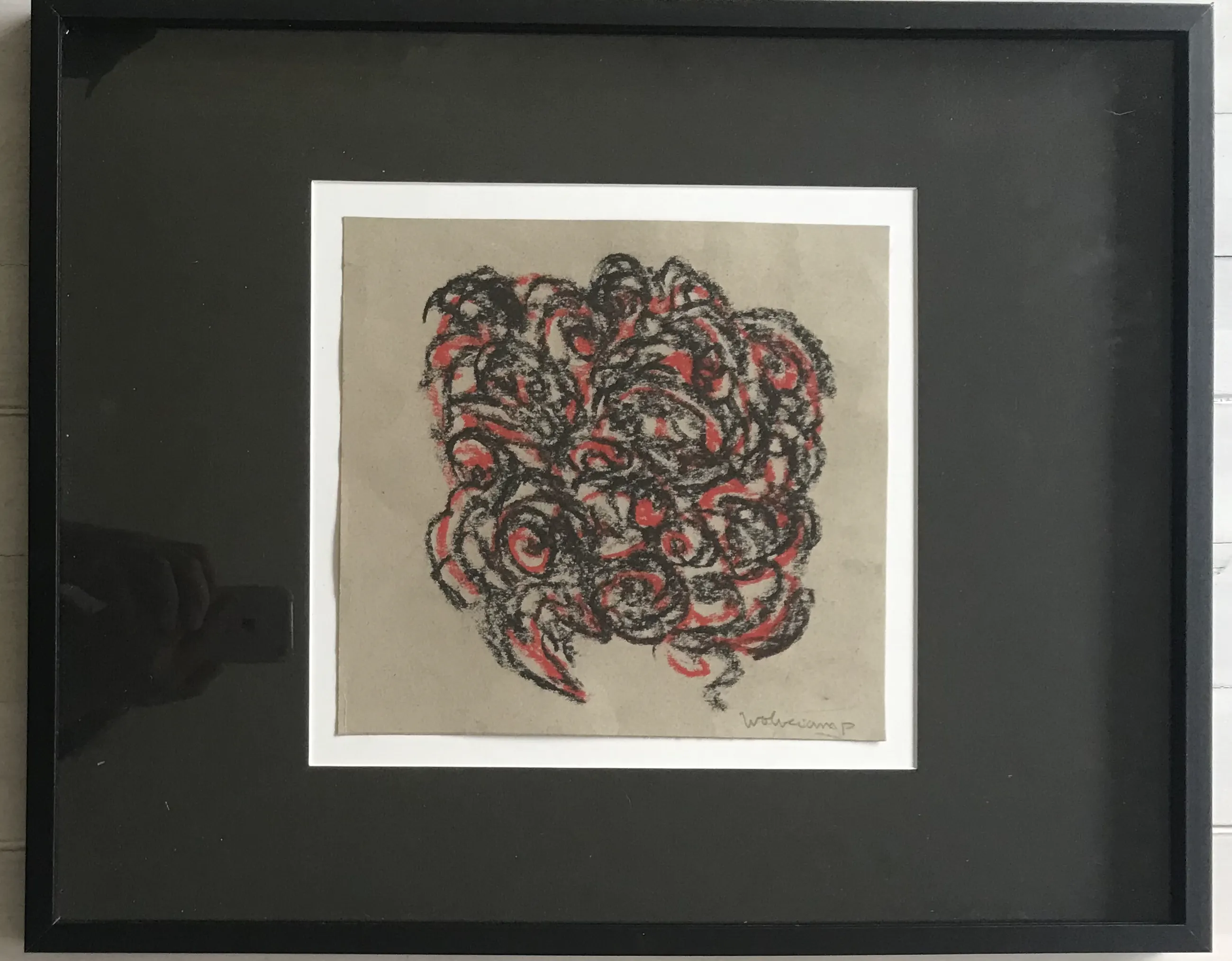 Abstracte compositie op gekleurd papier Pastel op papier Afmeting is bij benadering Gesigneerd rechtsonder