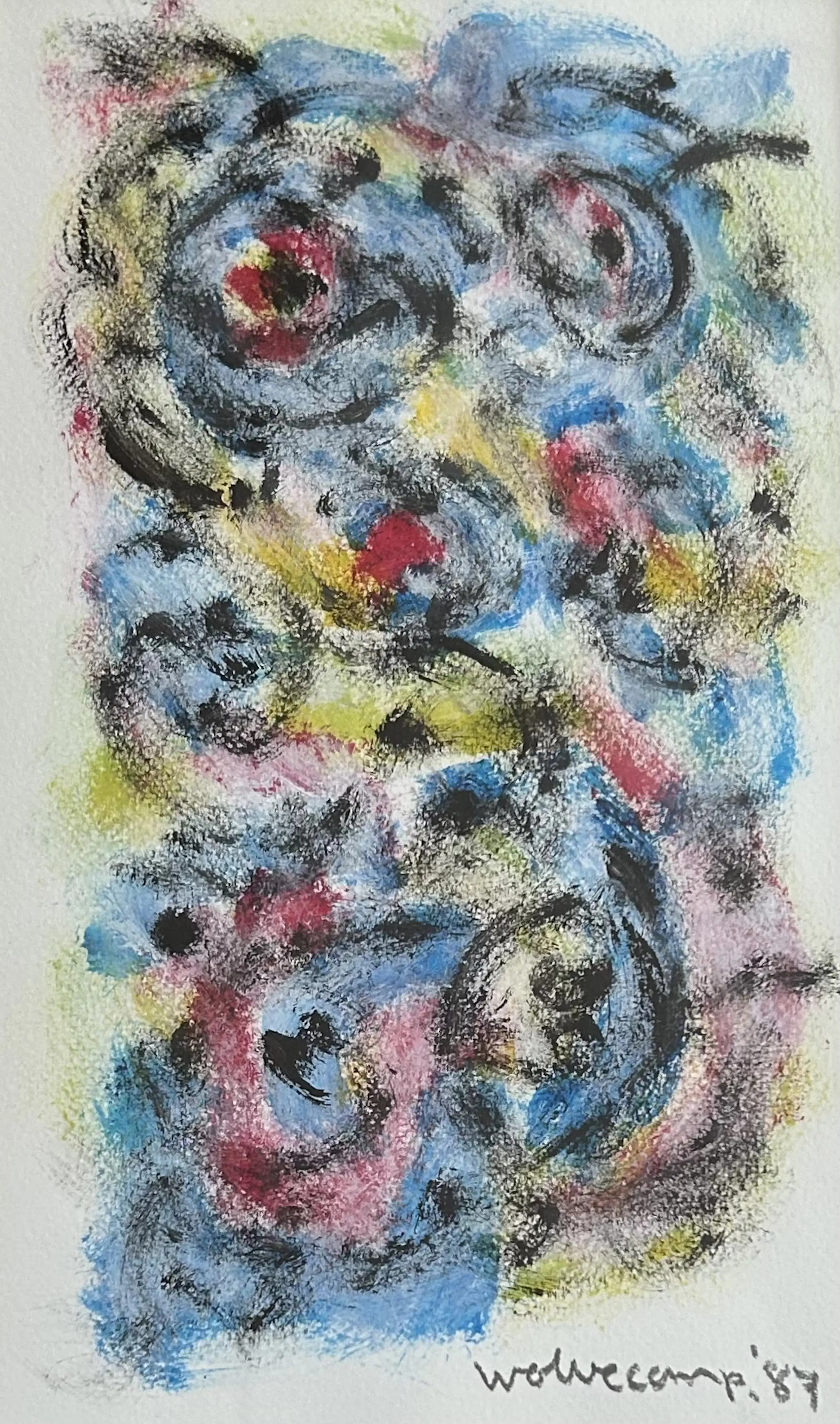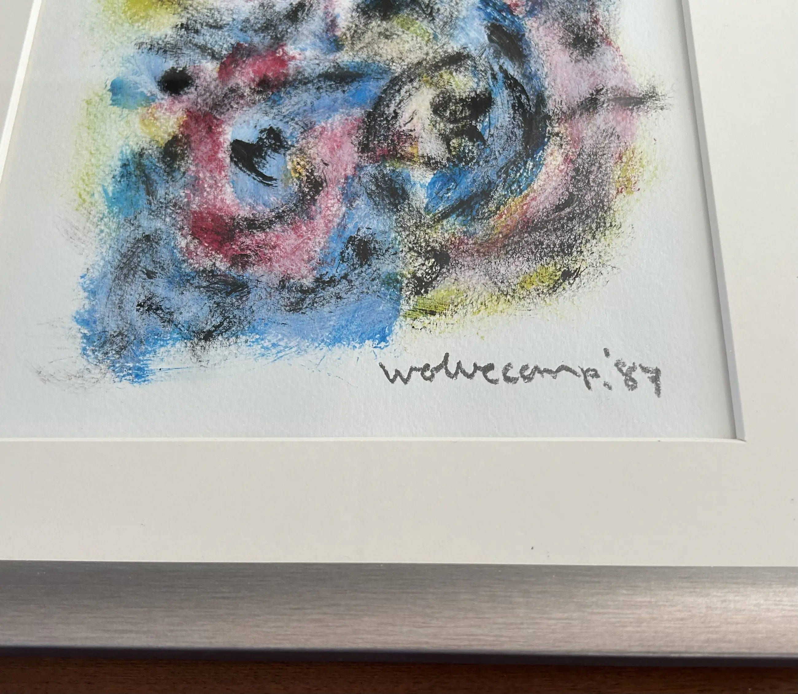 Kleurrijk origineel werk uit 1987 van de Cobra kunstenaar Theo Wolvecamp.