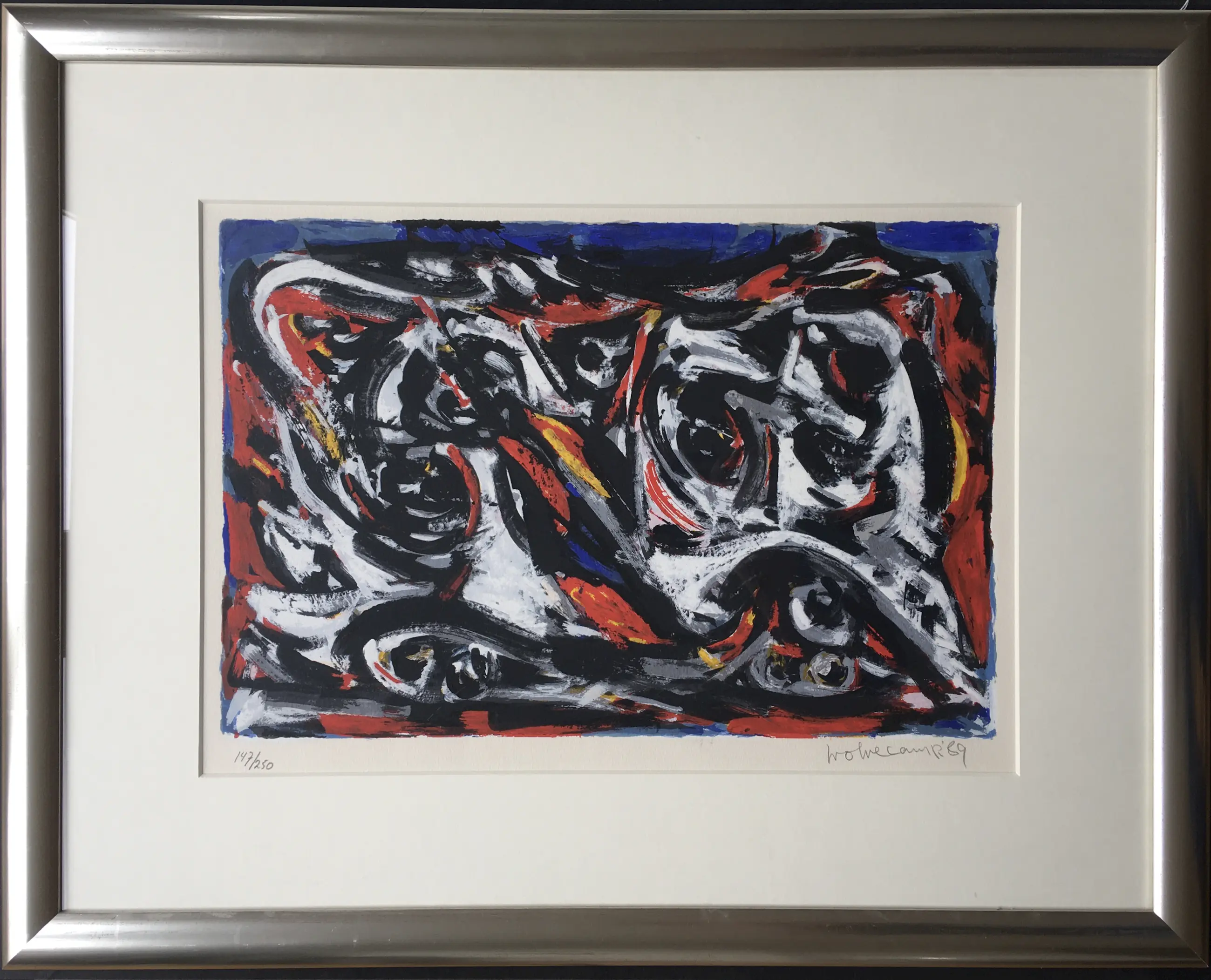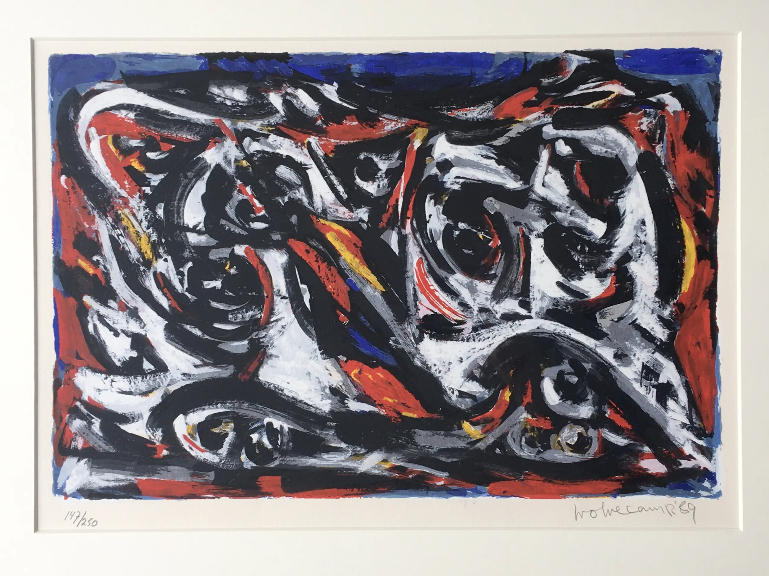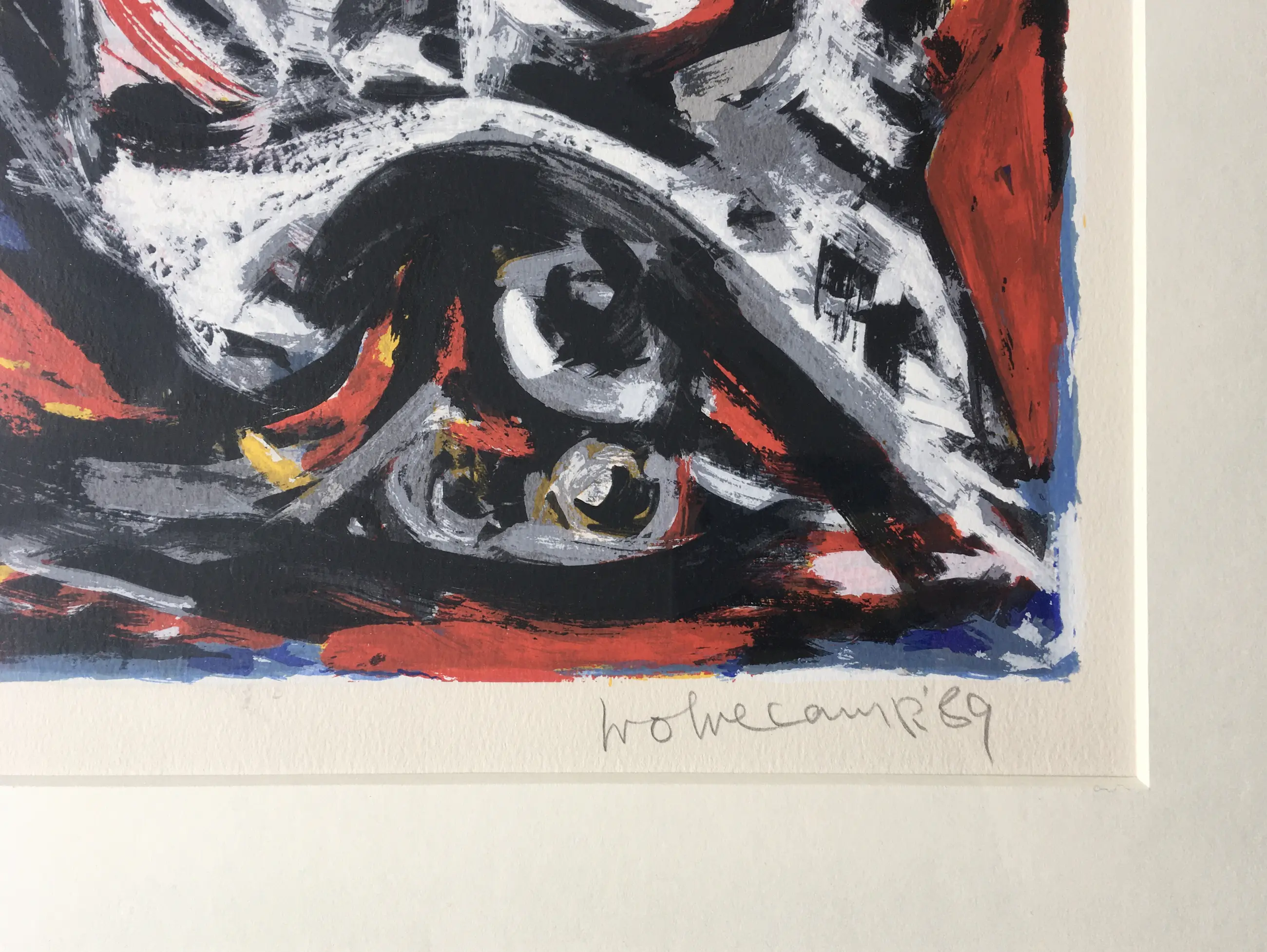 Een fraai expressionistisch werk Theo Wolvecamp. Gesigneerd en genummerd, oplage 250 ex. De lijst is heeft wat, niet storende krasjes maar kan zo aan de muur.