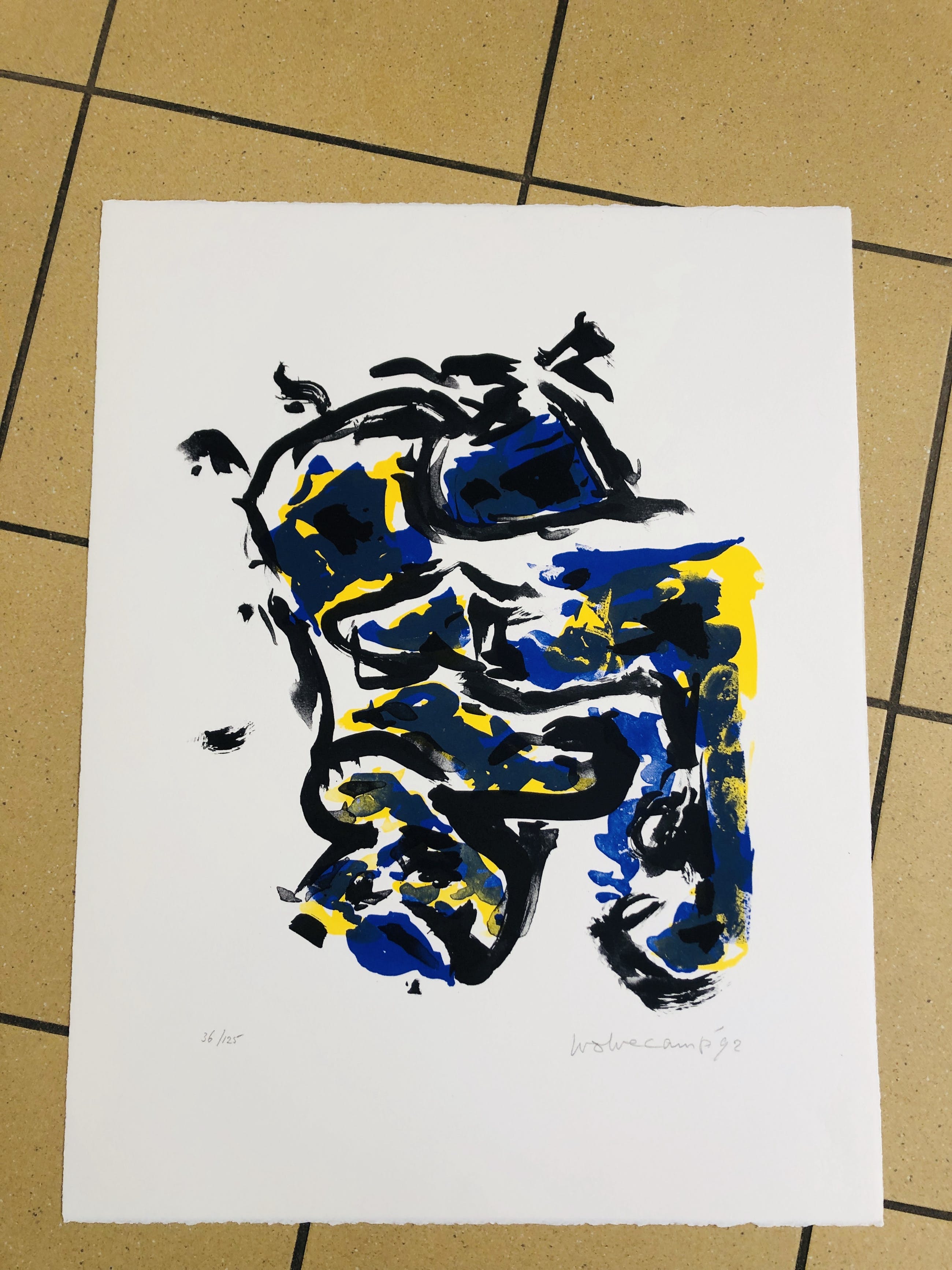 Mooie zeefdruk van CoBrA- kunstenaar Theo Wolvecamp. Het werk is in goede conditie.U kunt het werk vooraf komen bekijken in de Schatkamer van galerie Rotor in Gorcum, na aankoop afhalen of per aangetekende post toegestuurd krijgen.